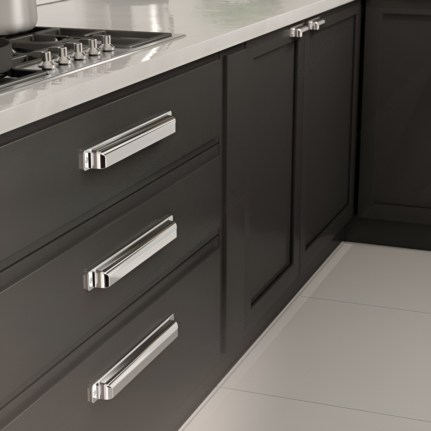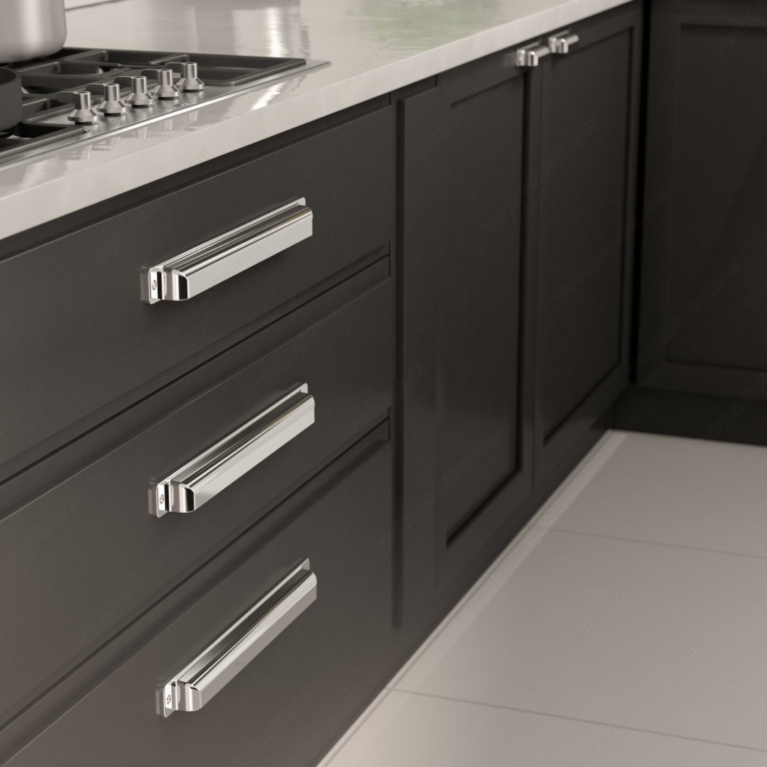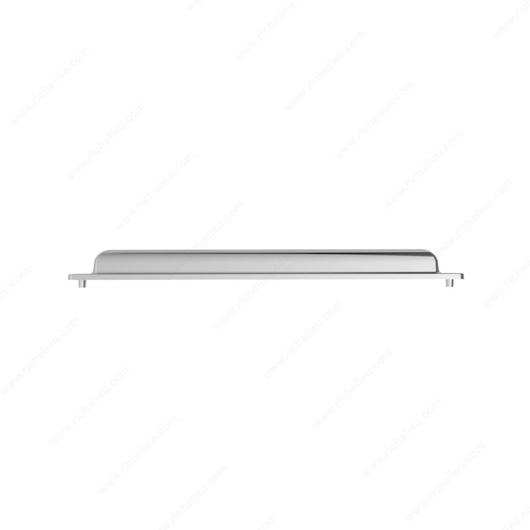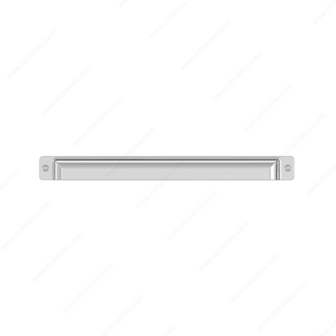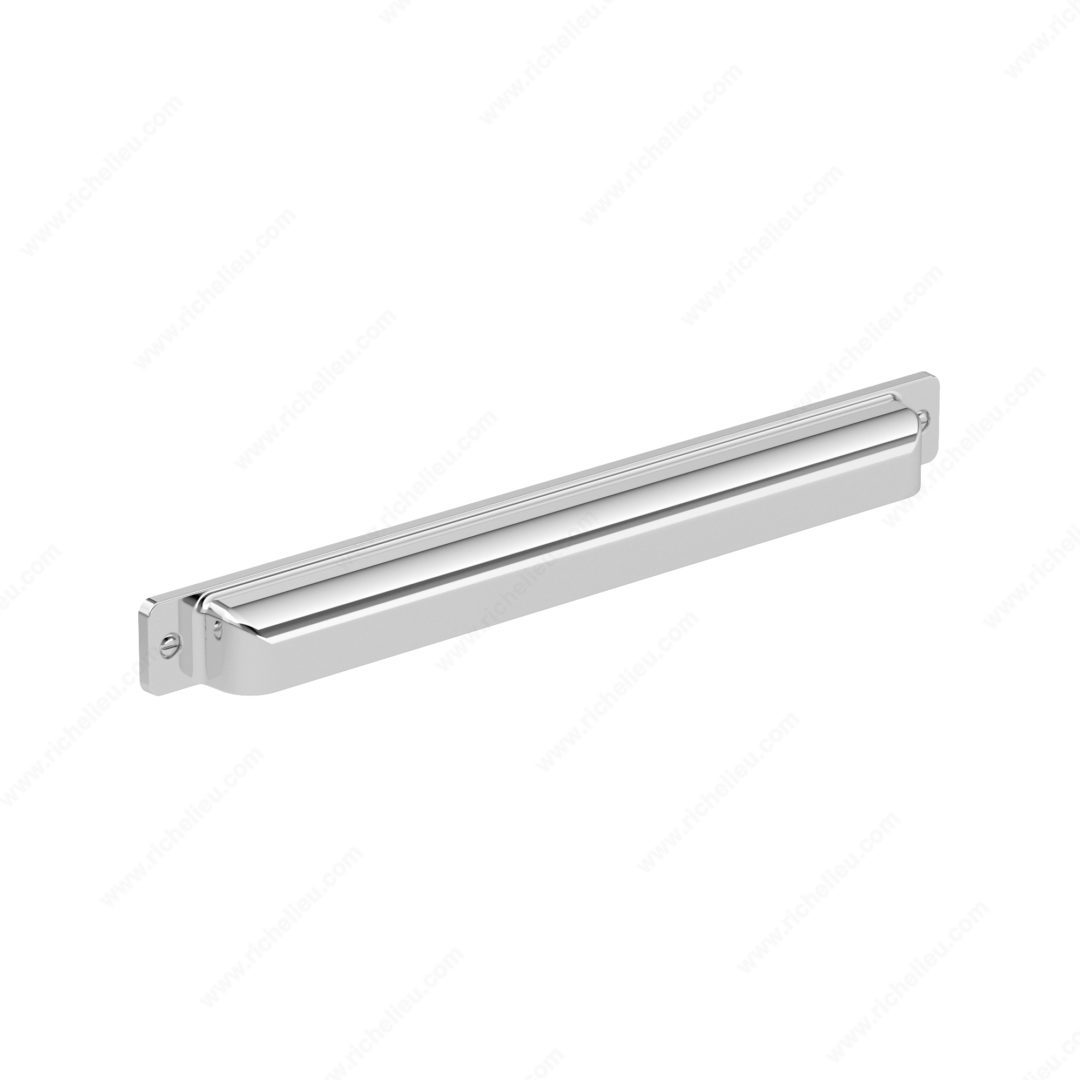 Richelieu BP8716320140 Transitional Metal Pull - 8716 is a stunning addition to any cabinetry, combining functionality with a modern aesthetic. This rectangular cup pull features faux screw embellishments, offering a stylish touch that enhances transitional decor. Available in a variety of lengths and chic finishes, it allows for customization to suit your design needs. With a center-to-center measurement of 12 5/8 inches and an overall length of 13 1/4 inches, this pull is designed for easy installation, requiring milling of just 7 mm into the panel to achieve a flush fit. Crafted from durable zamak, it promises longevity and resilience, making it suitable for high-traffic areas. The sleek chrome finish not only adds a polished look but also complements a wide range of color schemes, particularly the trendy gray and chrome combination. The BP8716320140 features a projection of 1 1/4 inches and a width of 15/16 inches, providing a comfortable grip for effortless use. Included with the pull are 8/32 inch screws for convenient mounting. Elevate your cabinetry with this versatile and stylish cup pull from Richelieu, perfect for any renovation or new construction project.