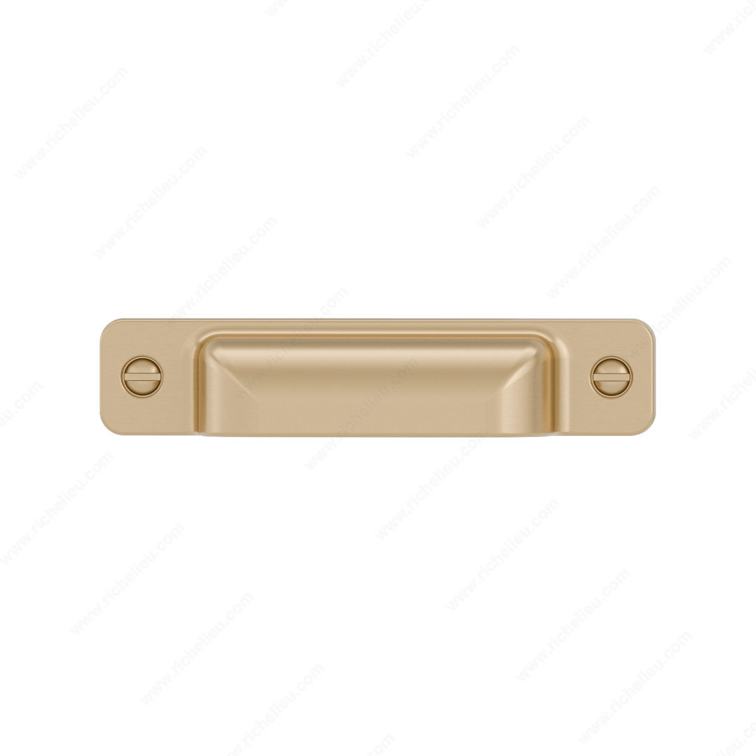 Richelieu BP871696CHBRZ Transitional Metal Pull - 8716 is a striking addition to any cabinetry, combining functionality with a modern aesthetic. This rectangular cup pull features faux screw embellishments, enhancing its visual appeal while providing a secure grip. Designed for ease of installation, it requires milling 7 mm into the panel to ensure a flush fit, offering a seamless look that integrates beautifully with various surfaces. With an overall length of 4 1/2 inches, this pull provides a comfortable reach, making it ideal for kitchen cabinets or furniture drawers. The cup pull boasts a center-to-center measurement of 3 25/32 inches, making it versatile for a range of applications. Crafted from durable zamak, it ensures longevity while the champagne bronze finish adds a touch of elegance and sophistication to your space. The pull also has dimensions of 15/16 inch in width and projection, allowing for a streamlined design that doesn’t overwhelm. With an included 8/32 inch screw, installation is straightforward, making this pull a practical choice for both professionals and DIY enthusiasts. Elevate your cabinetry with the Richelieu BP871696CHBRZ, where style meets functionality.
