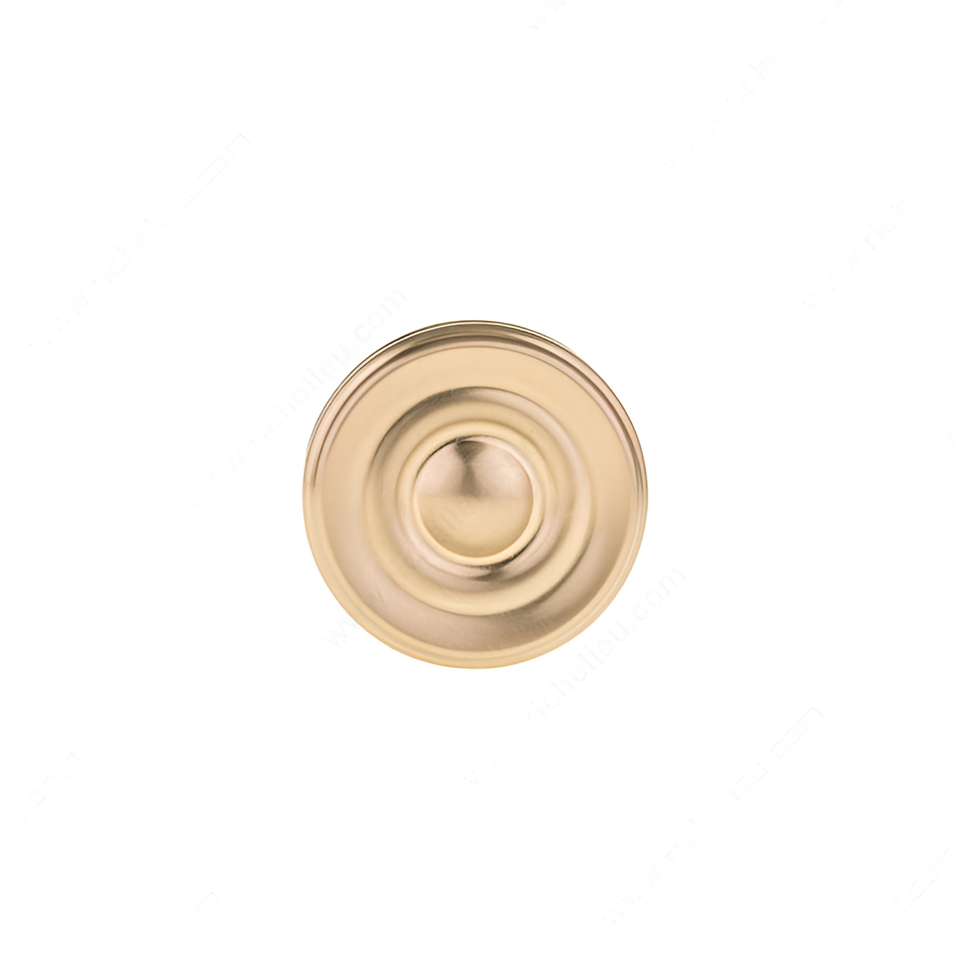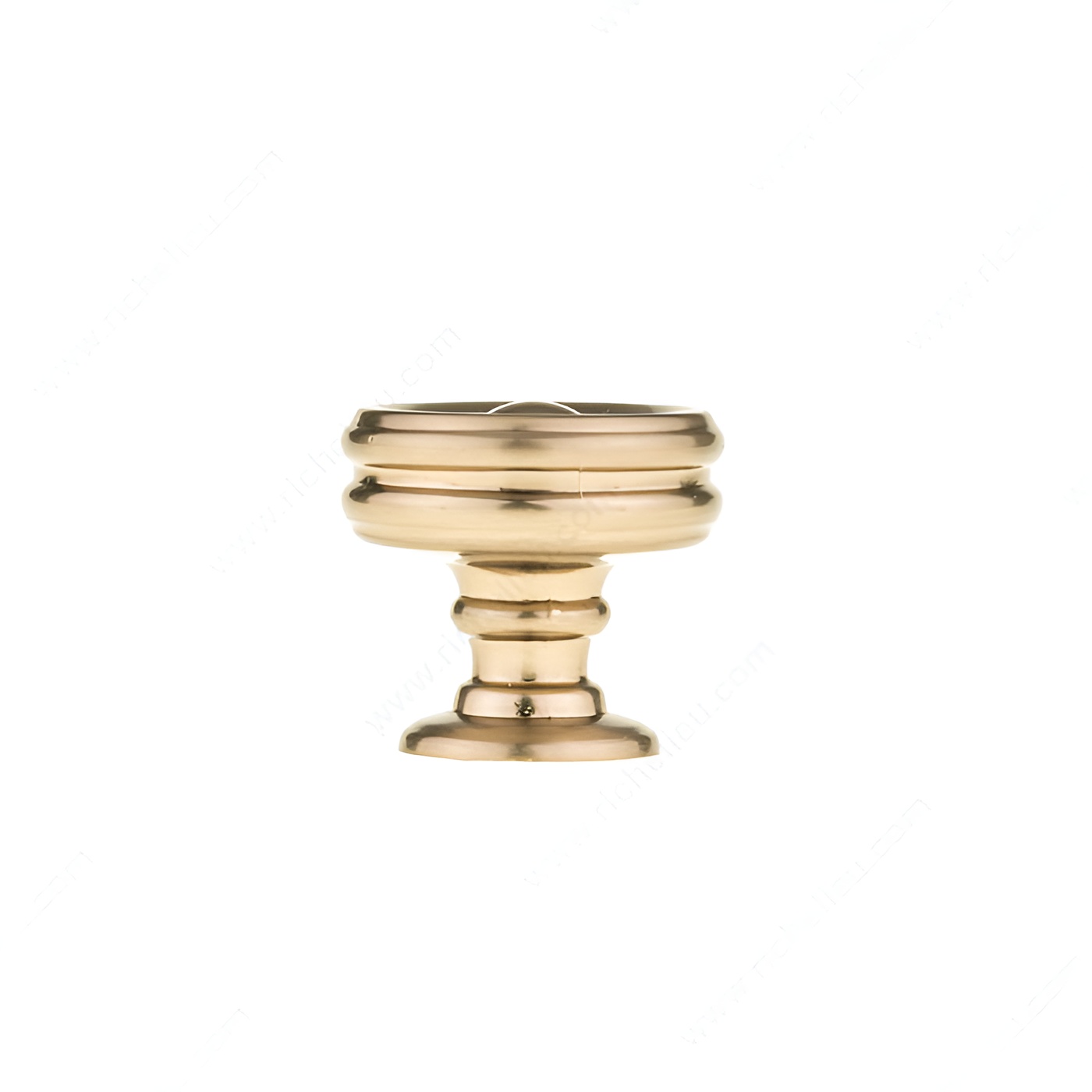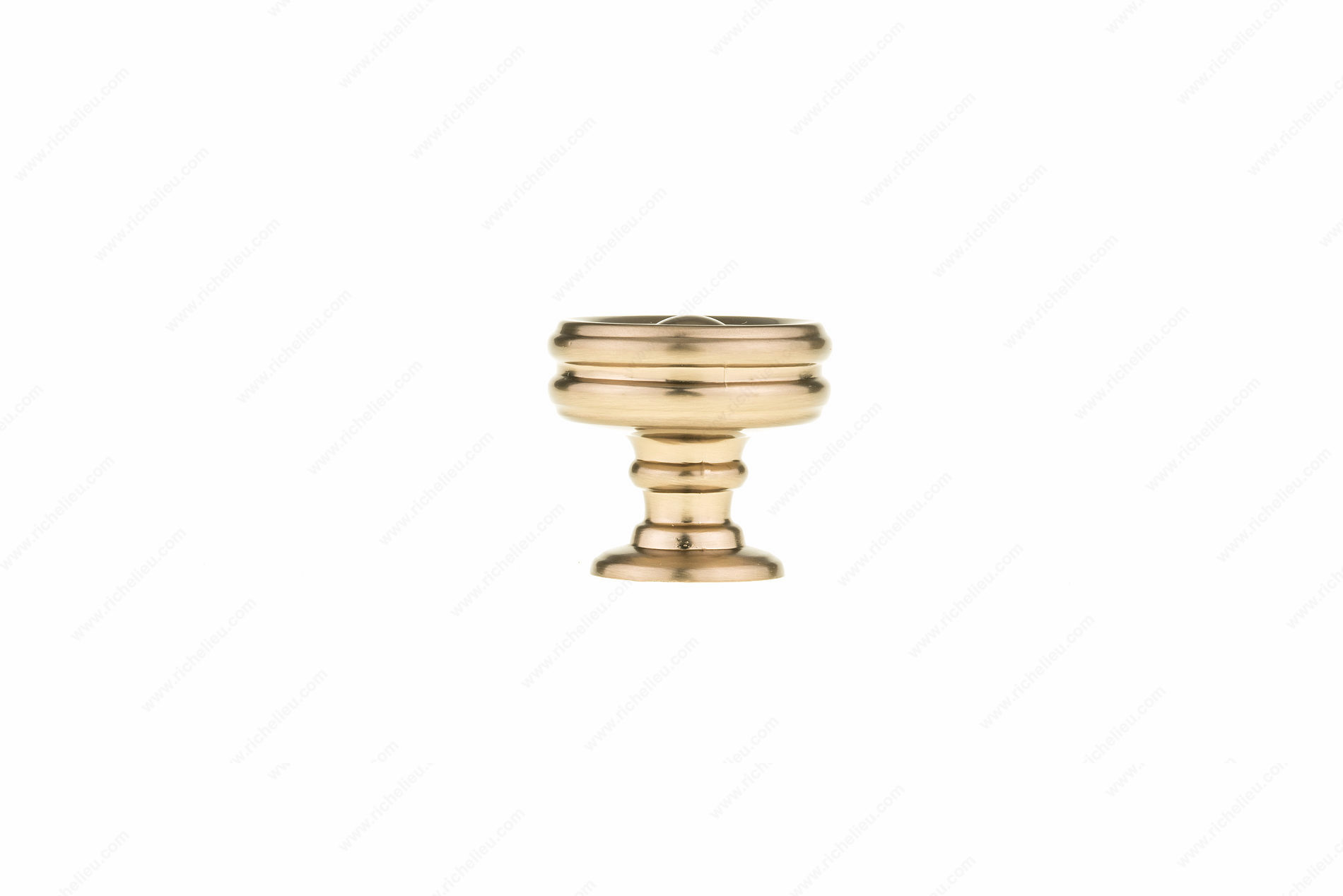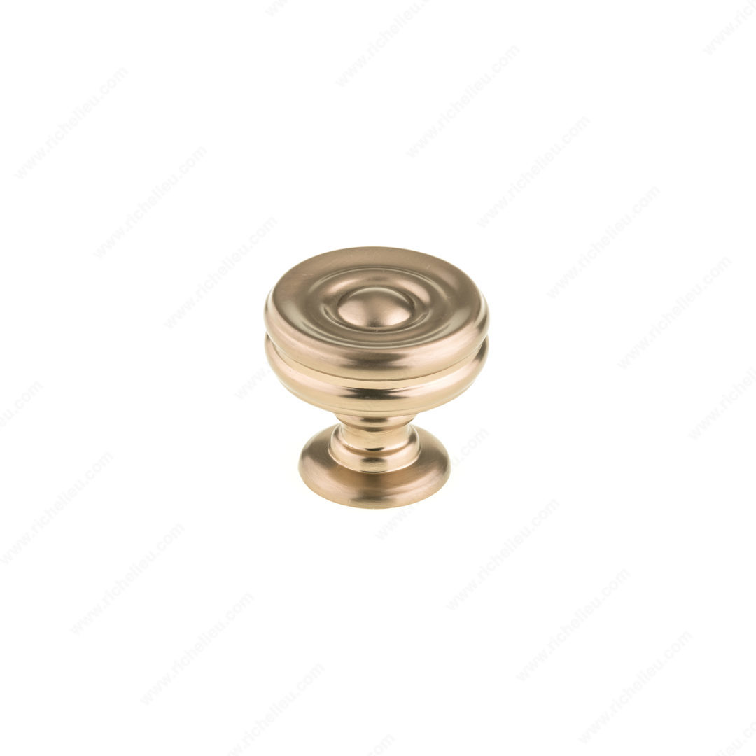 Richelieu BP872535CHBRZ Modern Metal Knob - 8725 offers a unique blend of style and functionality, perfect for enhancing contemporary furniture. This mushroom-shaped knob features concentric rings that create wide grooves, adding both texture and visual interest to any cabinetry or furniture piece. The elegant champagne bronze finish complements a variety of design schemes, making it an ideal choice for modern interiors. With an overall diameter of 1 3/8 inches and a base diameter of 15/16 inches, this knob is designed for comfortable handling while maintaining a sleek profile. The projection of 1 1/4 inches ensures ease of use without compromising on style. Crafted from durable zamak, the knob is built to withstand daily wear and tear while retaining its sophisticated appearance. This model belongs to the New Collection, showcasing Richelieu's commitment to innovative design. Each knob comes with an 8/32 inch screw included for easy installation, streamlining your project without the need for additional hardware. Whether you're updating kitchen cabinets or redesigning a furniture piece, the Richelieu BP872535CHBRZ knob is a versatile and striking choice that brings a touch of modern elegance to your space.