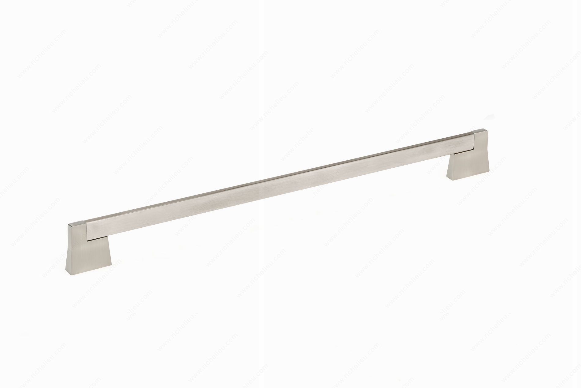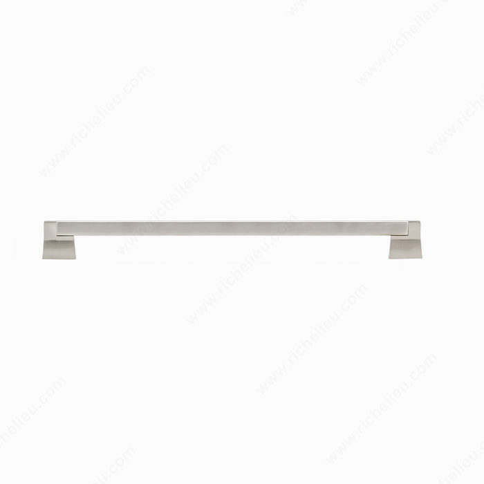 Richelieu BP8727320195 Modern Metal Pull - 8727 offers a sleek, contemporary design that elevates the aesthetic of any furniture or cabinetry. The pull features flared rectangular posts that create a striking geometric look, making it an ideal choice for modern interiors. With an overall length of 14 inches and a center-to-center measurement of 12 5/8 inches, this pull provides ample space for comfortable grip while maintaining a compact profile. Crafted from durable aluminum and Zamak, the BP8727320195 is built to withstand the rigors of daily use, ensuring longevity and reliability. The brushed nickel finish not only enhances its modern appeal but also adds a layer of sophistication to your cabinetry. Available in a chic gray and chrome color scheme, this pull seamlessly integrates into various design themes, from minimalist to industrial styles. The pull's overall projection measures 1 17/32 inches, making it both functional and stylish. Each package includes 8/32 inch screws for easy installation, allowing you to upgrade your space with minimal effort. Discover the perfect combination of form and function with Richelieu’s BP8727320195 Modern Metal Pull-an essential addition to any contemporary home.