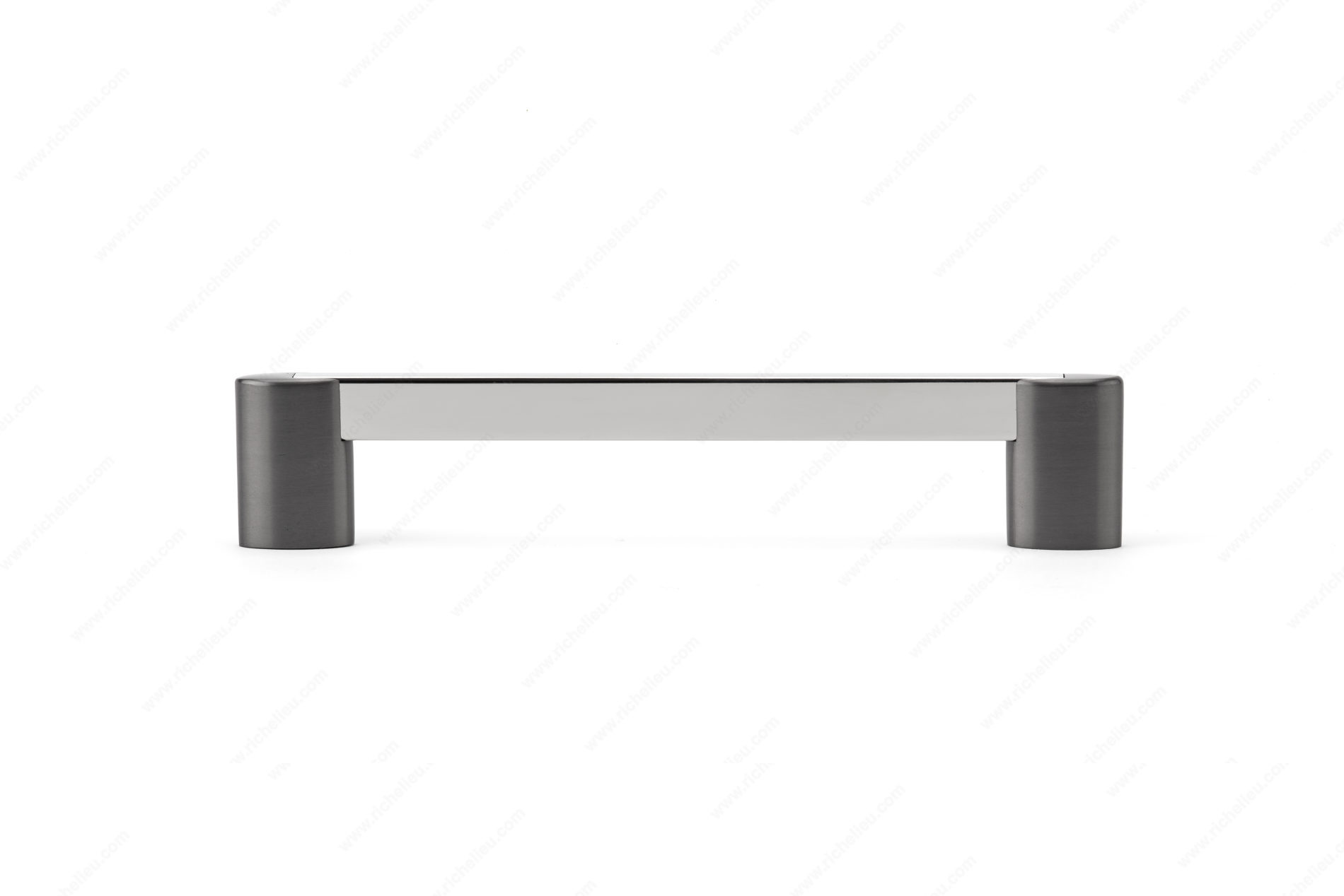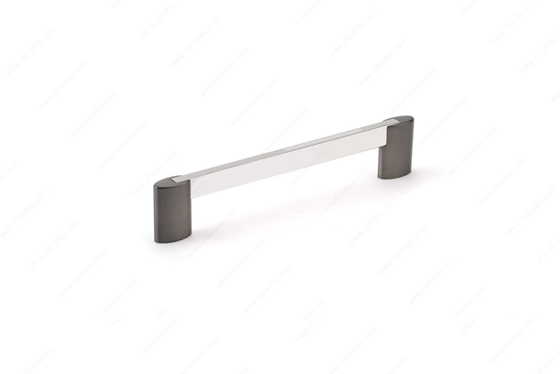Richelieu BP872816094140 Modern Metal Pull - 8728 showcases a striking blend of contemporary design and functionality, making it an ideal choice for modern furniture and cabinetry. The unique combination of oval posts and a straight bar creates an eye-catching aesthetic that enhances the overall look of any room. With an overall length of 7 9/32 inches and a center-to-center measurement of 6 5/16 inches, this pull is perfectly sized for both ease of use and stylish appeal. Crafted from premium materials, including aluminum and Zamak, it offers durability and a sophisticated finish in chrome and brushed black stainless steel. This versatile pull fits seamlessly into various design themes, making it a valuable addition to your collection. The projection of 1 15/32 inches allows for a comfortable grip, while the width of 1/2 inch ensures it maintains a low profile. Included 8/32 inch screws facilitate easy installation, ensuring you can quickly upgrade your cabinetry without hassle. The BP872816094140 is not just a functional hardware piece; it’s a statement of modern elegance that complements the New Collection by Richelieu. Elevate your space with this stylish and practical pull that brings together form and function effortlessly.