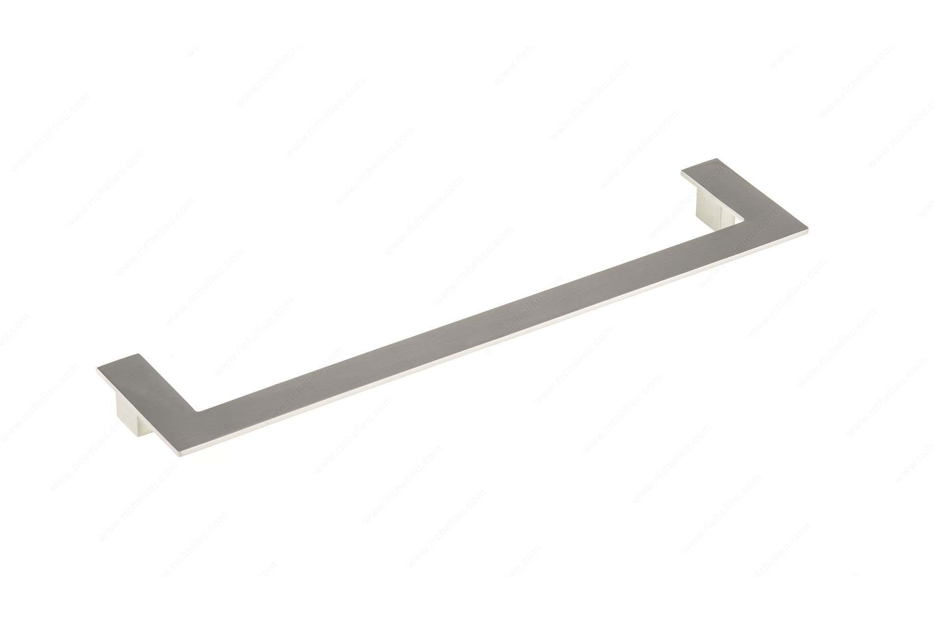 Richelieu BP8742320195 Modern Metal Pull - 8742 delivers a striking contemporary aesthetic to any cabinetry. With its angular design, this pull not only enhances the look of your furniture but also invites creative pairing; using two pulls together can create an eye-catching geometric shape that adds flair and sophistication. Crafted from durable zamak, this pull is built to withstand daily use while maintaining its elegance. The brushed nickel finish, designated as finish number 195, provides a sleek gray and chrome appearance, making it a versatile choice for various interior styles. Measuring 13 ½ inches in length, with a center-to-center distance of 12 5/8 inches, it fits perfectly on standard cabinetry while ensuring a comfortable grip. The pull features an overall projection of 1 1/32 inches and a width of 2 15/16 inches, making it both functional and stylish. Installation is straightforward, as it comes with 8/32 inch screws included, enabling a hassle-free setup. Part of the new collection, the BP8742320195 is an ideal choice for building professionals and discerning homeowners looking to elevate their spaces with modern hardware solutions.