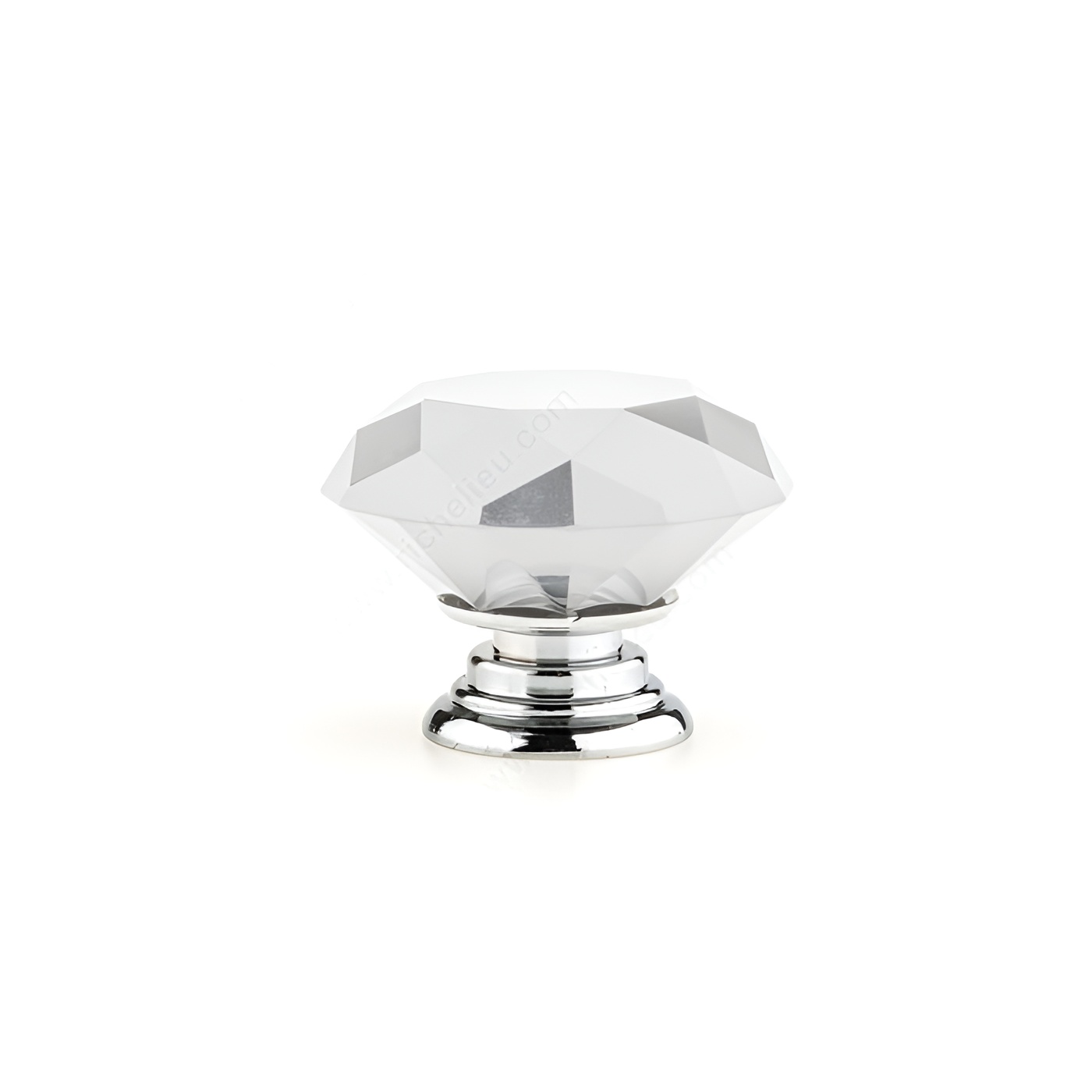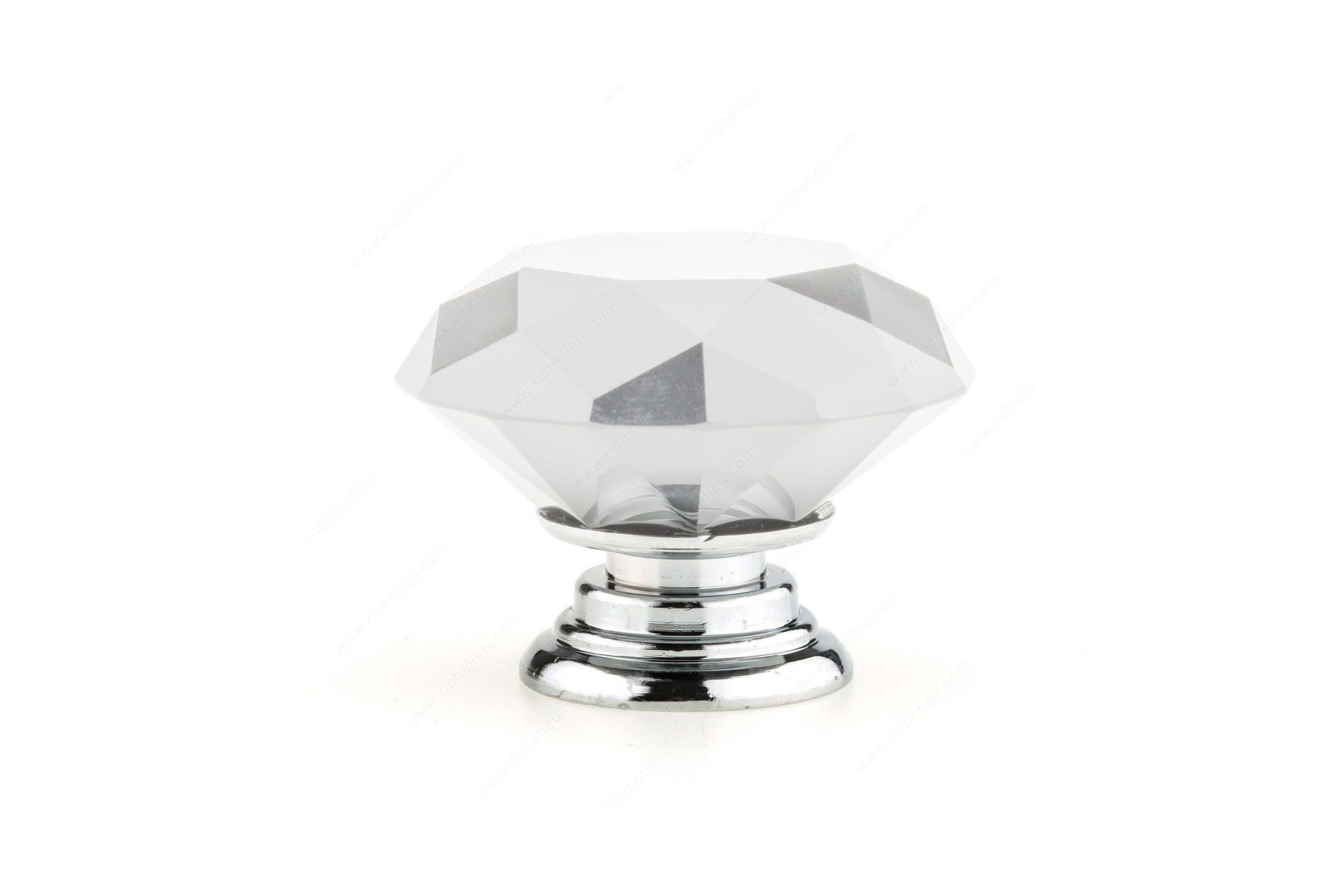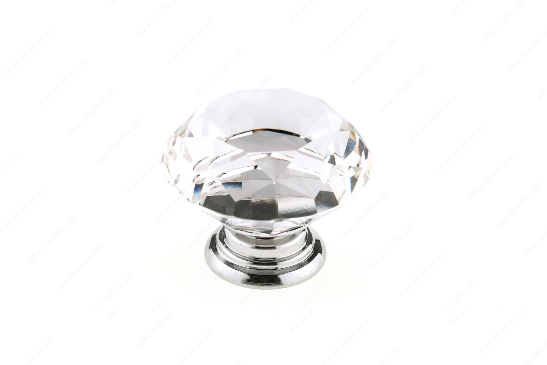 Richelieu BP87765014011 Modern Crystal Knob - 8776 brings a touch of luxury and elegance to any space. This stunning crystal knob serves as a fashionable accent, seamlessly enhancing the aesthetic of cabinets, drawers, or furniture. Crafted from high-quality metal and crystal, it features a chic clear and chrome finish that complements various interior styles, making it a versatile choice for modern decor. With an overall diameter of 1 31/32 inches and a base diameter of 1 5/32 inches, this knob is designed to fit comfortably in hand, ensuring ease of use. Its projection measures 1 9/16 inches, providing a sleek profile while maintaining functionality. The knob supports a load capacity of 2.2 pounds, making it suitable for various applications. Included with the knob is an 8/32-inch screw for easy installation, allowing professionals and DIY enthusiasts alike to upgrade their spaces effortlessly. The BP87765014011 is part of Richelieu's New Collection, reflecting contemporary design trends. Whether you're renovating a kitchen, bathroom, or any living area, this modern crystal knob will undoubtedly make a statement and elevate your design.