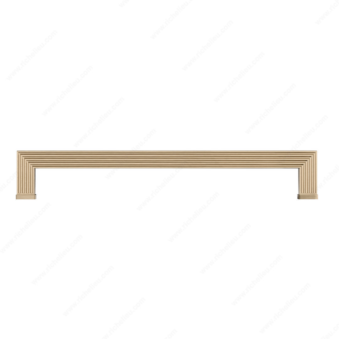 Richelieu BP8788320CHBRZ Transitional Metal Pull - 8788 offers a seamless blend of style and functionality, ideal for enhancing your cabinetry or appliances. This pull features a smooth-faced design accented by elegant grooves at the top and bottom, adding a sophisticated touch to any space. With a center-to-center measurement of 12 5/8 inches, it fits perfectly with various cabinet configurations. Crafted from durable zamak, this appliance pull not only ensures longevity but also showcases a stunning champagne bronze finish that complements a variety of decor styles. Its overall dimensions measure 13 1/2 inches in length, 7/8 inch in width, and a projection of 2 5/32 inches, providing a comfortable grip while maintaining a sleek profile. Included with the pull are M6 screws for easy installation, making it a practical choice for both professionals and DIY enthusiasts. Part of Richelieu's New Collection, this transitional pull brings a contemporary yet timeless aesthetic, making it suitable for kitchen renovations or furniture upgrades. Elevate your design projects effortlessly with the Richelieu BP8788320CHBRZ, where style meets functionality in a single, exquisite piece.