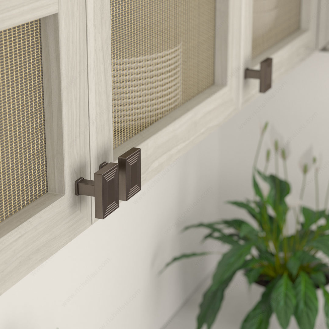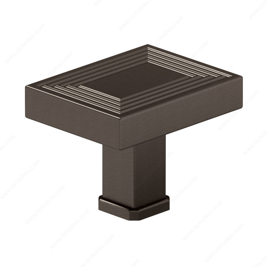 Richelieu BP87883545HBRZ Transitional Metal Knob - 87884 offers a sophisticated touch to your cabinetry with its stylish rectangular design framed by sleek grooves. This knob, part of the New Collection, is perfect for homeowners and professionals seeking to enhance the aesthetic of kitchens, bathrooms, or any furniture piece. Crafted from durable zamak, this knob boasts a stunning Honey Bronze finish (HBRZ) that adds warmth and elegance to any space. Measuring 1 25/32 inches in length and 1 3/8 inches in both width and projection, it provides a comfortable grip while maintaining a refined profile. The included 8/32 inch screw ensures easy installation, making it a practical choice for both new projects and renovations. The rich brown and bronze color combination complements a variety of decor styles, allowing it to seamlessly blend with existing furnishings. Whether you’re updating cabinetry or adding finishing touches to a custom project, the Richelieu BP87883545HBRZ knob serves as a functional and stylish hardware solution. Elevate your design with this transitional knob that combines timeless style with modern sensibilities.
