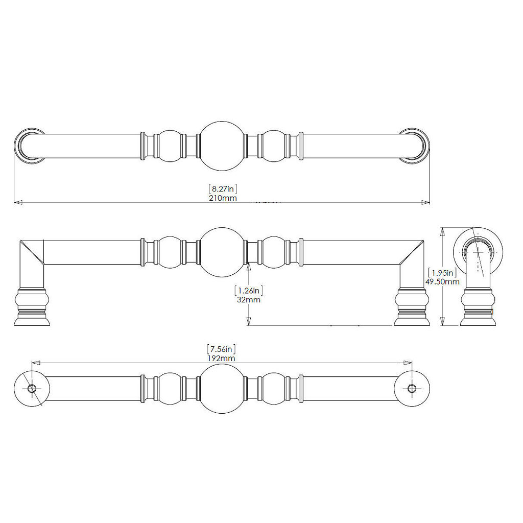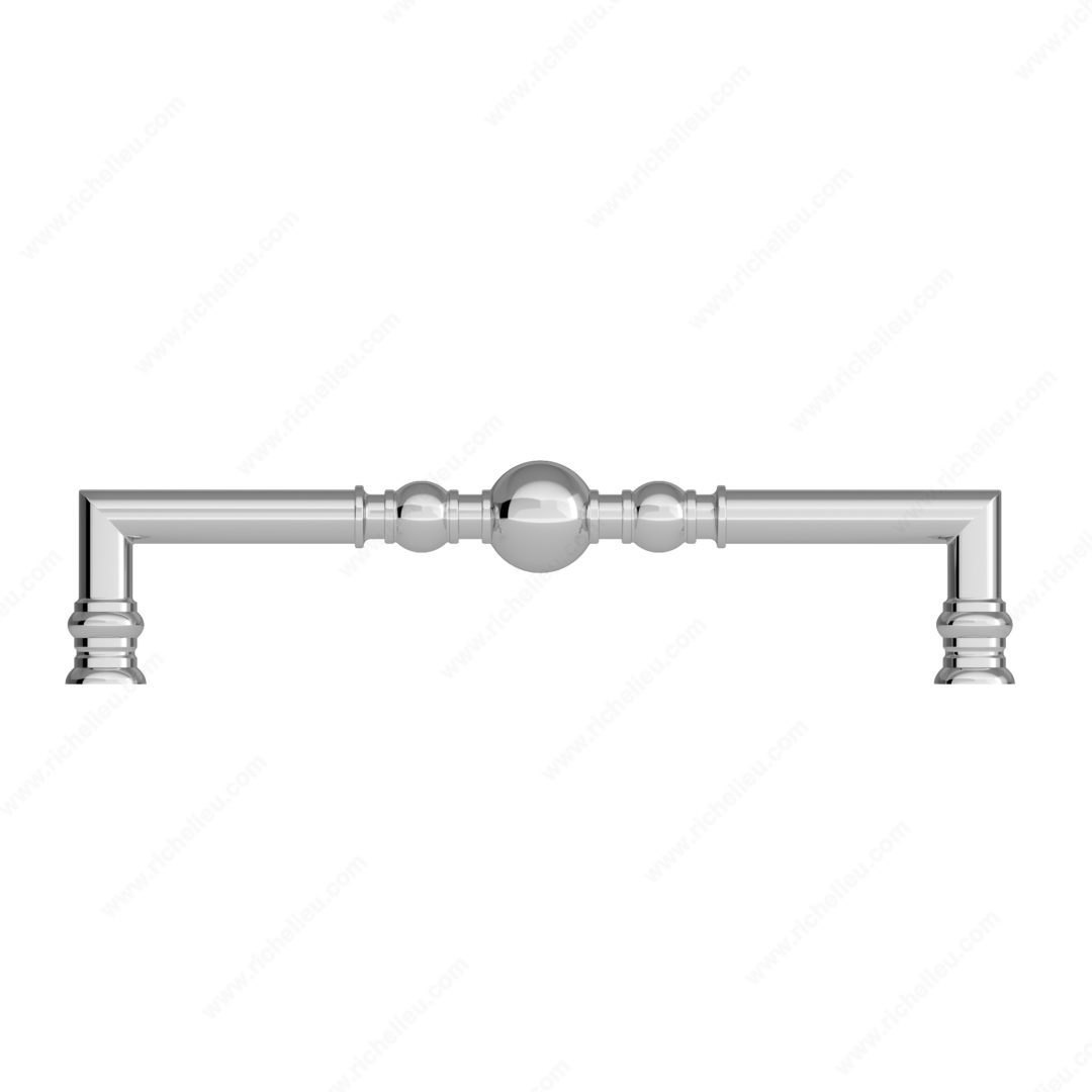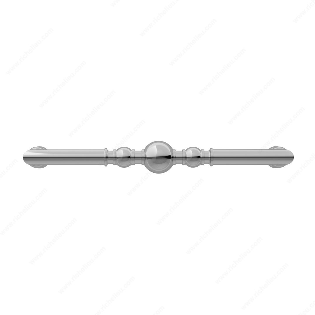 Richelieu BP8789192140 Traditional Metal Pull - 8789 offers a refined touch to any cabinetry or furniture piece. The elegant design features a symmetrical arrangement of beads and rings along the handle, making it a perfect choice for enhancing the sophistication of both traditional and contemporary interiors. With an overall length of 8 9/32 inches and a center-to-center measurement of 7 9/16 inches, this pull is ideal for various applications. Constructed from durable zamak, the pull combines strength with a sleek look, finished in a striking chrome that appeals to modern sensibilities. The gray and chrome color scheme allows for versatile pairing with different decor styles, while the traditional design ensures timeless appeal. This product is easy to install, featuring screws that are included for hassle-free mounting. With a projection of 1 31/32 inches and a width of 31/32 inches, it offers a comfortable grip for everyday use. The BP8789192140 is part of Richelieu's New Collection, making it a stylish addition to your design projects. It ships conveniently via UPS, ensuring you receive your order promptly. Upgrade your space with this classic yet contemporary pull that embodies elegance and functionality.