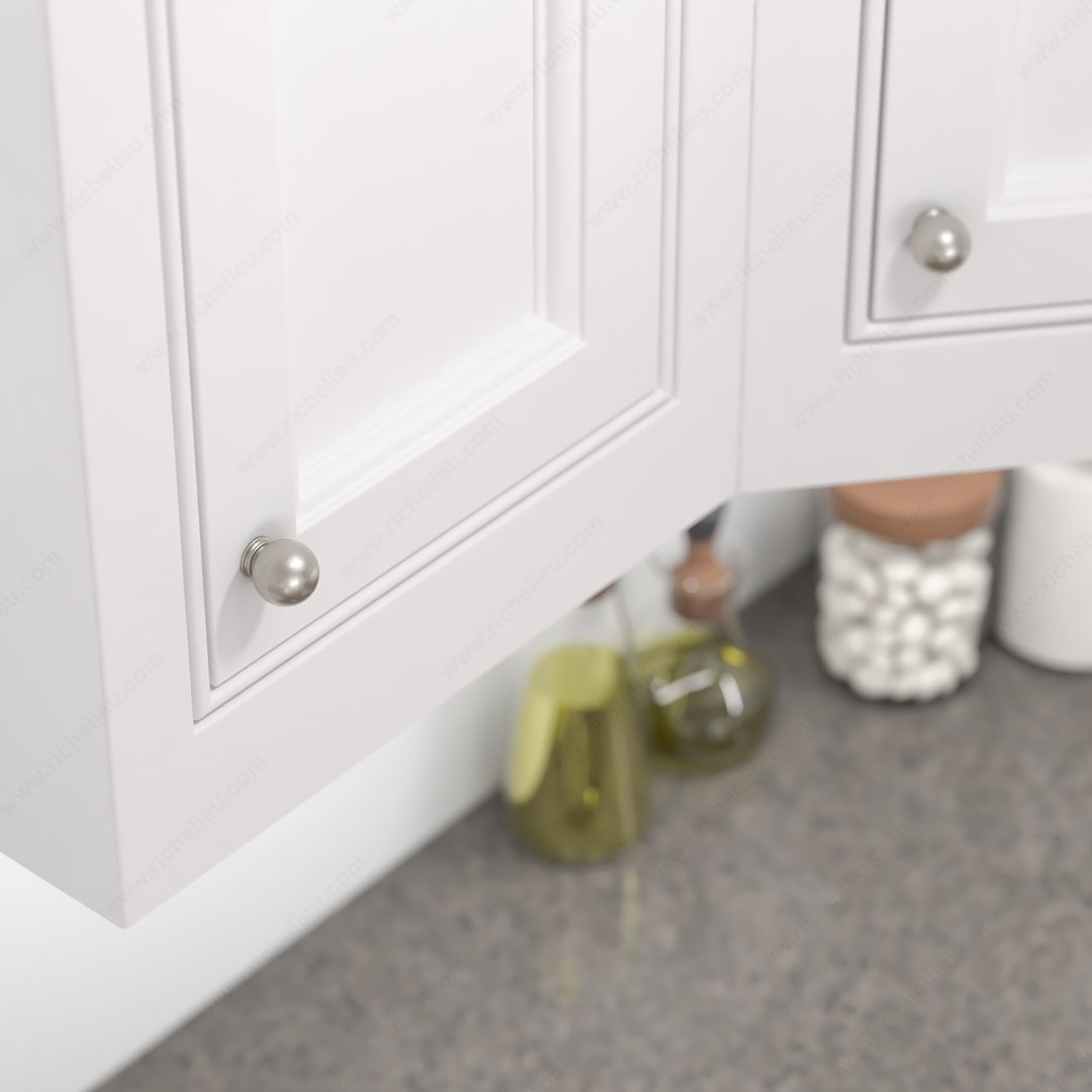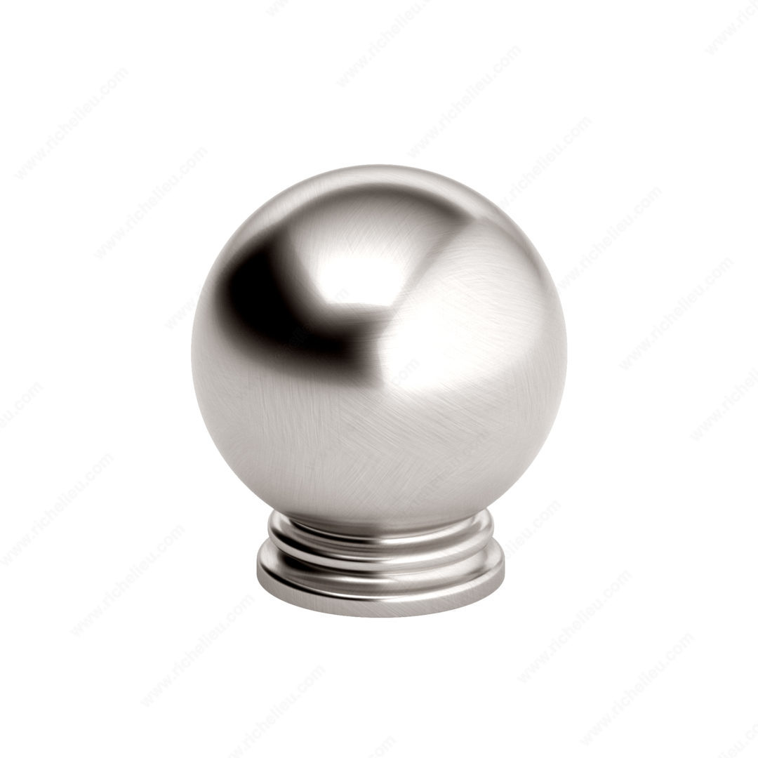 Richelieu BP878930195 Traditional Metal Knob - 8789 brings an elegant touch to your cabinetry with its classic oversized bead design and stepped base. Crafted from durable Zamak, this knob features a stunning brushed nickel finish (Finish Number: 195), offering a modern yet timeless appeal that complements a variety of interior styles. Measuring 1 3/16 inches in diameter and projecting 1 3/8 inches, this knob is not only attractive but also functional, providing a comfortable grip for easy access to your cabinets. The base diameter of 25/32 inch ensures a sturdy installation, while the included 8/32 inch screw simplifies the setup process. Part of the New Collection, the BP878930195 is available in a sophisticated gray and chrome color scheme, making it a versatile choice for both traditional and contemporary spaces. Whether you’re upgrading your wardrobe cabinets or enhancing kitchen fixtures, this knob exudes refinement and quality. Designed for easy shipping via UPS, the Richelieu Traditional Metal Knob is perfect for building professionals and discerning homeowners alike, seeking to elevate their cabinetry with a touch of style and sophistication. Explore the complete collection to find the perfect match for your design vision.