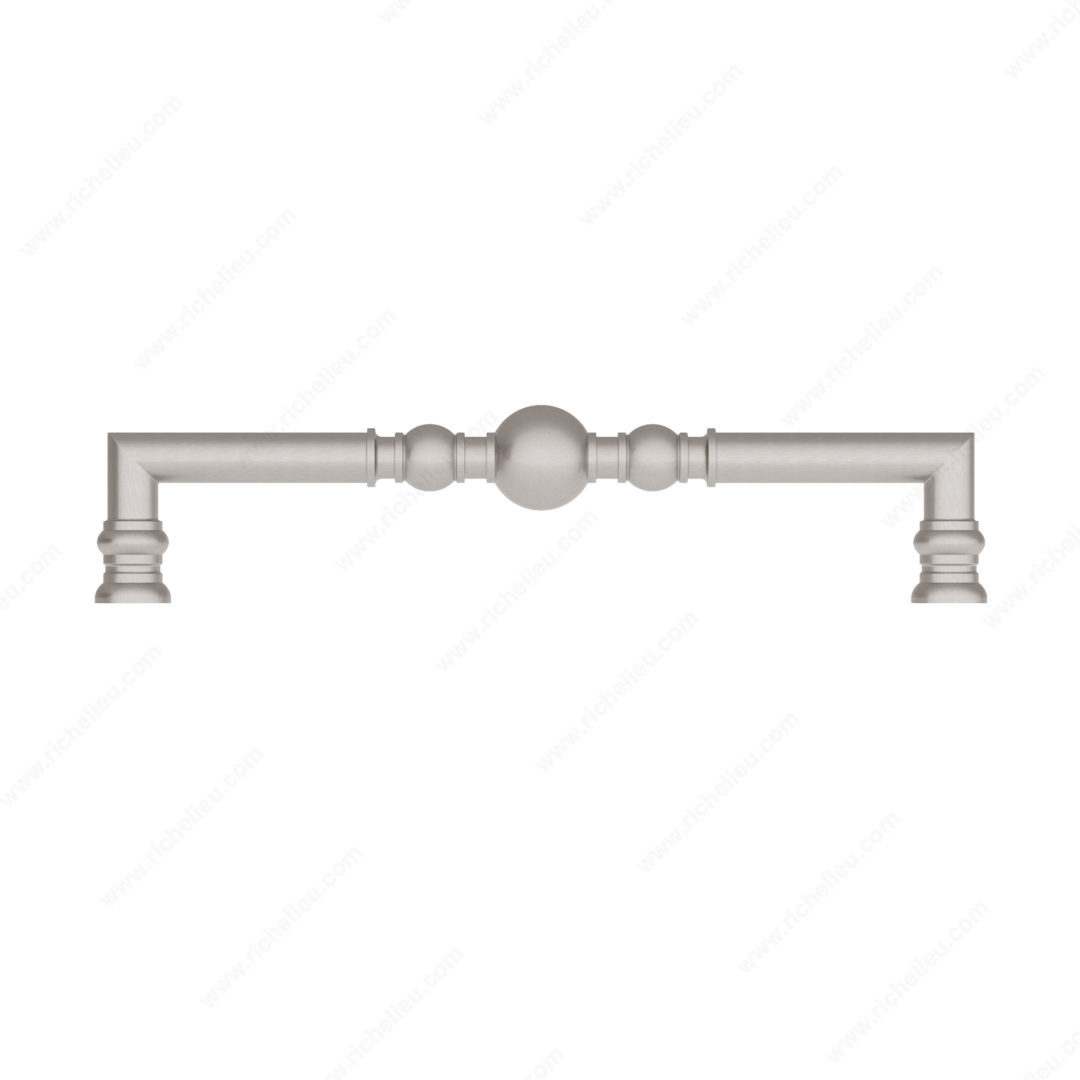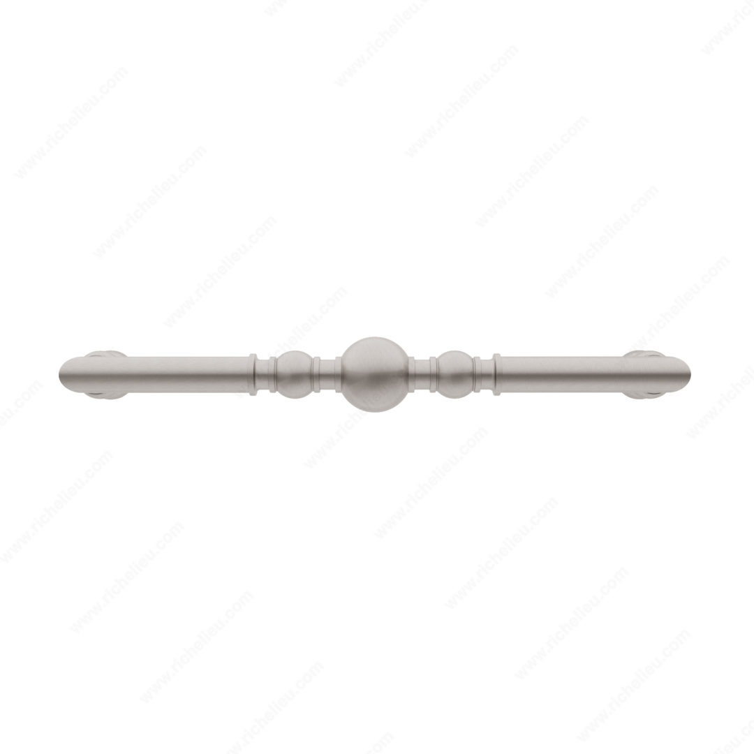 Richelieu BP8789320195 Traditional Metal Pull - 8789 elevates your interior with its elegant design, featuring a harmonious arrangement of beads and rings that adds a touch of sophistication to any space. This pull, part of the New Collection, showcases a beautiful brushed nickel finish that complements a variety of decor styles while ensuring durability and longevity thanks to its high-quality Zamak material. With an overall length of 13 3/4 inches and a center-to-center measurement of 12 5/8 inches, this pull is designed for comfortable grip and easy functionality. Its dimensions include a projection of 3 1/16 inches and a width of 1 21/32 inches, making it suitable for various cabinetry and furniture applications. The product comes packaged securely in a box and includes the necessary 8/32 inch screws for installation. This traditional-style pull, finished in a striking gray and chrome color palette, seamlessly blends classic aesthetics with modern durability. Ideal for kitchens, bathrooms, or any room requiring a refined touch, the Richelieu BP8789320195 is more than just a handle-it’s an upgrade to your living space. Experience the difference in quality and design that Richelieu brings to your home.