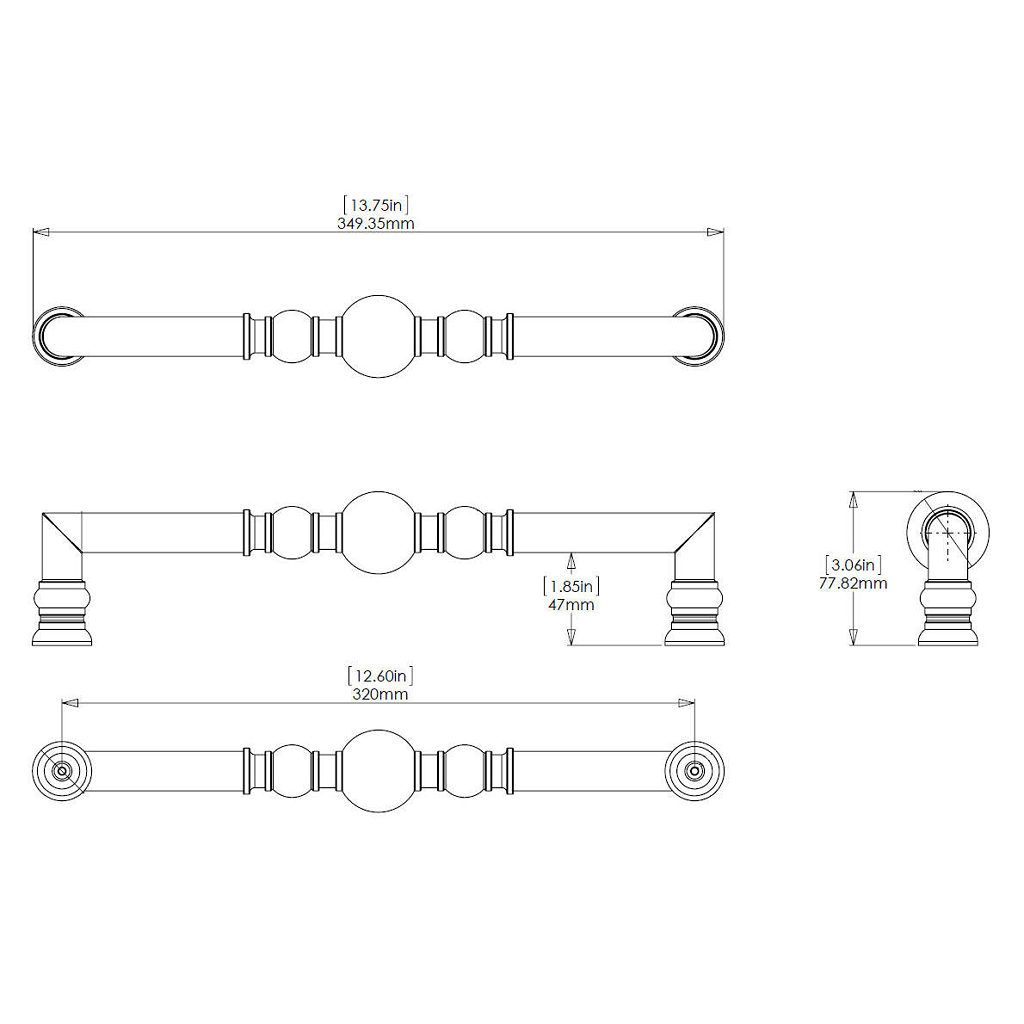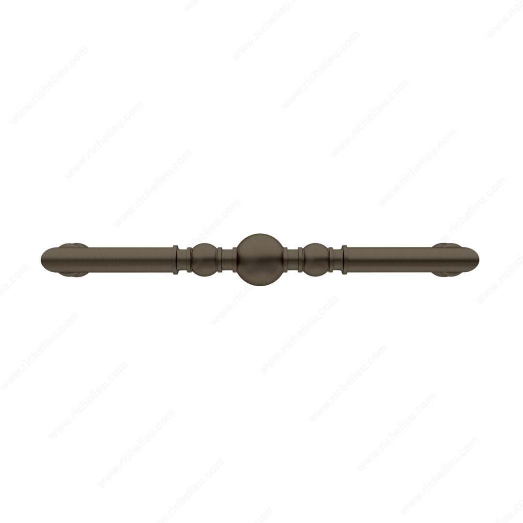 Richelieu BP8789320HBRZ Traditional Metal Pull - 8789 offers a timeless elegance that enhances the aesthetic of any room. Its intricate design features a symmetrical arrangement of beads and rings along the handle, making it a standout piece for cabinetry or furniture. Crafted from durable Zamak, this pull combines strength with style, providing both functionality and beauty. With an overall length of 13 3/4 inches and a center-to-center measurement of 12 5/8 inches, it is perfectly sized for a variety of applications. The honey bronze finish adds a warm touch, rendering it suitable for both traditional and contemporary decor. Its overall projection of 3 1/16 inches ensures easy grip and accessibility, while the width of 1 21/32 inches provides a substantial feel. This pull is part of Richelieu's New Collection, making it a great addition for those looking to refresh their living spaces. Included with the product are 8/32 inch screws for straightforward installation. Packaged securely in a box, the Richelieu BP8789320HBRZ is ready to ship via UPS, ensuring you receive it promptly for your next project. Elevate your interiors with this exquisite traditional pull that harmonizes style and practicality.