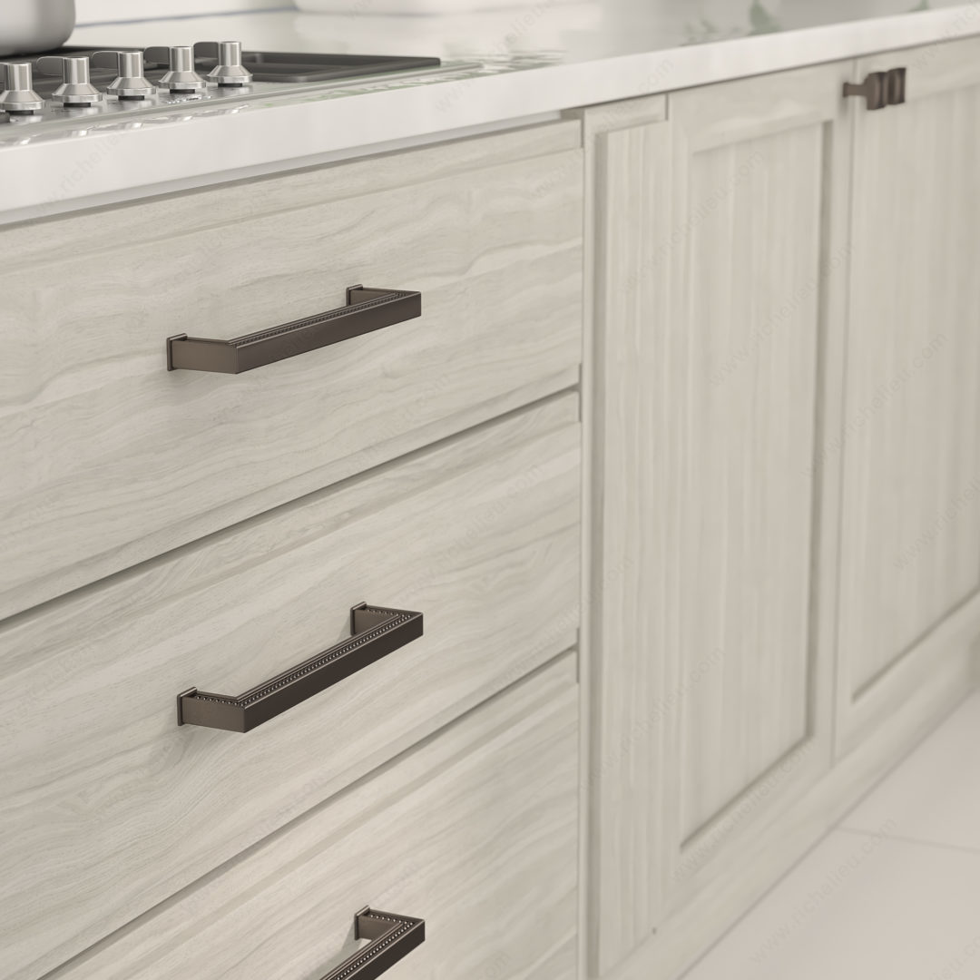Richelieu BP8795192HBRZ Transitional Metal Pull - 8795 showcases an elegant design that seamlessly blends functionality with aesthetic appeal. The refined beading along the sides enhances its transitional style, making it a striking addition to any cabinetry or furniture piece. Crafted from durable zamak material, this pull is designed to withstand everyday use while maintaining its sophisticated appearance. With an overall length of 8 9/32 inches and a width of 23/32 inches, the pull offers a comfortable grip. The center-to-center measurement of 7 9/16 inches ensures compatibility with a variety of cabinet doors and drawers. Finished in a rich honey bronze hue, this piece exudes warmth and elegance, complementing a range of interior designs. The BP8795192HBRZ is part of the New Collection, allowing you to mix and match with other pieces from model 8795 for a cohesive look throughout your space. Each pull comes complete with an 8/32 inch screw, simplifying installation. With a projection of 1 11/16 inches, it provides ample clearance for easy access. Elevate your home’s interior with the stylish and functional Richelieu Transitional Metal Pull, designed for both building professionals and discerning homeowners alike.
