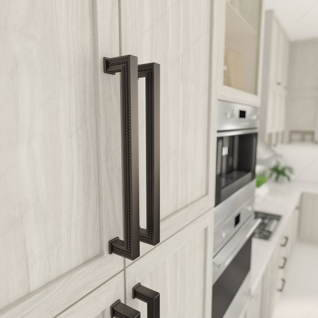 Richelieu BP8795320HBRZ Transitional Metal Pull - 8795 seamlessly combines elegance and functionality, making it a perfect addition to any cabinetry. This pull features exquisite beading along the sides, complemented by clean edges that create a striking transitional design. The sophisticated Honey Bronze finish adds warmth and richness, enhancing the visual appeal of your furniture. Measuring 13 5/8 inches in overall length with a center-to-center distance of 12 5/8 inches, this pull fits comfortably in hand while providing ample leverage. Its sturdy construction from Zamak ensures durability, while the projection of 2 5/32 inches allows for ease of use without compromising style. With a width of 31/32 inches, it maintains a sleek profile that suits various design themes. Each pull is designed for easy installation, featuring included 8/32 inch screws. Part of Richelieu's new collection, the BP8795320HBRZ offers cohesive design options with other models in the 8795 series. Ideal for both building professionals and discerning homeowners, this pull is a versatile choice that elevates the aesthetic of any kitchen or living space. Experience the perfect blend of style and practicality with Richelieu's transitional metal pull.