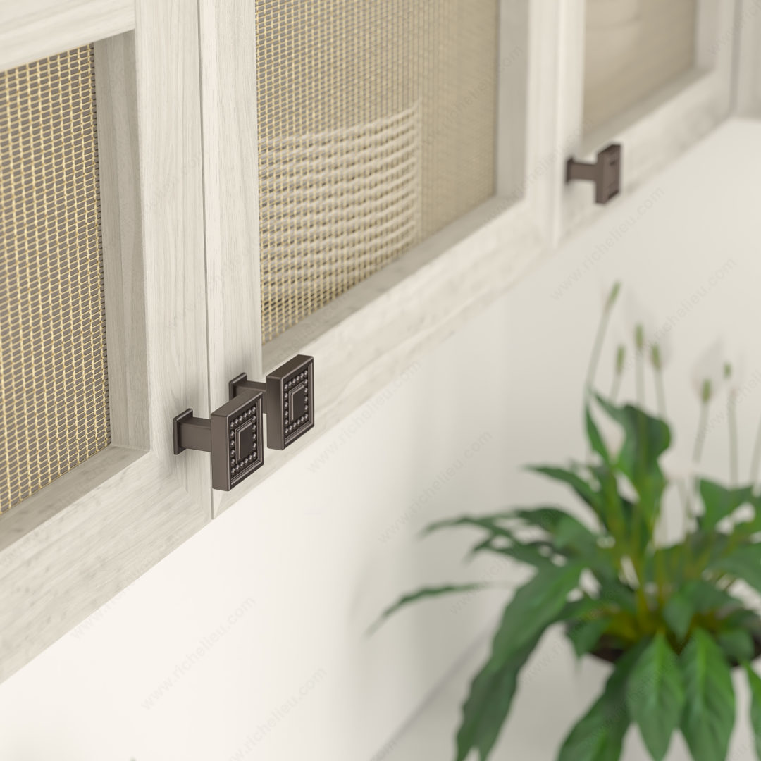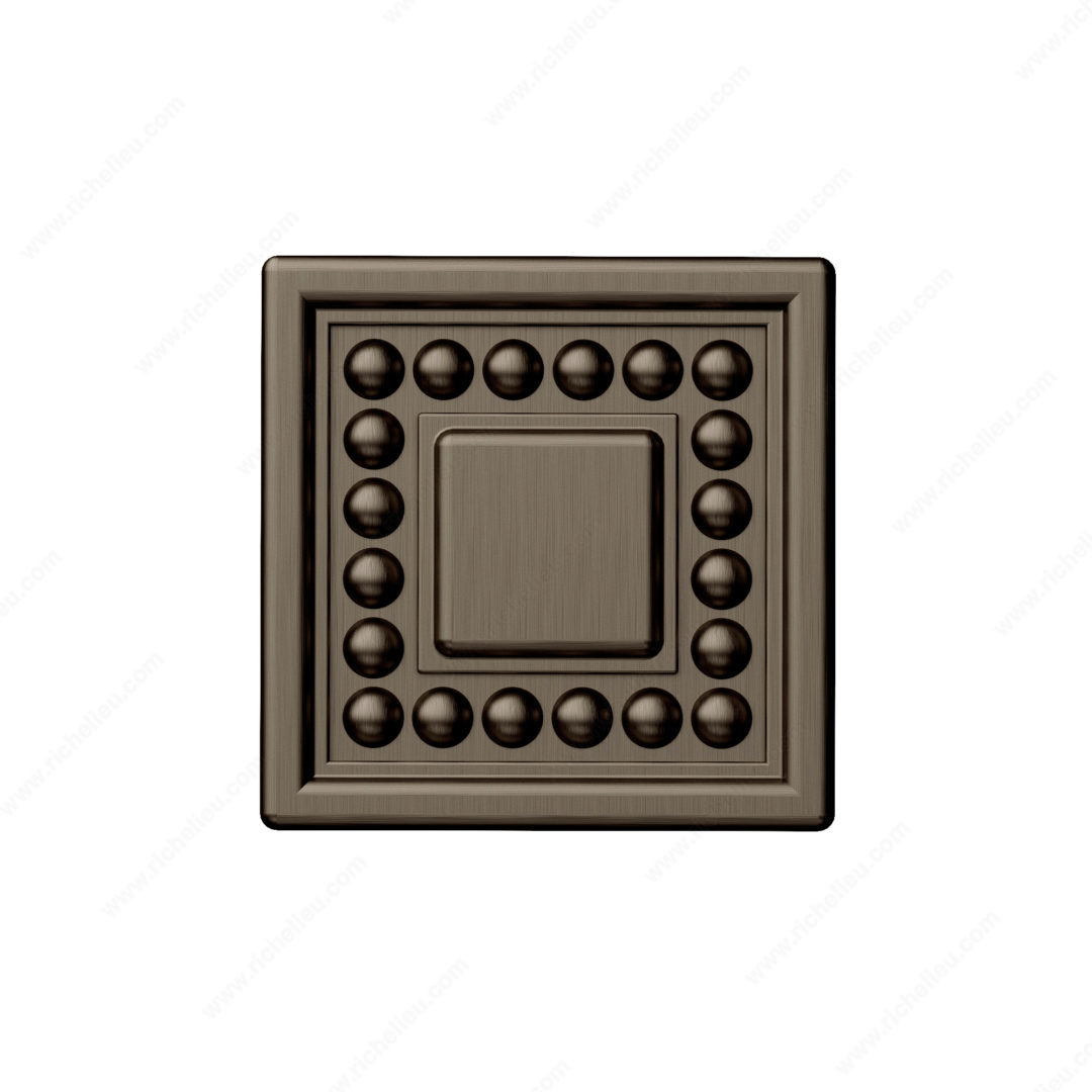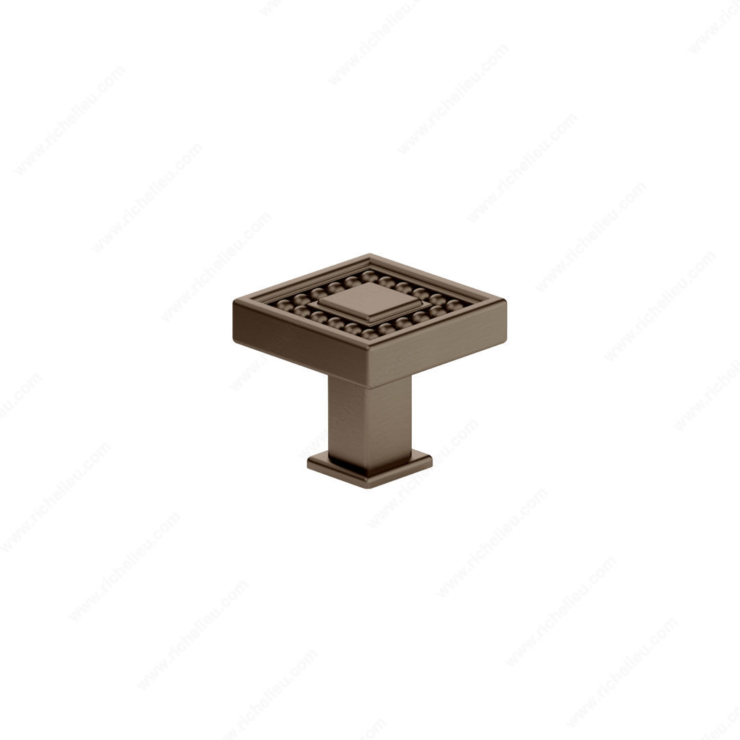 Richelieu BP87953333HBRZ Transitional Metal Knob - 8795 combines elegance with functionality, making it an ideal choice for modern cabinetry. The striking beaded detailing along the sides enhances its visual appeal, while the clean edges contribute to a sophisticated transitional design. Crafted from durable zamak, this knob is not only stylish but also built to withstand daily use. Measuring 1 5/16 inches in length and width, with a projection of 1 3/16 inches, this knob is perfectly sized for a variety of applications. The honey bronze finish (HBRZ) adds warmth and richness, seamlessly complementing both contemporary and traditional decors. Its base diameter of 5/8 inch ensures a secure fit, making installation straightforward with the included 8/32 inch screw. Part of a new collection, the BP87953333HBRZ is designed to coordinate with other pieces in the 8795 line, providing cohesive styling across your spaces. Ideal for both building professionals and discerning homeowners, this knob is available for quick shipping via UPS, ensuring you can enhance your project without delay. Choose Richelieu’s transitional knob to elevate your cabinetry with a touch of timeless elegance.