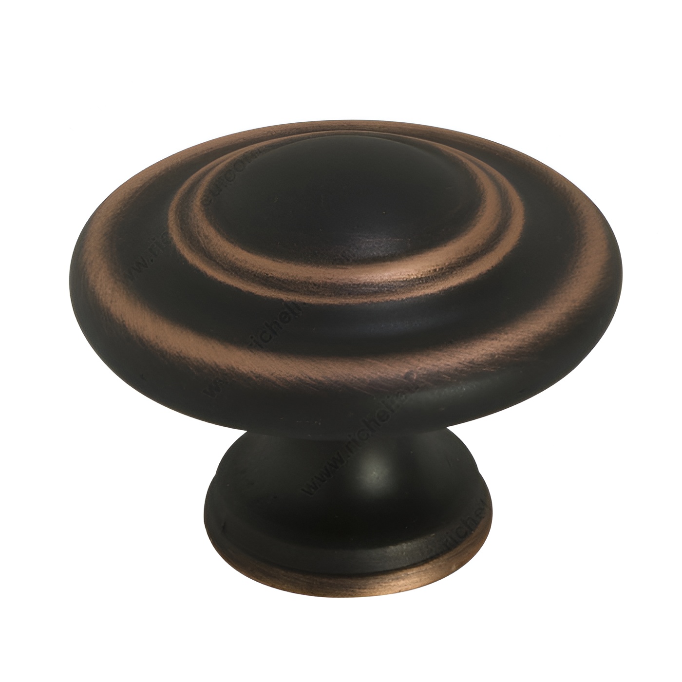 Richelieu BP880BORB Traditional Metal Knob - 880B effortlessly combines classic elegance with functionality, making it an ideal choice for enhancing your kitchen or bathroom décor. This round knob features a timeless circular design that complements a variety of styles while adding a touch of sophistication. The brushed oil-rubbed bronze finish brings warmth and richness, beautifully accentuated by its brown and bronze color palette. Measuring 1 23/32 inches in diameter, this knob offers a comfortable grip, while the overall projection of 1 11/32 inches ensures ease of use. Crafted from durable zamak, it guarantees longevity and resistance to wear, making it perfect for everyday use. The traditional style of the BP880BORB knob is well-suited for those looking to add a classic touch to their cabinetry. Included with the knob is an 8/32 inch screw for straightforward installation, making it a convenient upgrade for your home. Whether you're renovating a space or simply refreshing your fixtures, the Richelieu BP880BORB Traditional Metal Knob is a stylish and practical choice that will elevate the look of your interiors. Enjoy the perfect blend of design and durability with this exquisite addition to your space.