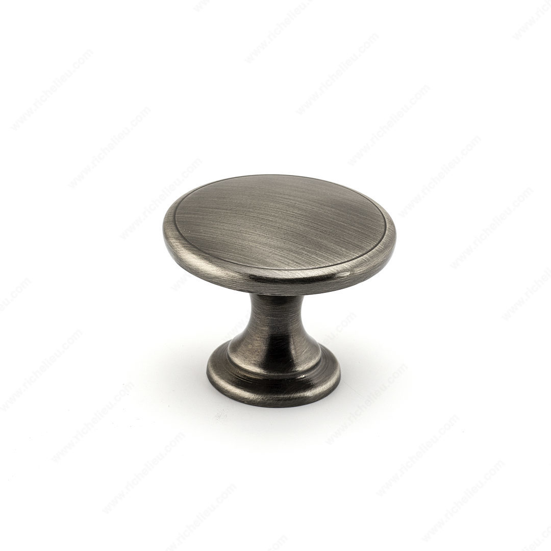 Richelieu BP881242 Transitional Metal Knob - 881 offers the perfect blend of elegance and simplicity for your transitional decor. Crafted from durable metal, this knob showcases a brushed pewter finish that enhances its modern aesthetic while ensuring longevity. With an overall diameter of 1 25/32 inches and a base diameter of 1 1/16 inches, it provides a comfortable grip, making it ideal for kitchen cabinets, bathroom vanities, or furniture pieces. The sleek gray and chrome color scheme complements a wide range of design themes, making it a versatile choice for any renovation or new build. Its projection of 1 3/8 inches adds depth, contributing to a sophisticated look without overwhelming your cabinetry. Each knob comes with an 8/32 inch screw included for easy installation, allowing you to upgrade your space effortlessly. Designed for those who appreciate clean lines and understated elegance, the Richelieu BP881242 knob is a functional accessory that adds a touch of refinement to your home. Whether you’re a building professional seeking reliable hardware or a knowledgeable homeowner looking to enhance your interior, this transitional knob is a stylish and practical choice that meets all your needs.