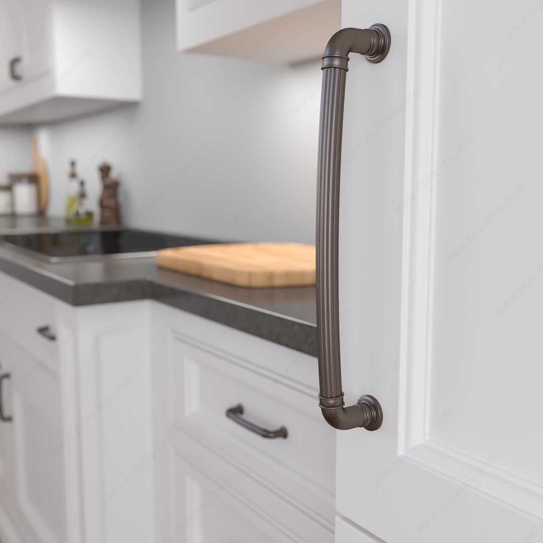 Richelieu BP8818320HBRZ Traditional Metal Pull - 8818 combines elegance and functionality in a stunning design. The distinctive fluted texture of this pull creates a striking contrast with its smooth posts, adorned with embellished bases that elevate the aesthetic of any cabinetry or furniture. With a center-to-center measurement of 12 5/8 inches, this pull is a perfect fit for larger drawers or cabinet doors, enhancing both accessibility and style. The Honey Bronze finish (HBRZ) offers a warm, inviting appearance that seamlessly integrates into a variety of design themes, from classic to contemporary. Crafted from durable Zamak, this pull promises longevity and resilience in high-traffic areas. Measuring 13 7/8 inches in overall length, with a projection of 2 13/32 inches and a diameter of 3/4 inch, this traditional-style pull is designed for comfort and ease of use. Each pull comes packaged with 8/32-inch screws included, ensuring a hassle-free installation process. Part of the New Collection, the BP8818320HBRZ is not just a functional hardware piece but a stylish accent that can transform your spaces. Upgrade your cabinetry with Richelieu's exceptional craftsmanship and timeless design.