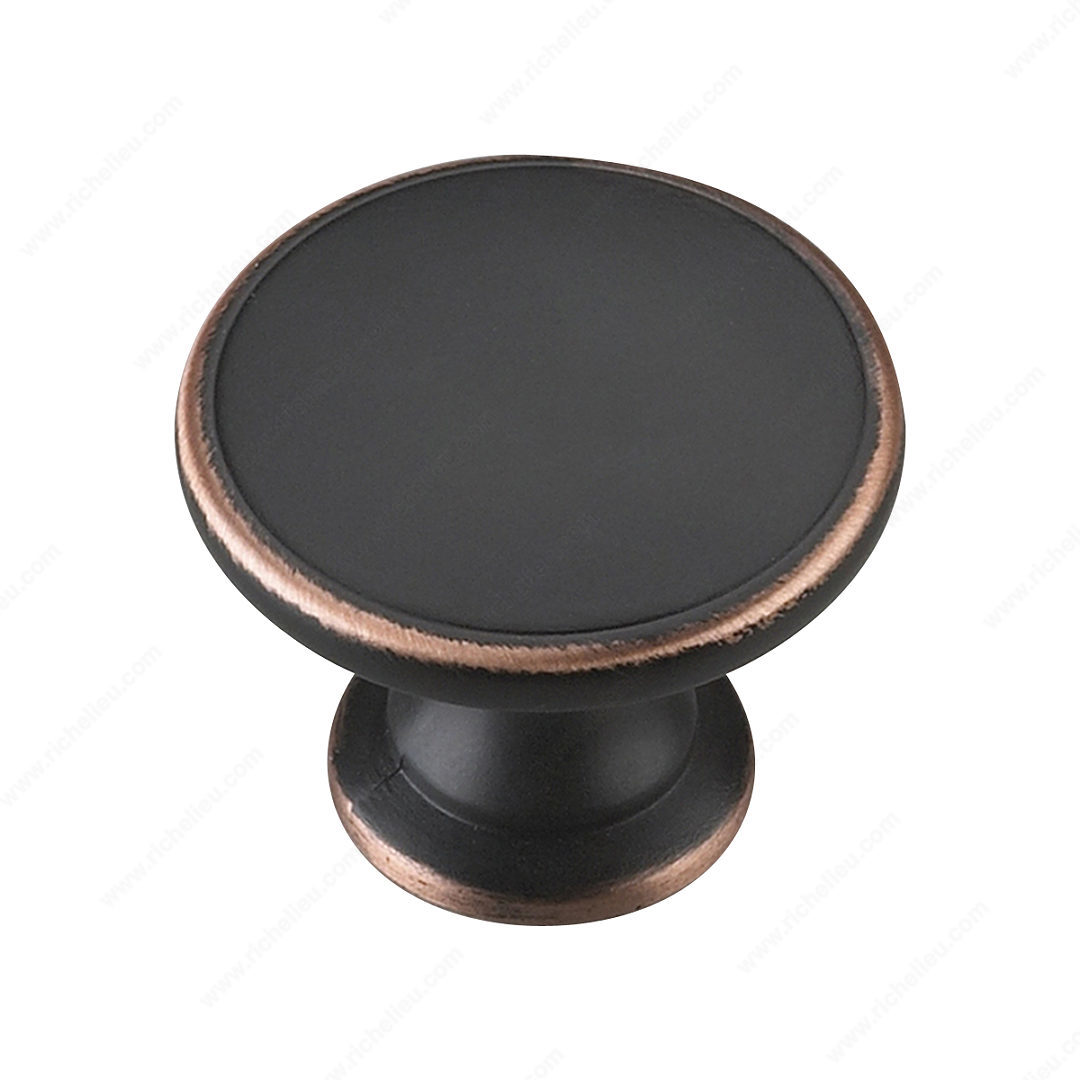 Richelieu BP881BORB Transitional Metal Knob - 881 enhances your transitional decor with its clean and simple design, perfectly blending style and functionality. Crafted from durable metal, this knob features a stunning brushed oil-rubbed bronze finish that adds a touch of sophistication to any cabinetry or furniture. With an overall diameter of 1 25/32 inches and a base diameter of 1 1/16 inches, it offers a comfortable grip while maintaining a sleek profile. The knob projects 1 3/8 inches, providing ample space for easy handling without overwhelming your design. Its rich brown and bronze color scheme allows it to seamlessly integrate into a variety of interior styles, making it a versatile choice for both professional and personal projects. Each knob comes with an 8/32 inch screw included, ensuring effortless installation. Whether you're updating kitchen cabinets, bathroom vanities, or furniture pieces, the Richelieu BP881BORB knob delivers functionality and elegance. Ship via UPS for convenience, making this an ideal choice for contractors and homeowners alike. Elevate your space with this exceptional hardware that embodies the essence of transitional design.