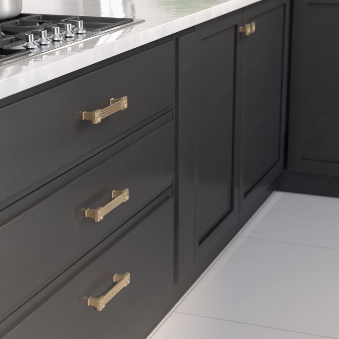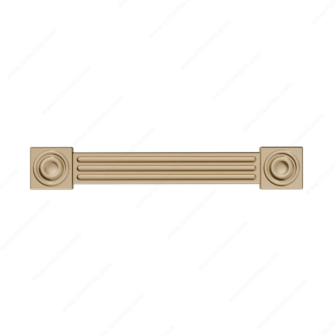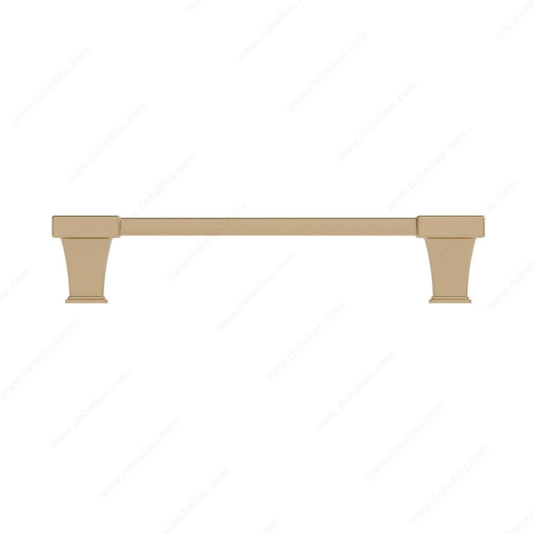 Richelieu BP8822128CHBRZ Transitional Metal Pull - 8822 is a remarkable addition to any cabinetry, blending modern elegance with classic charm. Inspired by art deco aesthetics and influenced by Greek architecture, this pull features a distinctive texture that enhances its transitional design. Crafted from durable zamak, it ensures longevity and resilience in busy environments. With an overall length of 5 31/32 inches and a center-to-center measurement of 5 1/32 inches, this pull is designed for easy installation using the included 8/32 inch screws. Its sleek champagne bronze finish (CHBRZ) brings a warm, inviting tone, perfectly accentuating kitchen or bathroom cabinetry. The pull's overall projection of 15/16 inch and width of 23/32 inch makes it comfortable to grip, combining functionality with style. Part of the new collection, it offers versatility and can seamlessly integrate with various design themes, making it ideal for both building professionals and discerning homeowners. Whether you are updating a single cabinet or outfitting an entire kitchen, the Richelieu BP8822128CHBRZ Transitional Metal Pull - 8822 is the perfect choice for enhancing your space with a sophisticated touch. Enjoy the harmony of modern and classic design with this exquisite hardware piece.