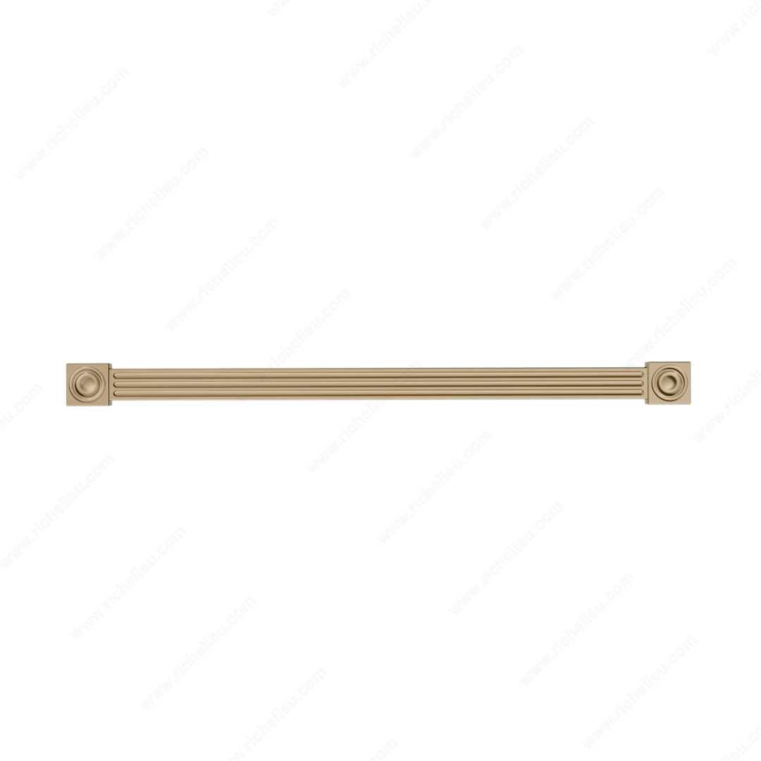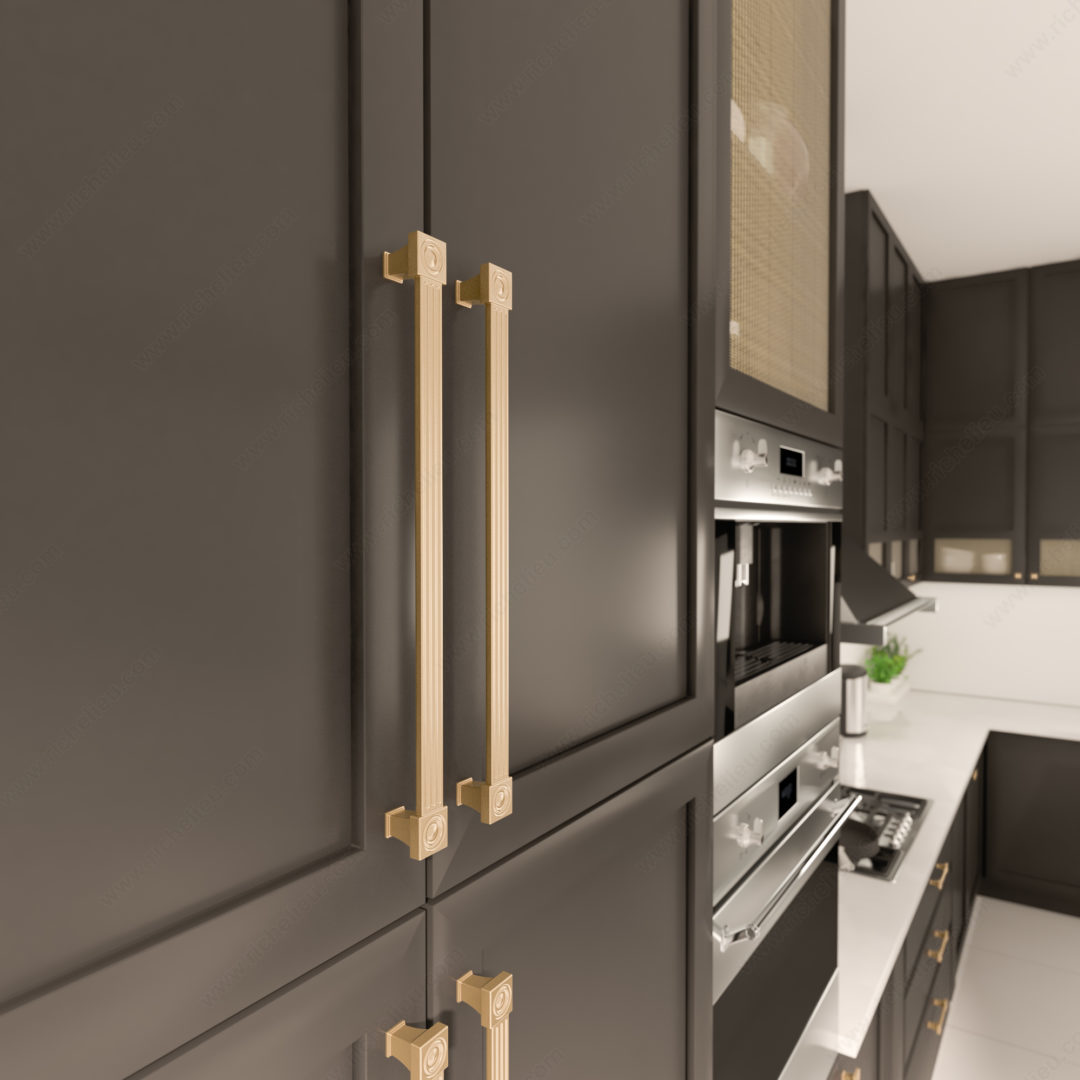 Richelieu BP8822320CHBRZ Transitional Metal Pull - 8822 embodies a sophisticated blend of modernity and classic design, inspired by the elegance of art deco and Greek architecture. This transitional pull features a stunning champagne bronze finish that adds a touch of warmth and sophistication to any cabinetry or furniture. With an overall length of 13 1/2 inches and a center-to-center measurement of 12 5/8 inches, it is perfectly sized to enhance both functionality and aesthetics in your space. Crafted from durable zamak, this pull not only offers a refined look but also ensures long-lasting performance. Its unique projection of 29/32 inches and width of 23/32 inches provide a comfortable grip, making it practical for everyday use. The included 8/32 inch screws simplify the installation process, allowing you to update your cabinets quickly and effortlessly. Part of the new collection, the BP8822320CHBRZ is designed to complement various styles, making it an ideal choice for building professionals and discerning homeowners alike. Elevate your interiors with this exquisite pull that seamlessly merges historical inspiration with contemporary design, enhancing the beauty of your living spaces.