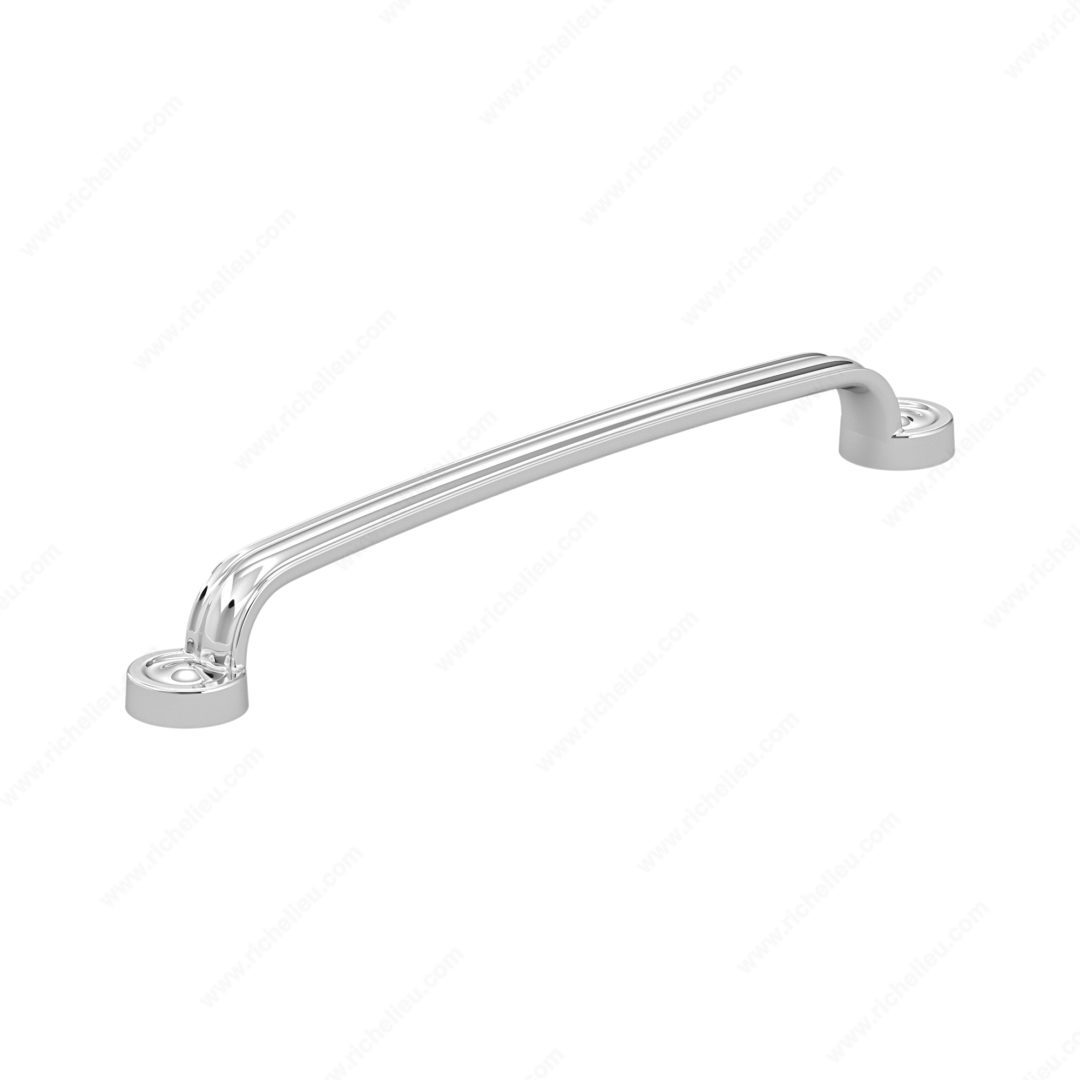 Richelieu BP8855192140 Traditional Metal Pull - 8855 showcases pronounced contours and rounded feet, making it a stunning addition to traditional furniture and cabinetry. Crafted from durable Zamak, this pull combines both functionality and aesthetic appeal. The chrome finish adds a touch of elegance, enhancing the overall look of any space. With an overall length of 9 7/32 inches and a center-to-center measurement of 7 9/16 inches, this pull is designed to fit seamlessly into various cabinetry styles. The projection of 1 7/32 inches provides a comfortable grip, ensuring ease of use. Its width measures 31/32 inches, allowing for a bold yet refined appearance. As part of Richelieu's New Collection, this traditional pull is available in a sophisticated gray and chrome color scheme, making it versatile for diverse interior designs. Each pull is packaged in a bag and includes 8/32 inch screws for easy installation, streamlining your project. Ideal for builders, designers, and homeowners seeking to elevate their cabinetry, the Richelieu BP8855192140 Traditional Metal Pull is a perfect choice for enhancing both form and function in any traditional setting.
