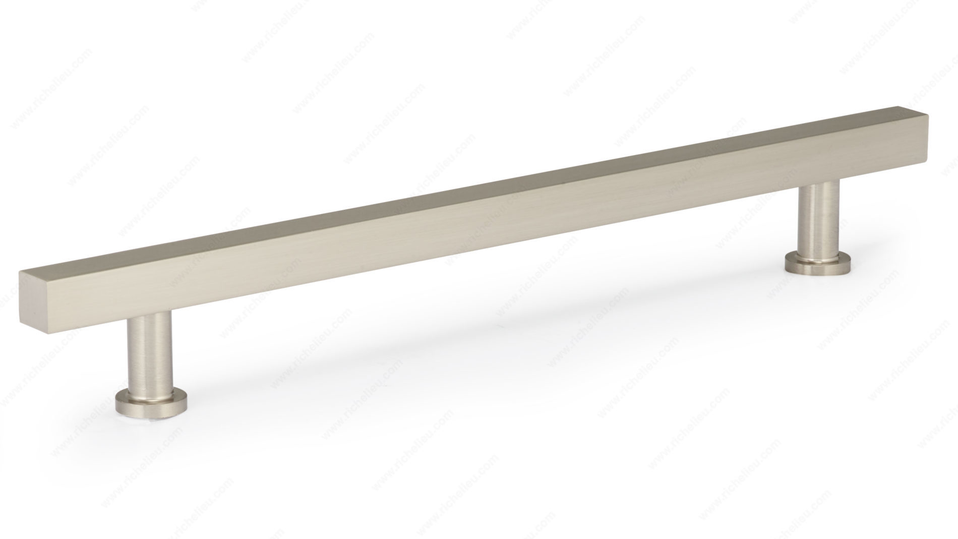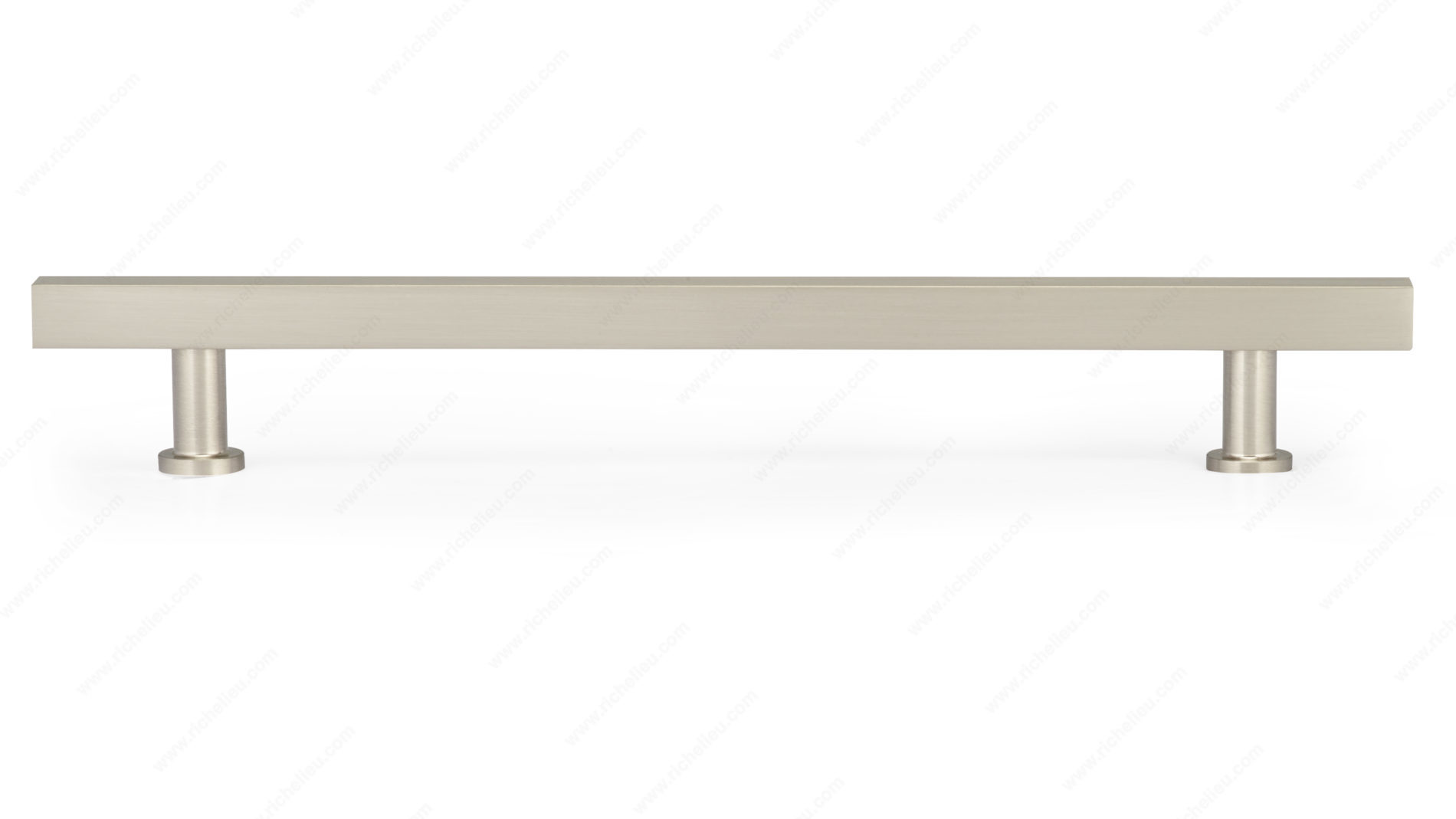 Richelieu BP8864192195 Modern Metal Pull - 8864 seamlessly blends contemporary design with functional elegance, making it an ideal choice for modern furniture and cabinetry. This pull features a striking square bar design complemented by cylindrical posts and round rosettes, providing a unique visual contrast that enhances any interior. Measuring 9 29/32 inches in overall length, with a center-to-center measurement of 7 9/16 inches, this pull is perfect for a wide range of applications. Crafted from durable aluminum and finished in brushed nickel, it offers not only style but also long-lasting performance. The gray and chrome color combination adds a sophisticated touch, making it suitable for various design themes. With a projection of 1 3/8 inches and a width of 5/8 inch, the BP8864192195 is designed for comfortable grip and easy handling. Each pull comes with 8/32 inch screws included for convenient installation, ensuring a hassle-free upgrade to your space. Part of the complete 8864 collection, it allows for cohesive styling across your cabinetry. Elevate your design with the modern flair of Richelieu's BP8864192195, a perfect blend of functionality and aesthetic appeal.