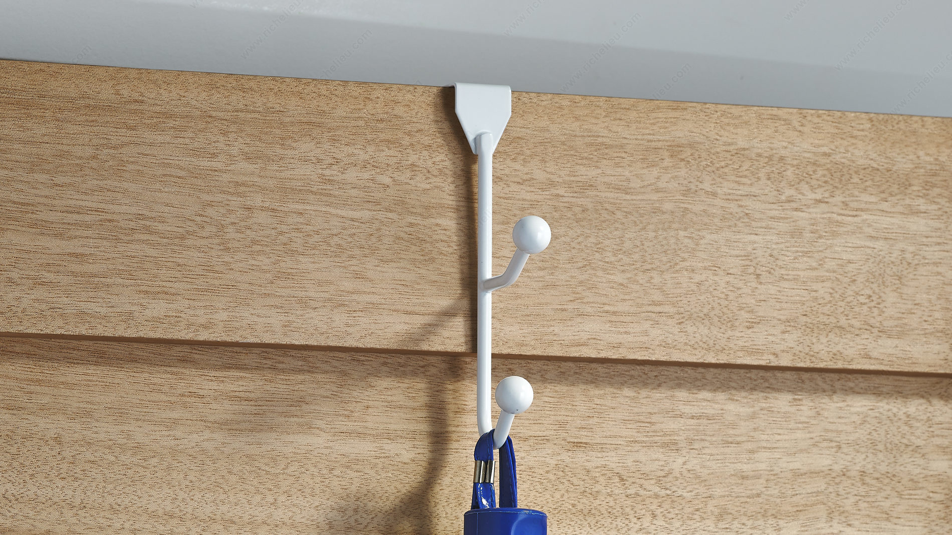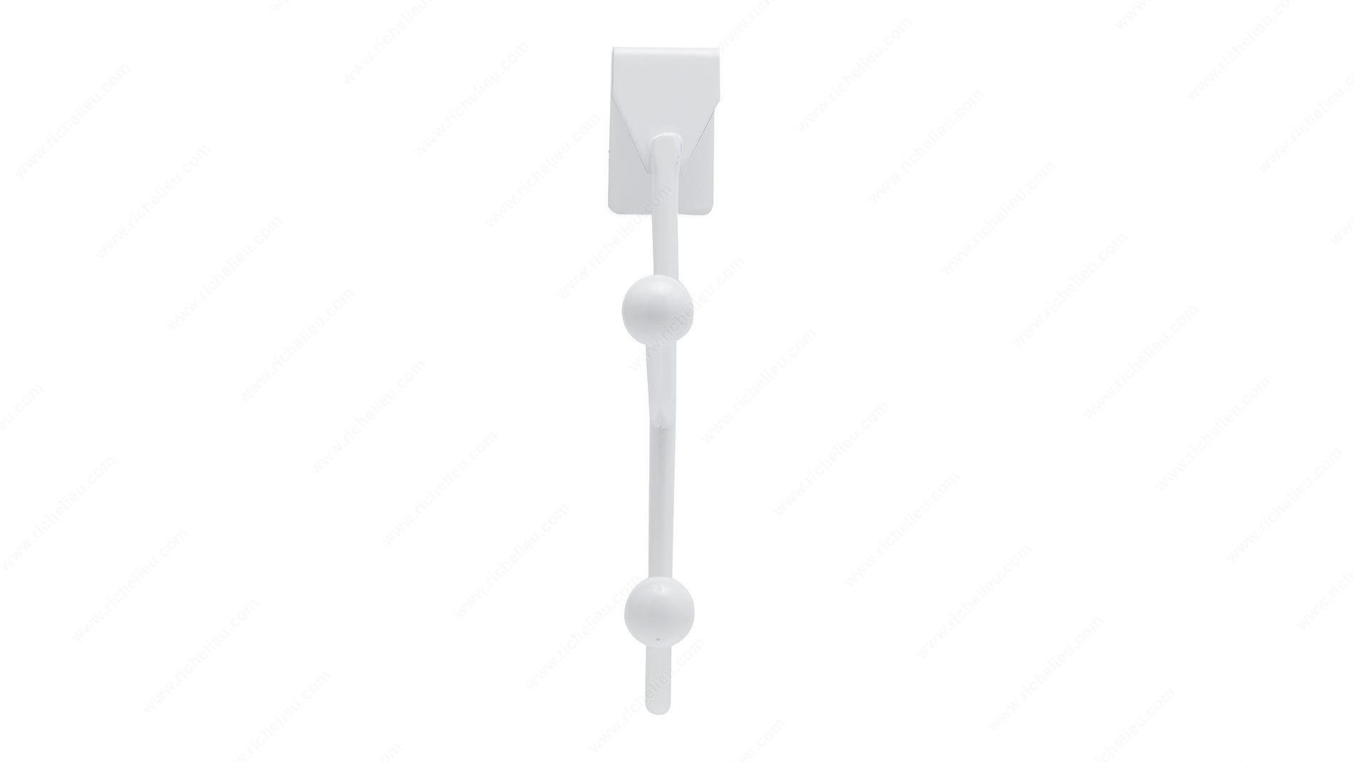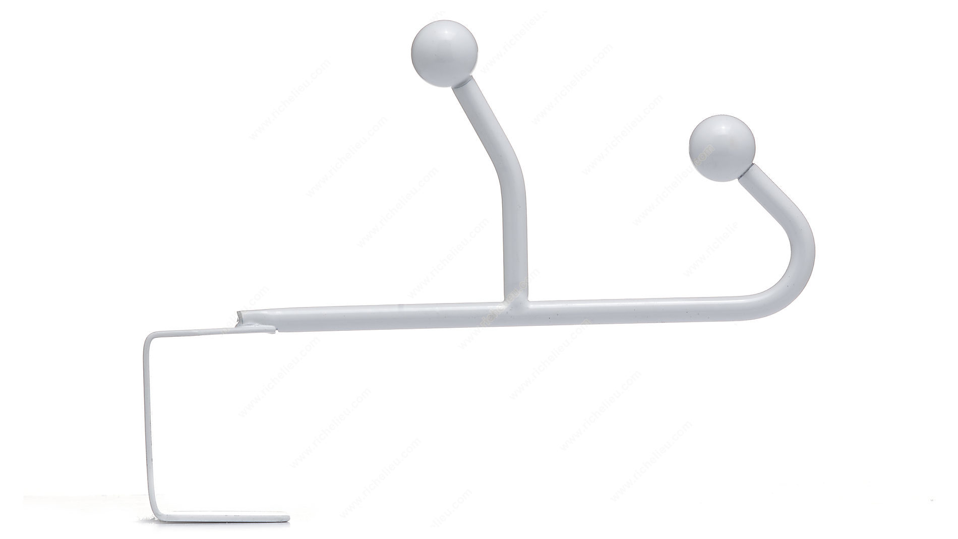 Richelieu BP8980130 Utility Over-The-Door Hook- 998 offers a practical and stylish solution for maximizing your storage space. Designed to fit standard interior doors, this utility hook features a dual arm design that effectively doubles your storage potential. Measuring 6 7/32 inches in height, 2 5/8 inches in projection, and 1 inch in width, it seamlessly integrates into any room without taking up valuable space. The hook is finished in a clean, contemporary white that complements a variety of décor styles, making it an ideal choice for bedrooms, bathrooms, mudrooms, or closets. With a robust load capacity of 22 lbs, this metal construction ensures durability and reliability, allowing you to hang coats, bags, or other items with confidence. One of the standout features of the Richelieu Utility Over-The-Door Hook is its no-screw installation, providing an effortless setup without the need for additional hardware. This convenience enhances its appeal for both building professionals and homeowners looking to simplify their organizing schemes. Elevate your space with this functional yet elegant storage solution that meets your everyday needs while maintaining an uncluttered aesthetic.