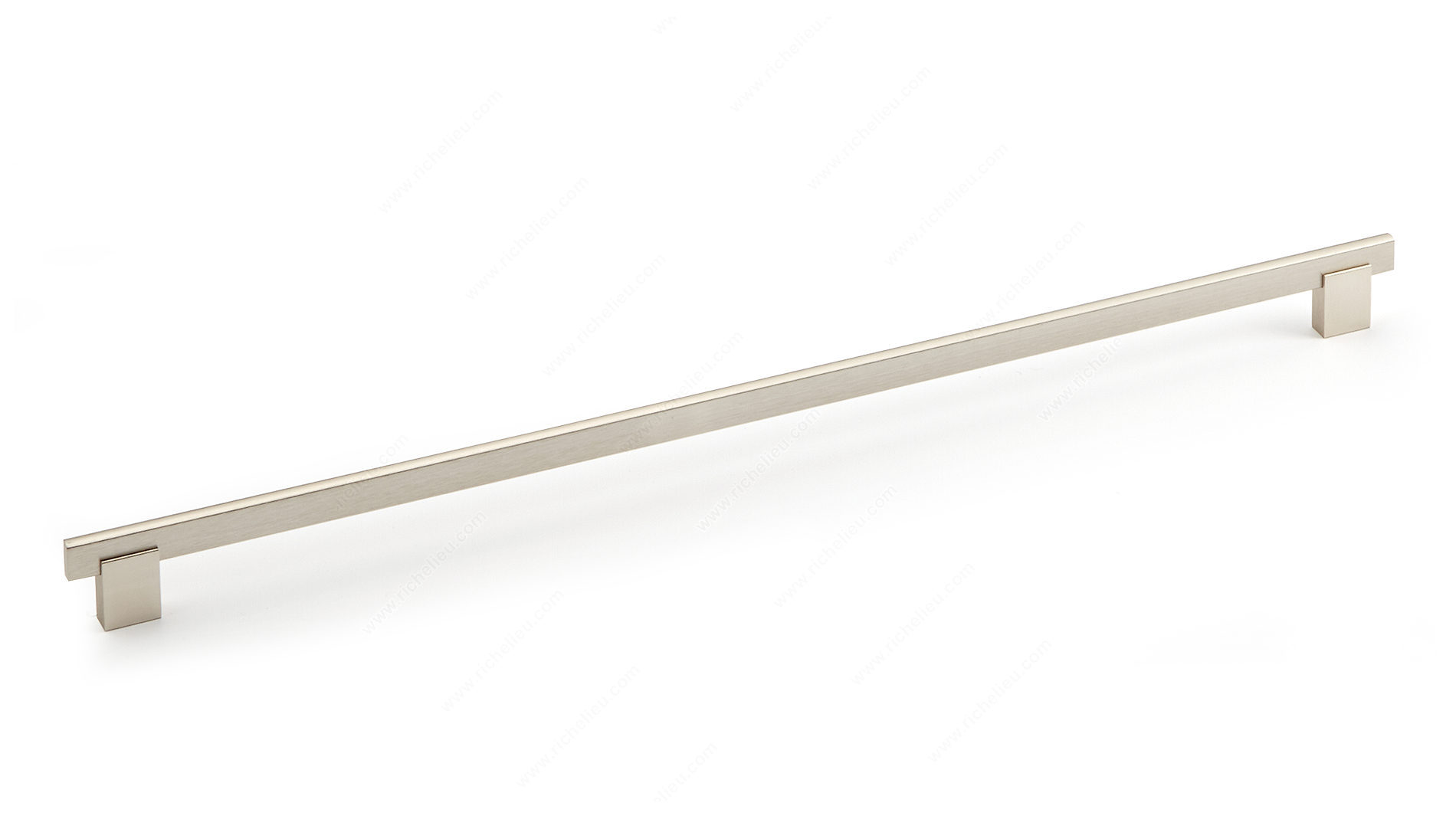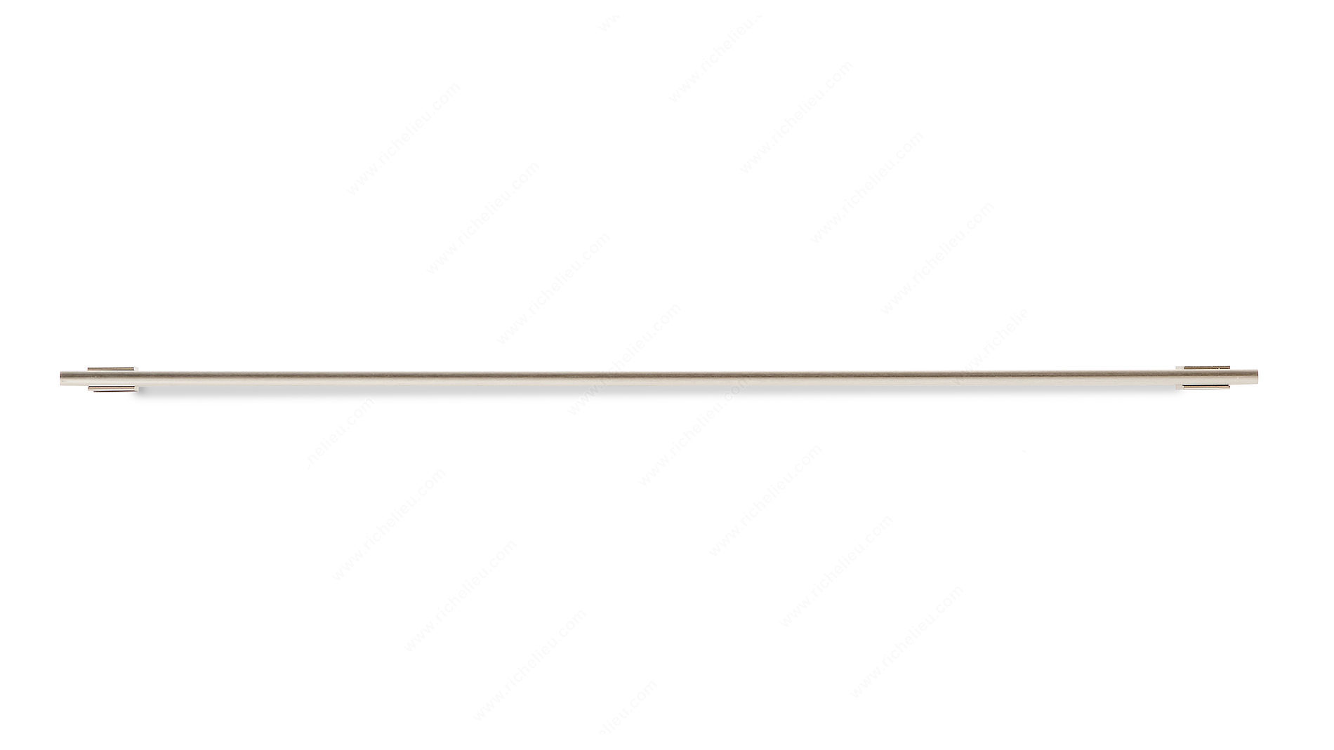 Richelieu BP905480195 Modern Metal and Aluminum Pull - 905 offers a sophisticated design that elevates any contemporary space. Crafted with clean lines, this sleek rectangular pull is made from durable aluminum and Zamak, ensuring both longevity and style. The brushed nickel finish provides a refined touch, complementing the gray and chrome accents, making it an ideal choice for modern cabinetry or furniture. With an overall length of 20 1/8 inches and a center-to-center measurement of 18 7/8 inches, this pull is perfectly sized for a variety of applications. Its slim profile, with a projection of just 1 3/8 inches and a width of 7/16 inches, allows for comfortable grip and ease of use, while maintaining a low visual impact. Installation is straightforward, as the pull comes with included 8/32 inch screws. Choosing the BP905480195 means embracing a modern aesthetic without sacrificing functionality. Whether you're outfitting a kitchen, bathroom, or any other space, this pull enhances the overall design, making it a must-have for building professionals and discerning homeowners alike. Ship via UPS for convenience, ensuring your project stays on schedule. Transform your interiors with Richelieu's modern pull that marries form and function seamlessly.