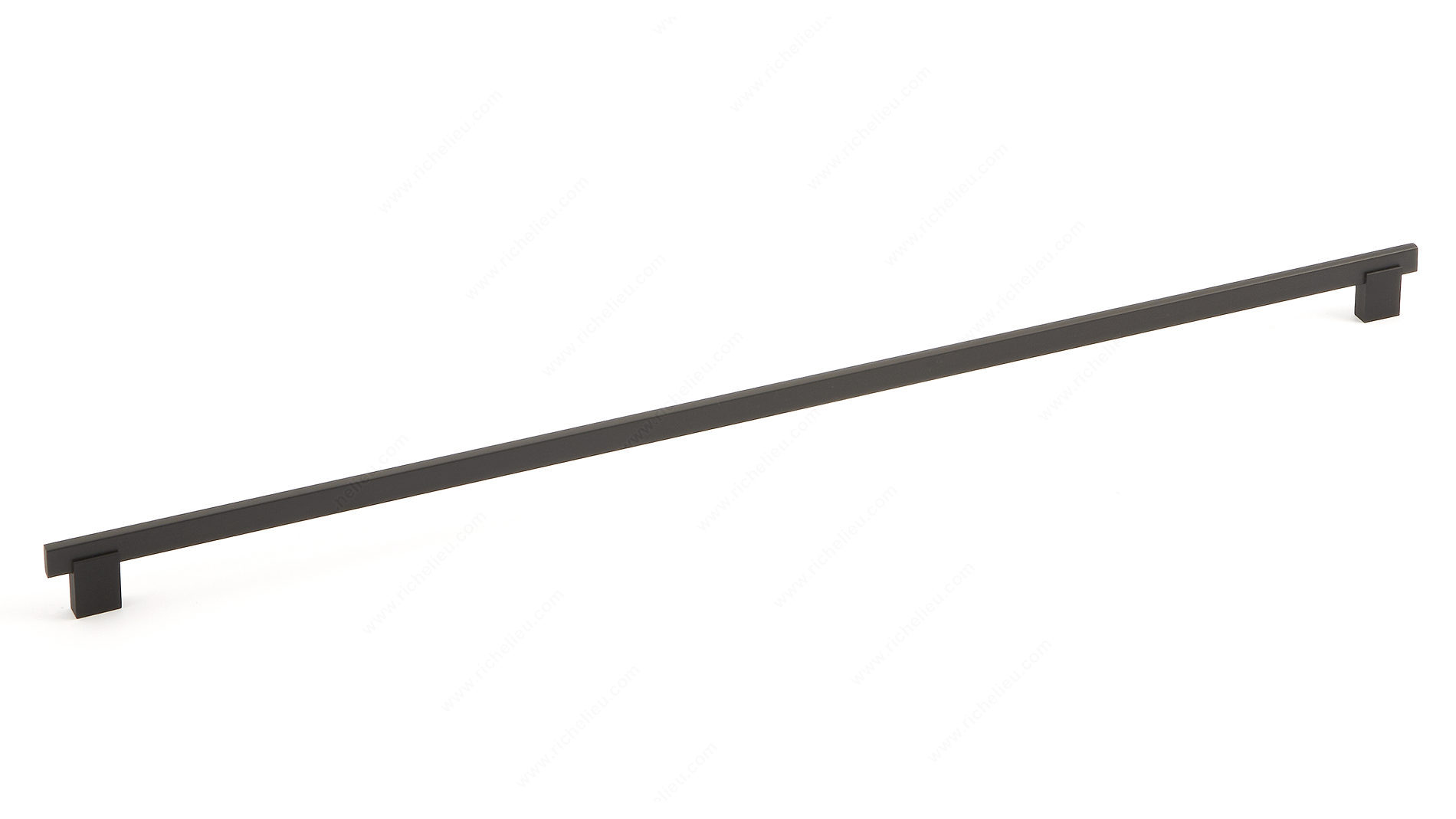 Richelieu BP905640900 Modern Metal and Aluminum Pull - 905 showcases a sophisticated design that blends seamlessly into contemporary spaces. This sleek rectangular pull is crafted from high-quality aluminum and Zamak, ensuring durability while maintaining an elegant aesthetic. With a matte black finish, this pull not only enhances the modern theme of any room but also provides a timeless appeal that complements various decors. Measuring 26 ½ inches in overall length and featuring a center-to-center distance of 25 ¼ inches, this extra-long pull is perfect for larger cabinets or drawers. The pull's overall projection of 1 3/8 inches and a width of 7/16 inches make it easy to grip, providing both functionality and style. Each pull comes with included 8/32 inch screws for straightforward installation, allowing you to upgrade your space with ease. Whether you are renovating a kitchen, bathroom, or any other area requiring stylish hardware, the BP905640900 pull is an ideal choice. Its clean lines and modern silhouette will elevate the look of your furnishings, making it a must-have for both building professionals and discerning homeowners. Embrace the elegance of minimalism with this stunning hardware solution from Richelieu.