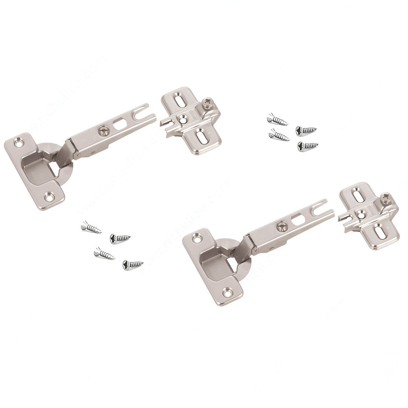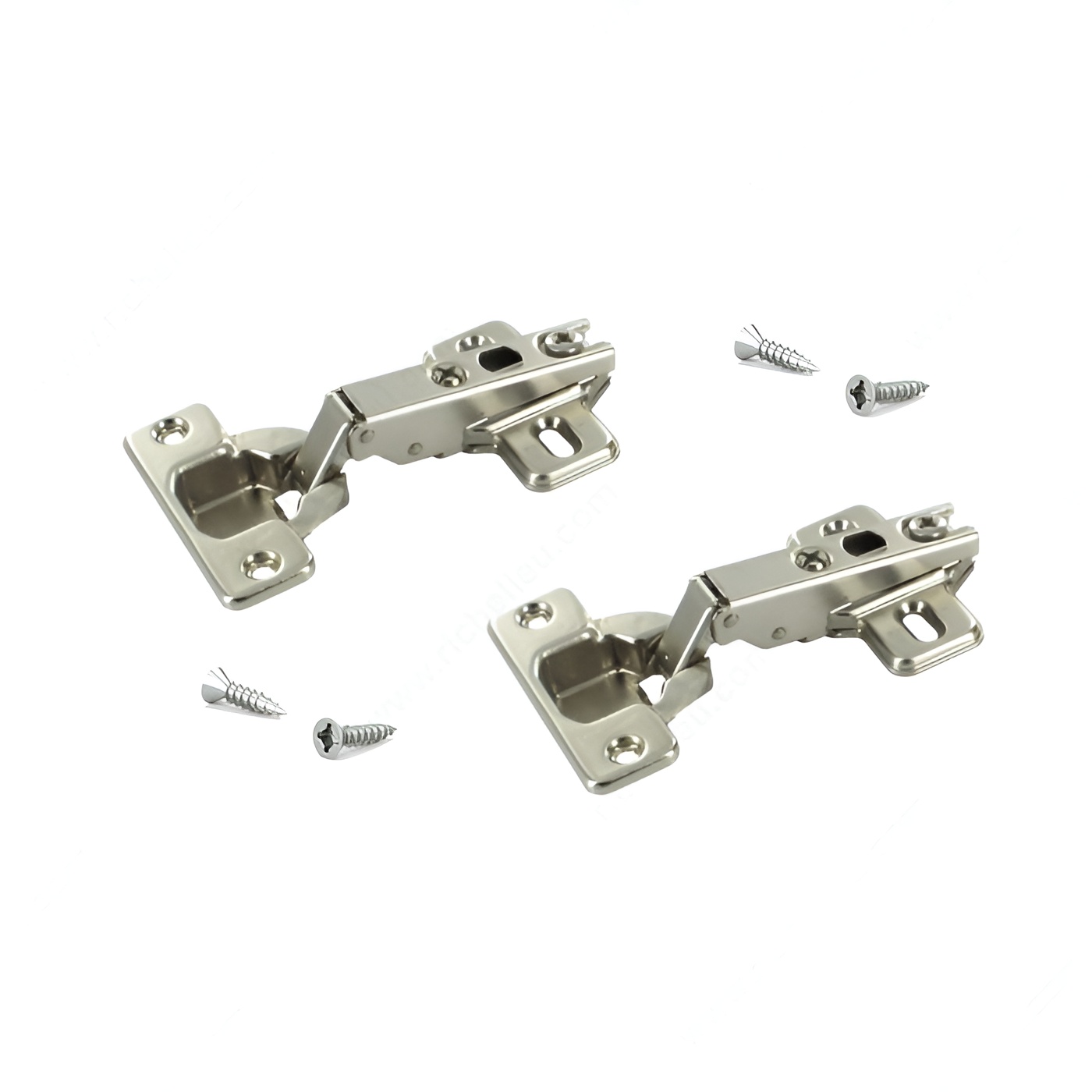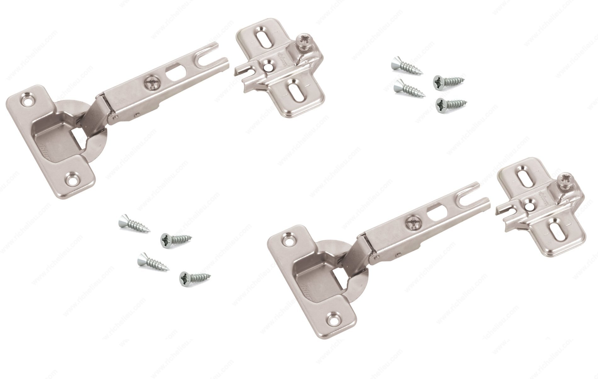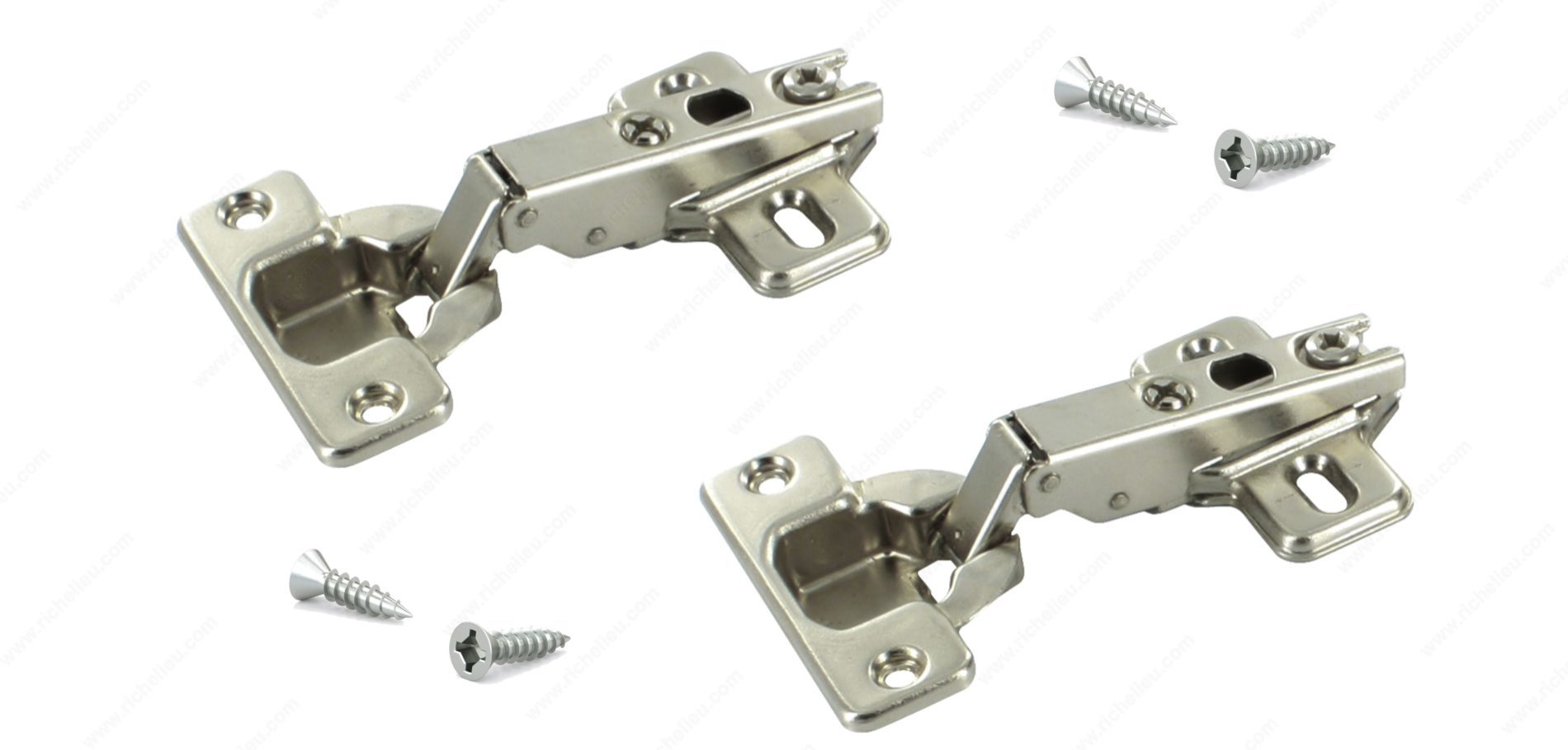 Richelieu BP91M25521180 MODUL Hinge - 100 offers a reliable solution for furniture manufacturers looking for quality and ease of use. Renowned for its sliding and plug-in technology, the MODUL hinge has established itself as a preferred choice over the years. Designed for frameless cabinets, this hinge features a short glide path that simplifies the mounting of doors, ensuring an efficient assembly process. The hinge provides three-dimensional adjustment capabilities, allowing for precise alignment and a balanced play pattern, making installation straightforward. Additionally, the integrated unhooking safety device ensures that doors remain securely in place during operation, enhancing safety and functionality. Crafted from durable steel, the hinge accommodates a minimum cabinet thickness of 5/8 inch and supports door thicknesses of the same measurement. With a hinge opening angle of +100°, it delivers excellent accessibility. Each pack contains two units along with the necessary screws for easy installation. Whether you are a professional builder or a knowledgeable homeowner, the Richelieu BP91M25521180 MODUL Hinge is a valuable addition to your hardware collection, combining practicality and quality to enhance your cabinetry projects.