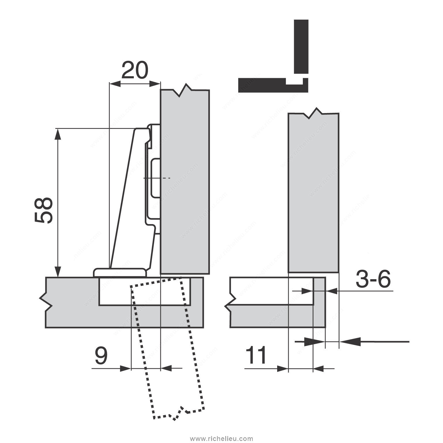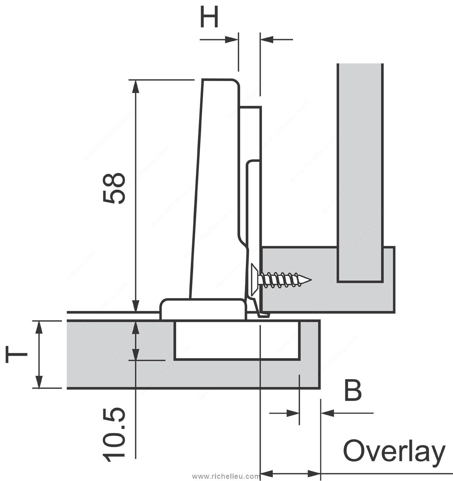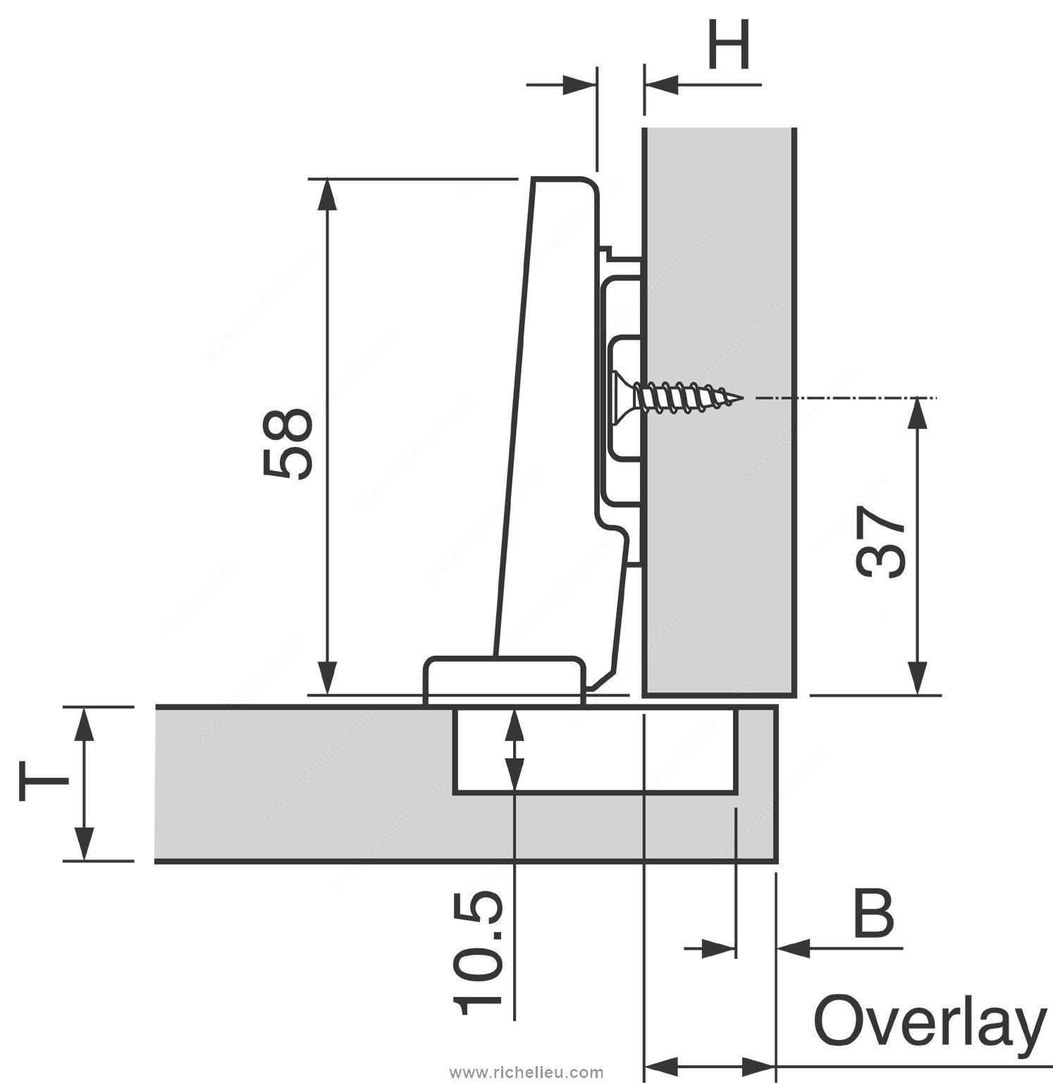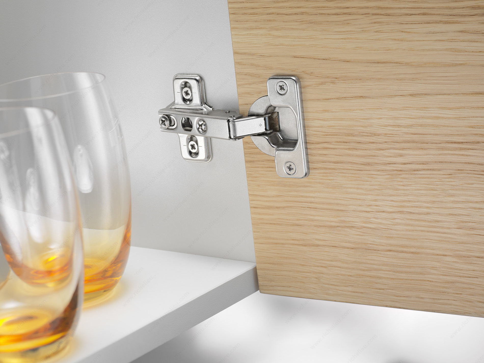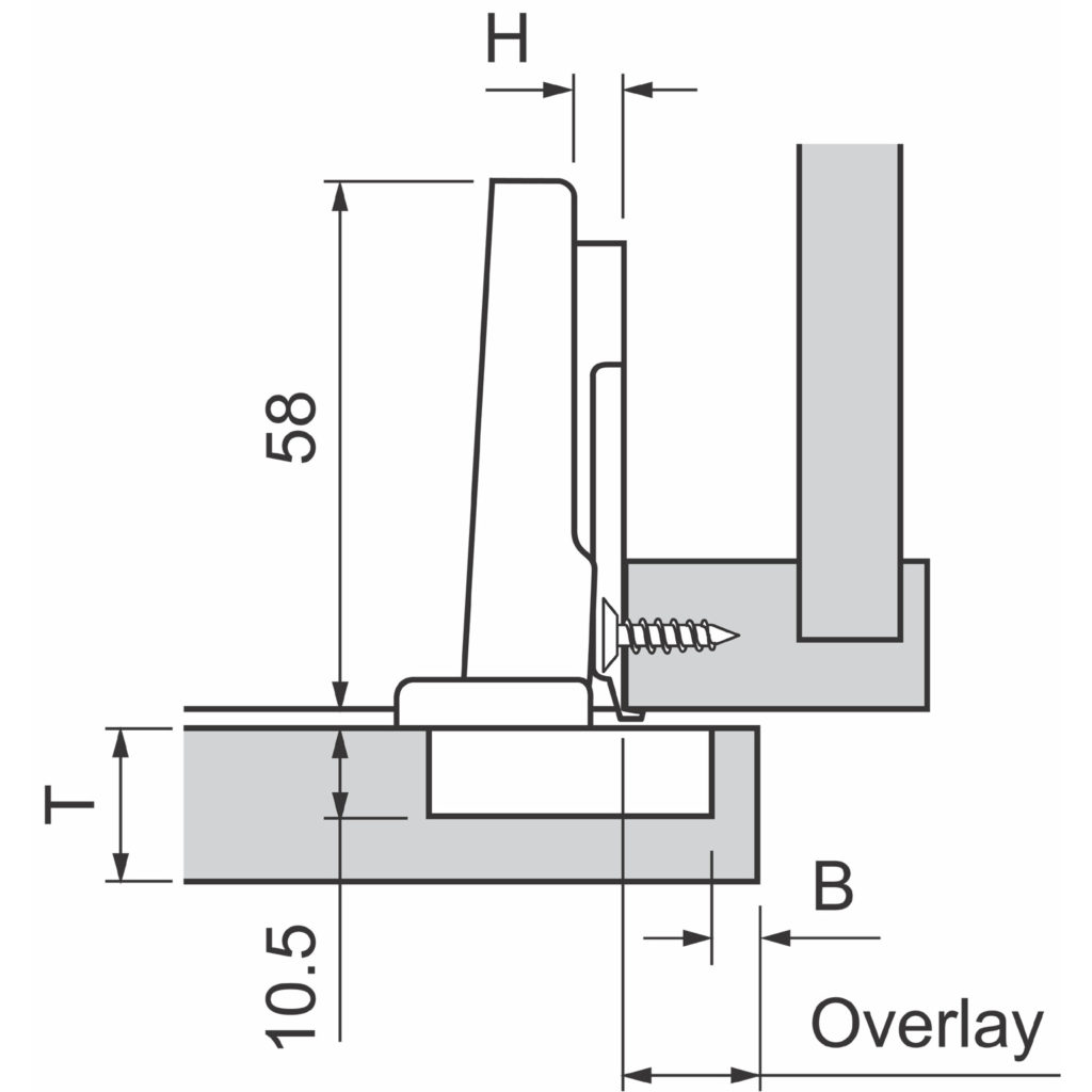 Richelieu BP91M25521180 MODUL Hinge - 100 offers a reliable solution for furniture manufacturers looking for quality and ease of use. Renowned for its sliding and plug-in technology, the MODUL hinge has established itself as a preferred choice over the years. Designed for frameless cabinets, this hinge features a short glide path that simplifies the mounting of doors, ensuring an efficient assembly process. The hinge provides three-dimensional adjustment capabilities, allowing for precise alignment and a balanced play pattern, making installation straightforward. Additionally, the integrated unhooking safety device ensures that doors remain securely in place during operation, enhancing safety and functionality. Crafted from durable steel, the hinge accommodates a minimum cabinet thickness of 5/8 inch and supports door thicknesses of the same measurement. With a hinge opening angle of +100°, it delivers excellent accessibility. Each pack contains two units along with the necessary screws for easy installation. Whether you are a professional builder or a knowledgeable homeowner, the Richelieu BP91M25521180 MODUL Hinge is a valuable addition to your hardware collection, combining practicality and quality to enhance your cabinetry projects.