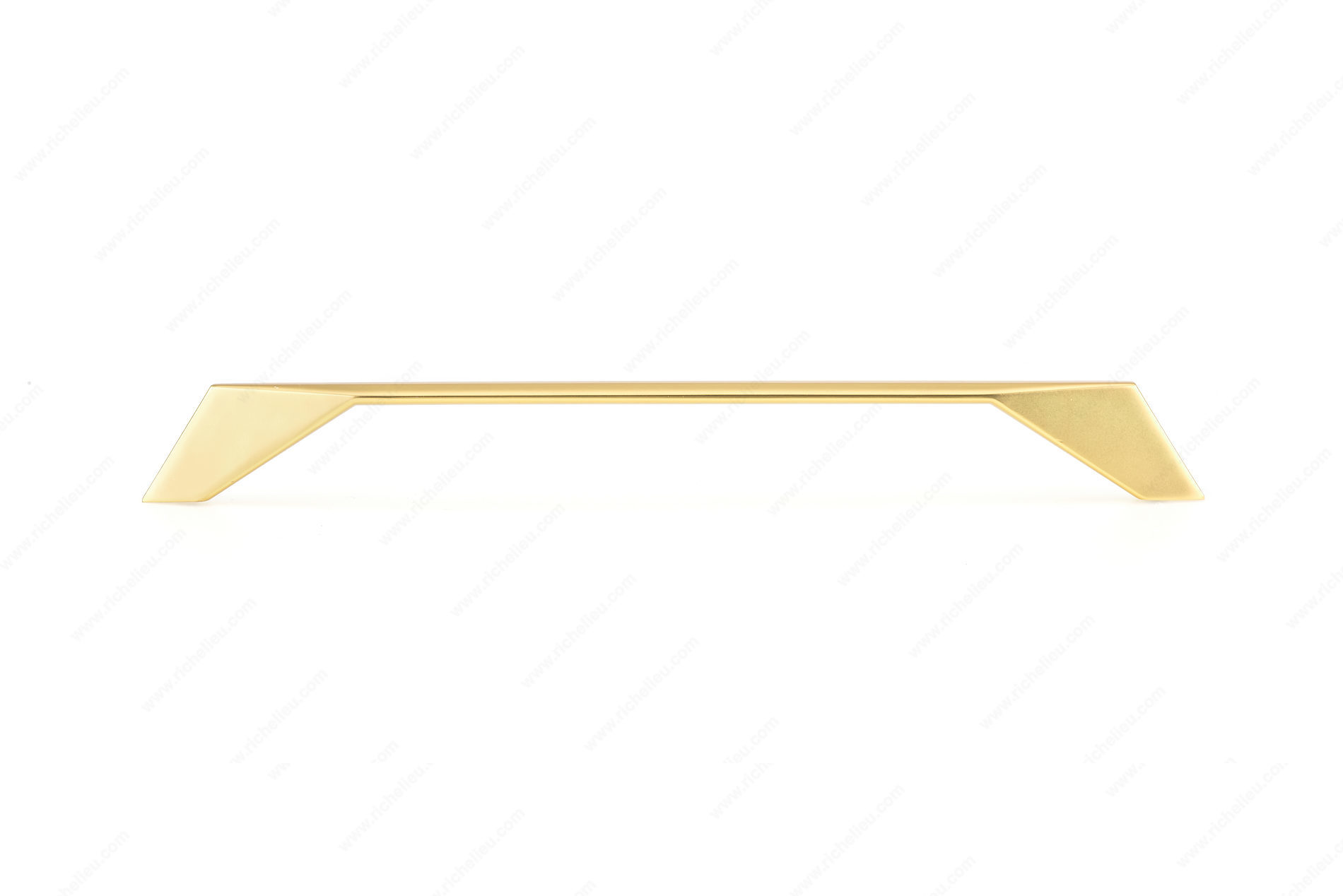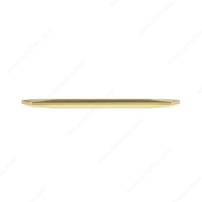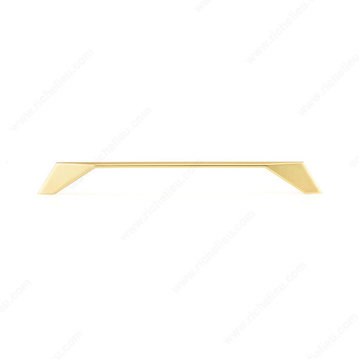 Richelieu BP9256224165 Modern Metal Pull - 9256 is a striking addition designed to elevate your modern furniture and cabinetry. This tapered pull features flared geometric posts, making it not just a functional element but also a statement piece that enhances the aesthetic of any room. With a center-to-center measurement of 8 13/16 inches, this pull is perfectly sized for a variety of cabinet doors and drawers. The brushed gold finish adds a touch of sophistication, while the yellow and brass color combination brings warmth and elegance to your decor. Constructed from durable zamak, this pull ensures longevity even in high-traffic areas. Measuring 9 11/16 inches in overall length, with a projection of 1 1/16 inches and a width of 19/32 inches, it provides a comfortable grip while maintaining sleek lines. Installation is straightforward with included 8/32 inch screws, allowing for quick updates to your hardware. Part of the comprehensive 9256 collection, this modern pull is versatile enough to complement any style. Whether you're upgrading your kitchen or refreshing your bathroom, the Richelieu BP9256224165 Modern Metal Pull is the perfect choice for discerning homeowners and professionals alike.