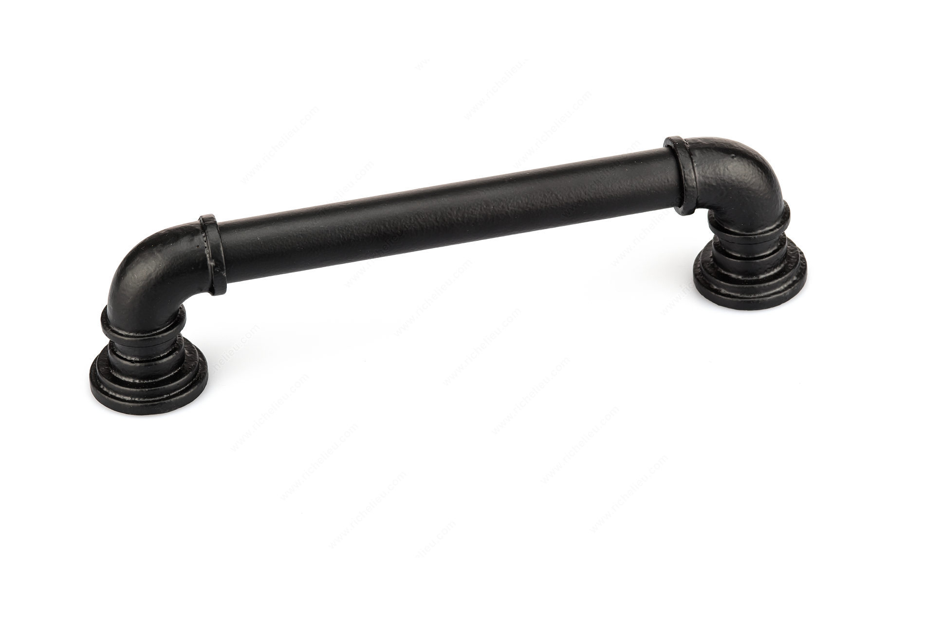 Richelieu BP9547224900 Eclectic Forged Iron Pull - 9547 is a striking addition to any space that embraces both steampunk aesthetics and rustic charm. Crafted from durable forged iron, this pull features a robust matte black finish that enhances its industrial appeal while ensuring longevity. The unique pipe-shaped design not only serves as a functional element but also acts as a statement piece in your interior or exterior décor. With an overall length of 10 1/2 inches and a center-to-center measurement of 8 13/16 inches, it provides ample grip for easy opening and closing of barn doors or cabinets. The dimensions are thoughtfully designed, with a diameter of 7/8 inch and a projection of 2 1/2 inches, making it a perfect fit for various applications. Included with the pull are M6 screws, ensuring a hassle-free installation process. The pull is part of the complete 9547 collection, allowing for cohesive design throughout your project. Whether you're outfitting a contemporary loft or a cozy rustic retreat, the Richelieu Eclectic Forged Iron Pull seamlessly blends functionality with style, making it an ideal choice for discerning builders and homeowners alike.