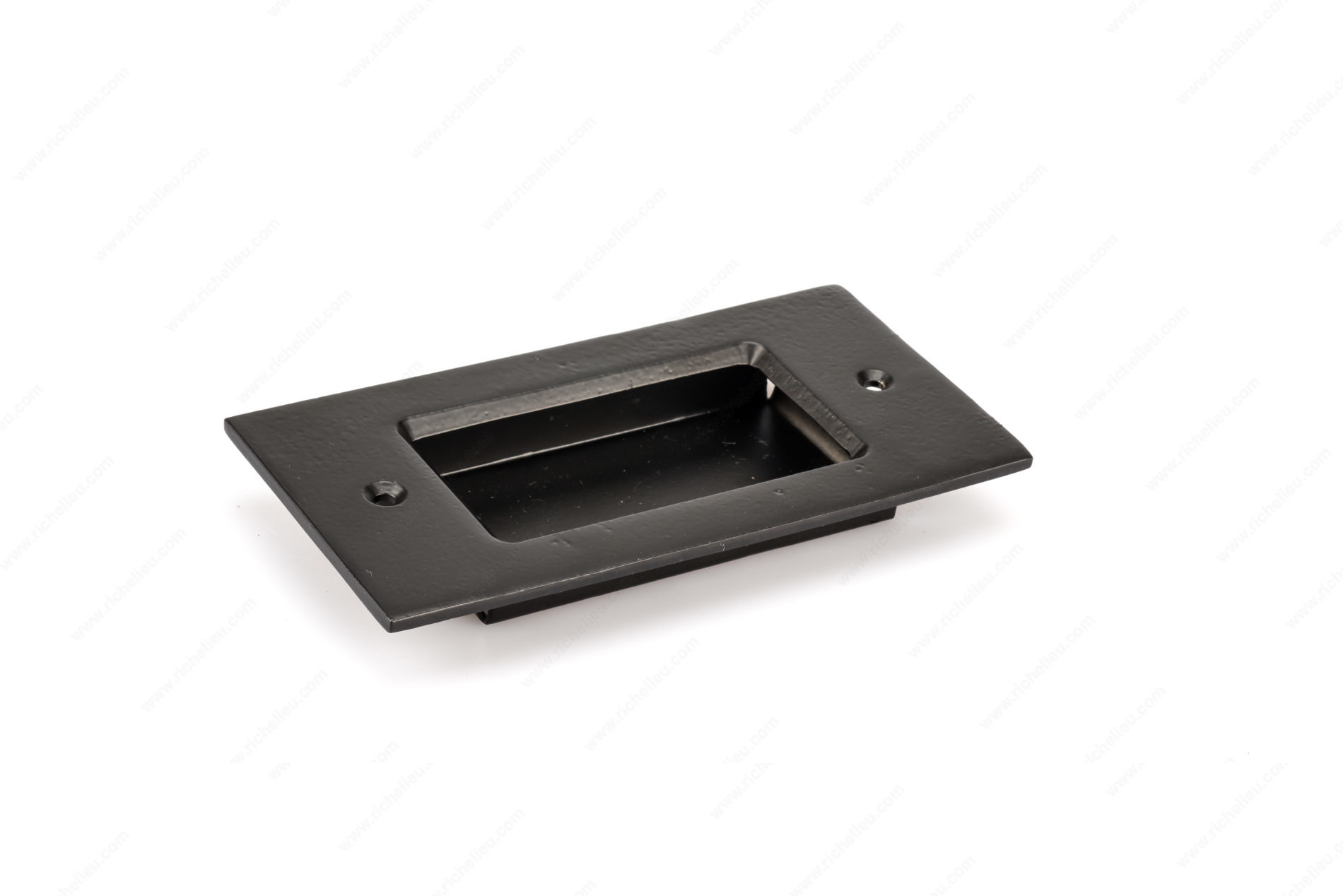 Richelieu BP95495900 Traditional Recessed Forged Iron Pull - 9549 offers a striking blend of rustic charm and functional design. Crafted from durable forged iron, this pull features a matte black finish that seamlessly complements a variety of home styles, from traditional to contemporary. With an overall length of 5 inches and a width of 2 15/32 inches, it is perfectly sized for easy grip and operation. Designed with a center-to-center measurement of 4 3/32 inches, this recessed pull is ideal for barn doors or cabinetry, providing a seamless integration into your furniture. Its milling depth of 1/2 inch ensures a snug fit, while a projection of just 1/8 inch maintains a sleek profile that avoids snagging. Included with the pull are wood screws for straightforward installation, making it a practical choice for both DIY enthusiasts and professional builders alike. Whether you're revamping your kitchen, upgrading a closet, or enhancing the aesthetics of your living space, the Richelieu BP95495900 pull is sure to create a dynamic look that leaves a lasting impression. Elevate your design with this statement piece that balances aesthetic appeal and robust functionality.