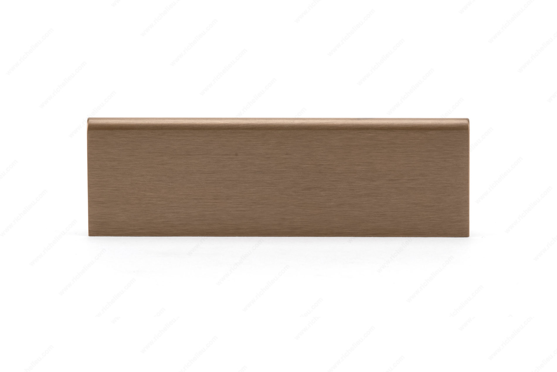 Richelieu BP9696128CHBRZ Modern Aluminum Edge Pull - 9696 brings a sleek and contemporary touch to your kitchen or bathroom. Crafted from durable aluminum and finished in Brushed Champagne Bronze, this edge pull is designed to elevate minimalist and urban aesthetics. Its dimensions include an overall length of 5 13/16 inches and a projection of 1 13/16 inches, making it both functional and appealing. The edge pull features two center-to-center measurements: 7 9/16 inches (192 mm) and an expansive 16 3/8 inches (416 mm), allowing for versatile installation options that suit various cabinetry styles. The pull's modern design not only enhances the visual appeal of spaces but also offers a comfortable grip, ensuring ease of use. Included with the pull is a wood screw for straightforward installation, making it a practical choice for both professionals and DIY enthusiasts. The Richelieu BP9696128CHBRZ is part of the Modern collection and is available for convenient shipping via UPS. Upgrade your cabinetry with this striking edge pull that combines style, functionality, and quality in one elegant package.