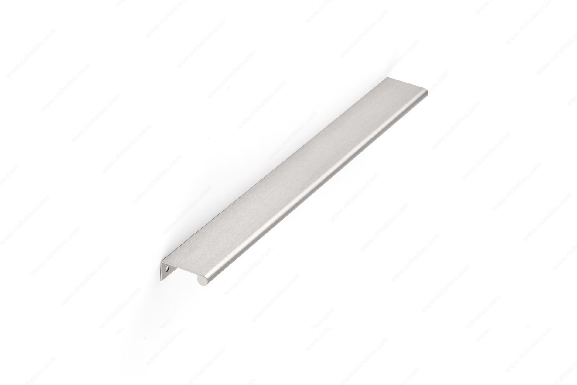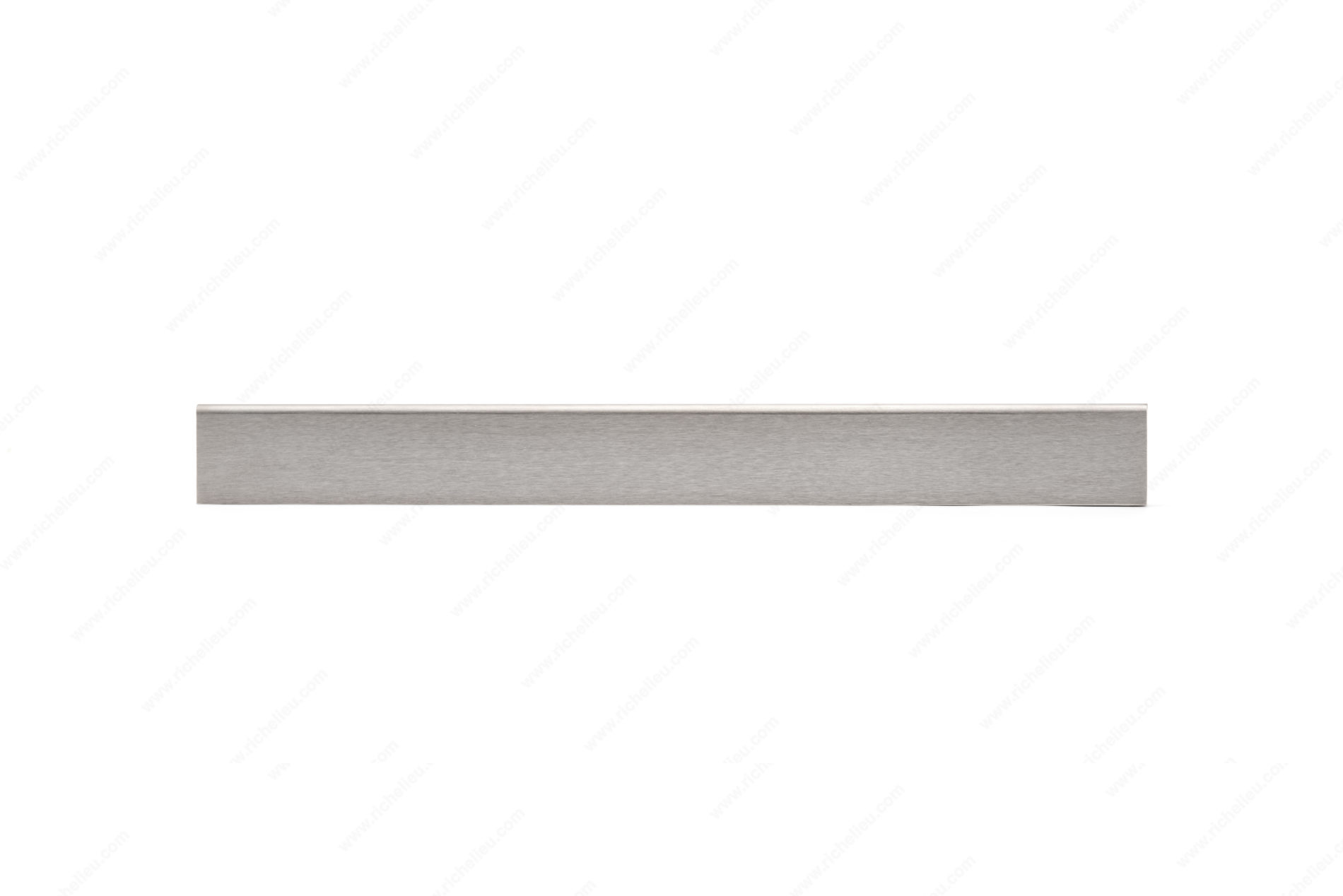 Richelieu BP9696416170 Modern Aluminum Edge Pull - 9696 seamlessly blends minimalist design with urban sophistication, making it an ideal choice for enhancing the aesthetics of your kitchen or bathroom. Crafted from durable aluminum, this edge pull features a sleek stainless steel finish in a striking gray and chrome color scheme, adding a contemporary touch to any cabinetry. Measuring 16 3/8 inches (416 mm) in center-to-center dimensions, the pull accommodates two configurations: 7 9/16 inches (192 mm) and 16 3/8 inches (416 mm), providing versatility for various installations. The overall dimensions of 17 1/8 inches in length, 1 13/16 inches in projection, and 25/32 inches in width ensure a substantial yet unobtrusive presence on your drawers and cabinets. For optimal stability and security, it is essential to utilize all anchor points during installation. Each unit comes with wood screws for easy assembly, making the installation process straightforward and efficient. Part of the complete 9696 collection, the Richelieu BP9696416170 edge pull is perfect for professionals and homeowners seeking a modern, stylish upgrade to their spaces. Transform your interiors with this elegant and functional hardware solution.