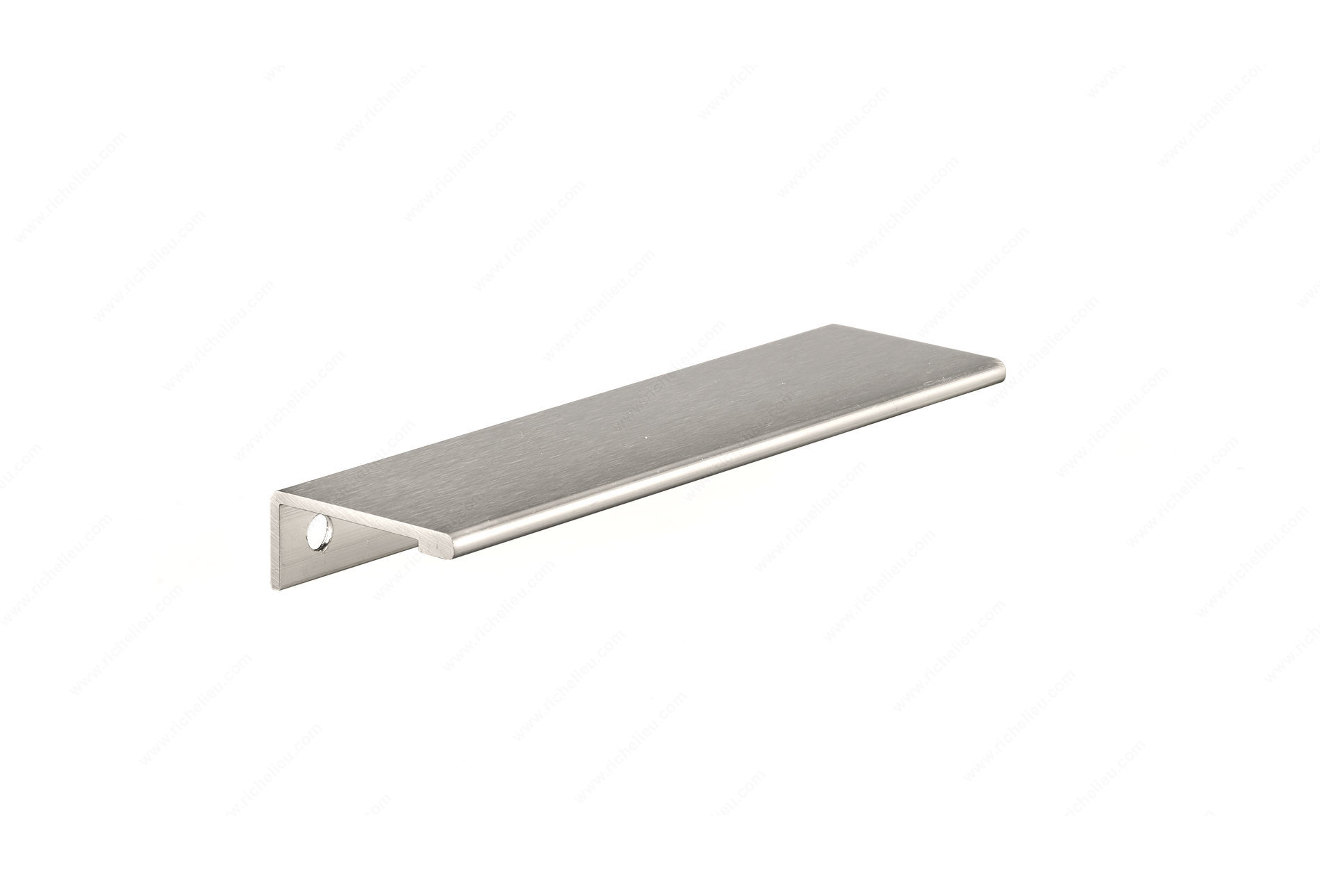 Richelieu BP9898128170 Modern Aluminum Edge Pull - 9898 offers a sleek and contemporary solution for your cabinetry needs, perfect for kitchens and bathrooms alike. Designed for those who appreciate an urban aesthetic, this edge pull combines functionality with a minimalist design. The pull measures 5 13/16 inches in length and features a stylish stainless steel finish that complements its gray and chrome color scheme, ensuring it integrates seamlessly with modern interiors. This product includes two center-to-center options: a convenient 192 mm (7 9/16 inches) and a larger 416 mm (16 3/8 inches), allowing for flexibility in installation based on your specific cabinetry layout. The 23/32 inch width and 1 21/32 inch projection provide a comfortable grip while maintaining a streamlined appearance. Crafted from durable aluminum, the edge pull is lightweight yet sturdy, making it an ideal choice for any functional space. Installation is made easy with included wood screws, ensuring a reliable attachment to your cabinetry. Packaged in a practical bag, the Richelieu BP9898128170 is not only a stylish addition but also a practical choice for both building professionals and discerning homeowners seeking quality and elegance in their home design.