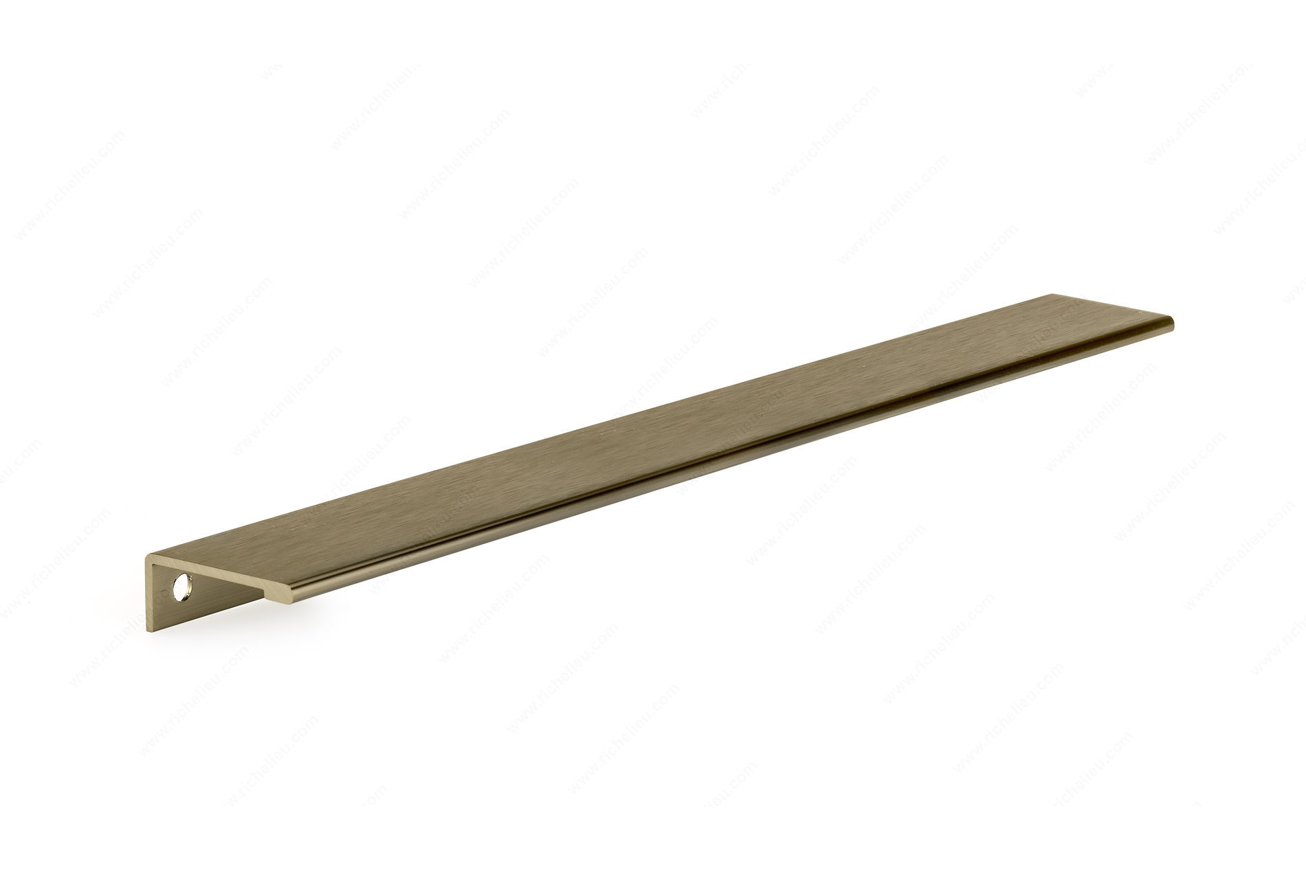 Richelieu BP9898416CHBRZ Modern Aluminum Edge Pull is the perfect choice for those seeking a sleek, contemporary touch for their kitchen or bathroom. Designed to elevate your space, this edge pull features a brushed champagne bronze finish that adds warmth and sophistication, seamlessly blending with various decor styles. Measuring 17 1/8 inches in overall length with a center-to-center measurement of 16 3/8 inches, this pull is not only visually appealing but also practical. It offers two center-to-center options: 192 mm (7 9/16 inches) and 416 mm (16 3/8 inches), providing versatility for different installation needs. Crafted from durable aluminum, this edge pull ensures longevity while maintaining a modern aesthetic. With a projection of 1 21/32 inches and a width of 23/32 inches, it offers a comfortable grip, making it user-friendly for everyday use. The pull comes packaged in a convenient bag and includes wood screws for easy installation. Whether you're updating your cabinetry or embarking on a new project, the Richelieu BP9898416CHBRZ Modern Aluminum Edge Pull is an ideal solution that combines function and style, creating a streamlined urban look that will impress.