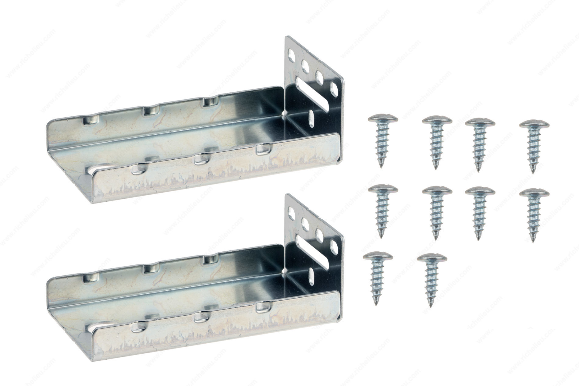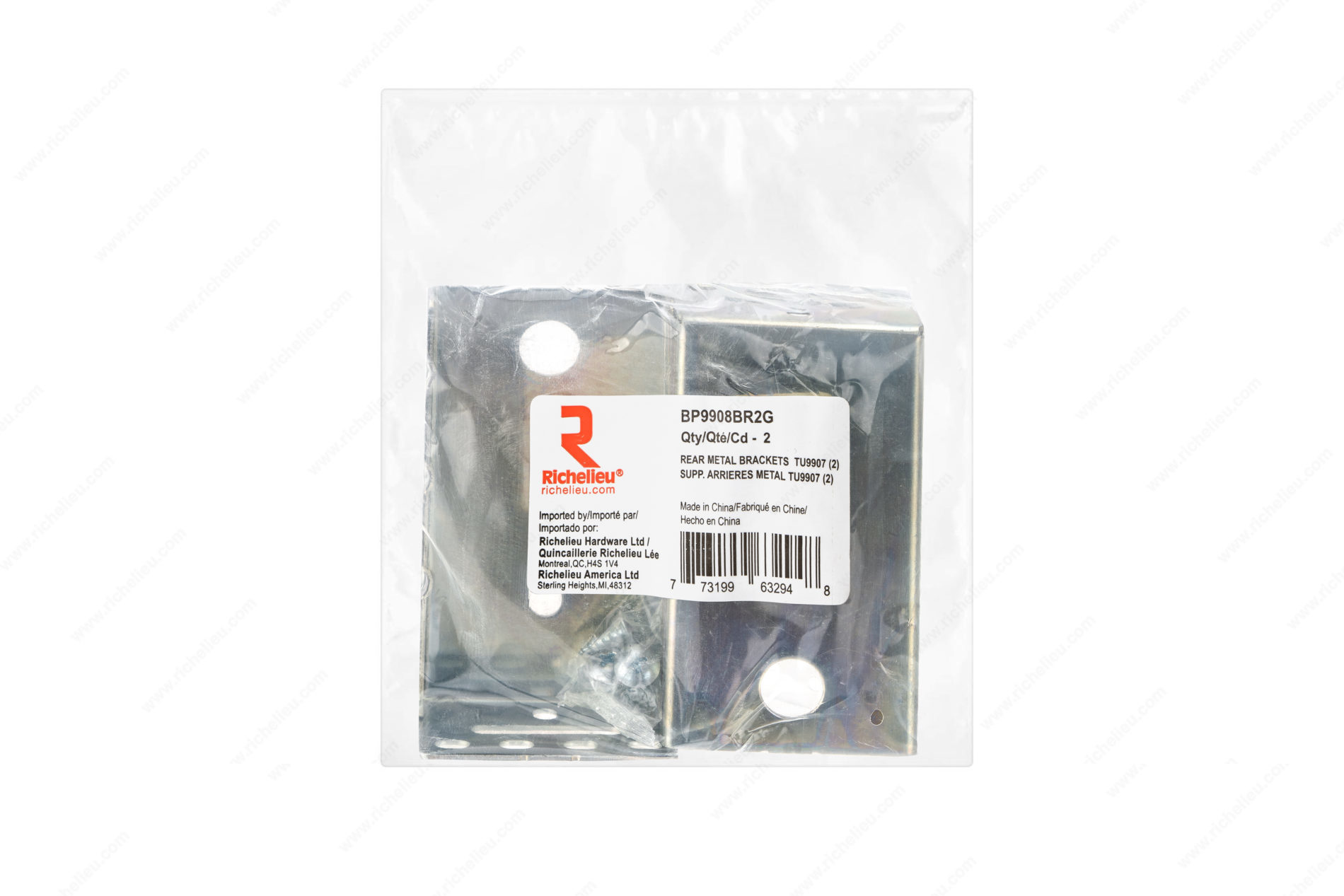 Richelieu BP9908BR2G Rear Support for TU9907 Slides offers a straightforward solution for mounting ball bearing slides to framed cabinets, streamlining your installation process. Designed for ease of use, this rear support bracket can be easily screwed onto the back of your cabinet at the desired height. Once installed, simply insert the cabinet member into the support and adjust to your preferred depth. This efficiency not only saves valuable time but also minimizes the hassle often associated with cabinet assembly. Constructed from durable steel and finished in zinc, the BP9908BR2G ensures long-lasting performance and reliability. With dimensions of 1 1/4 inches in height, 1 29/32 inches in width, and a depth of 3 1/2 inches, this rear support is specifically tailored for framed cabinet models. Each package includes the necessary screws for installation, making it a convenient choice for professionals and savvy homeowners alike. Shipping via UPS, the Richelieu BP9908BR2G is an essential addition to your cabinetry toolkit, designed to enhance both functionality and efficiency in your woodworking projects. Trust in Richelieu's commitment to quality and innovation for your next cabinet installation.