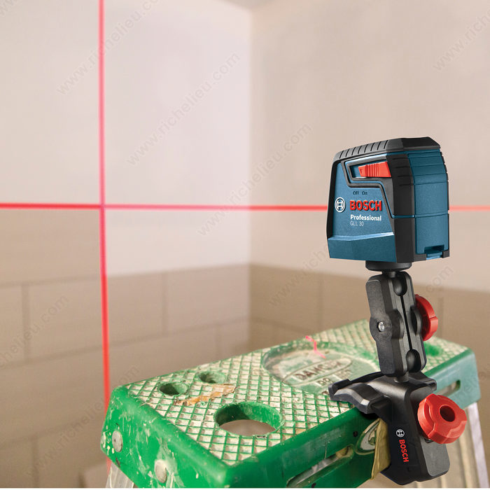 Richelieu BSGLL30 Self-Leveling Cross-Line Laser GLL30 offers exceptional precision for a variety of leveling and alignment applications. With the ability to project two clear laser lines, this tool surpasses the capabilities of standard line lasers, making it indispensable for both professionals and discerning homeowners. The GLL30 features a Smart Pendulum System, which not only self-levels but also alerts users to any out-of-level conditions, ensuring accuracy in every layout. The laser operates with a simple one-switch mechanism for quick adjustments, and its visibility extends up to 30 feet, providing ample range for a wide array of tasks. Designed for versatility, the included MM 2 Flexible Mounting Device allows microfine height adjustments, making it possible to clamp the laser on surfaces ranging from ½ inch to 2¼ inches in thickness. With a lightweight plastic composite construction, the GLL30 weighs only 0.5 pounds, making it easy to transport. Its robust accuracy of ±5/16 inch at 30 feet and a self-leveling capability of up to 4 degrees further enhance its reliability. Operating effectively in temperatures from 41°F to 104°F, this laser is an ideal companion for any job site.