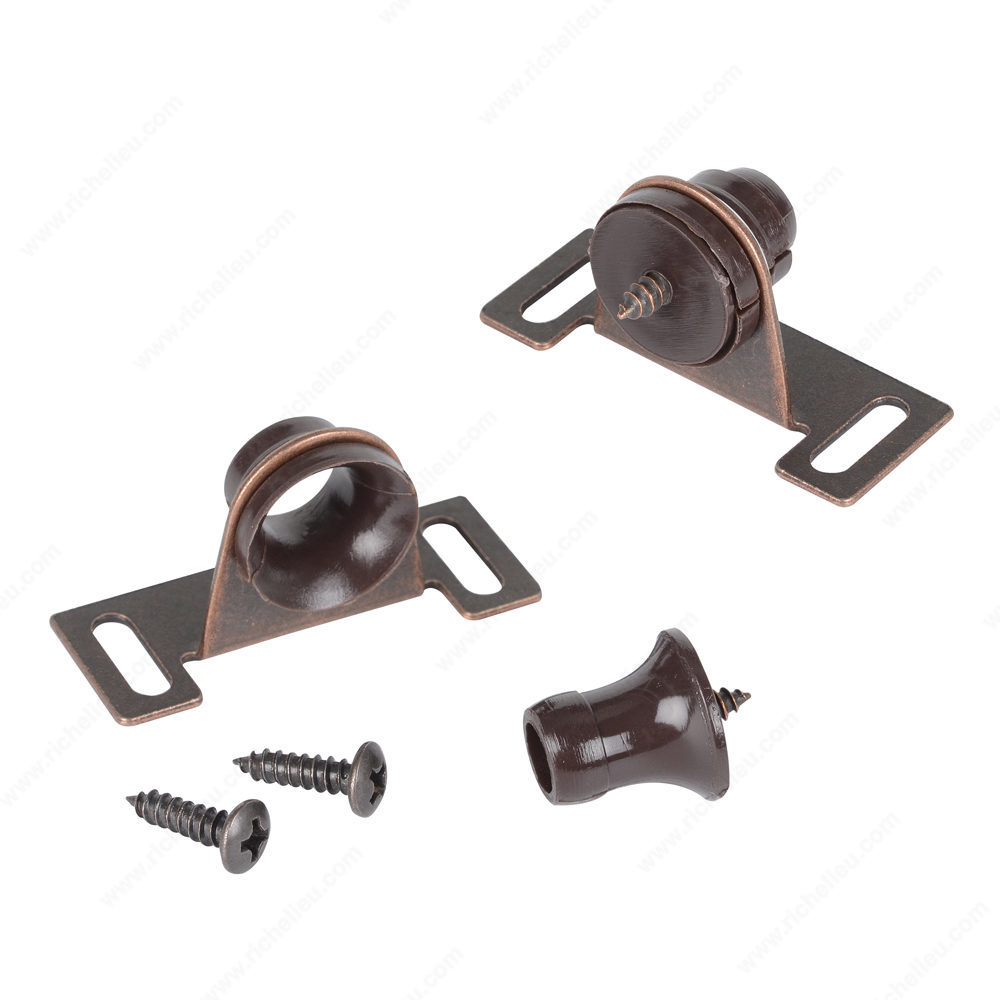 Richelieu 61506400 Bulldog Catch is an essential hardware solution designed to enhance the functionality of doors in various applications. This self-aligning mechanical "bulldog" catch provides robust support, ensuring doors close securely and remain in place. With a holding power of 2.65 lb, it is engineered to withstand everyday use while maintaining the integrity of your installations. The Bulldog Catch features oblong mounting holes, allowing for easy adjustment during installation. This thoughtful design element ensures a perfect fit for different door alignments, making it a versatile choice for both professionals and knowledgeable homeowners. Its brown color not only complements a range of décor styles but also adds a touch of sophistication to your hardware choices. Whether you're updating a kitchen, installing new cabinetry, or enhancing storage solutions, the Richelieu Bulldog Catch is a reliable component that combines strength and aesthetic appeal. It ships conveniently via UPS, facilitating an efficient procurement process. Elevate your projects with this dependable catch that embodies quality craftsmanship and functional elegance. Choose Richelieu for hardware that meets the demands of modern living while providing an effortless user experience.