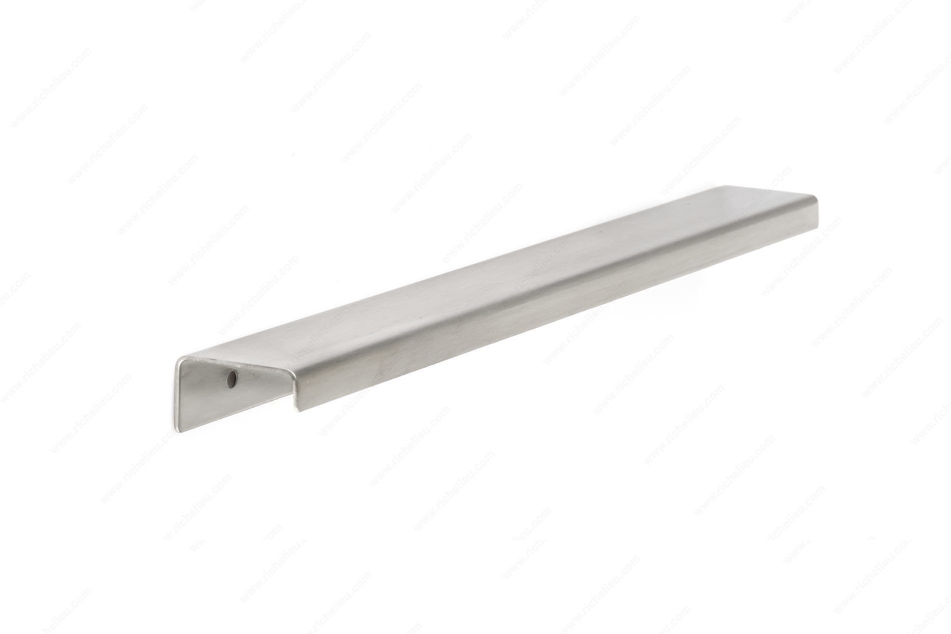 Richelieu BP57613170A Modern Aluminum Edge Pull - 576 offers a sleek solution for contemporary cabinetry. Designed with an ultra-slim profile, this edge pull ensures effortless installation while seamlessly integrating with a variety of decors. Its modern aesthetic is complemented by a sophisticated color palette of gray and chrome, providing an elegant touch to any space. The edge pull measures a generous 13 inches in overall length, with a center-to-center distance of 11 inches, making it ideal for larger cabinet doors or drawers. Crafted from durable aluminum, it boasts a stainless steel finish (Finish Number: 170) that not only enhances its visual appeal but also ensures longevity and resistance to wear. The pull’s dimensions include a projection of 1 15/32 inches and a width of 7/8 inch, allowing for comfortable grip and ease of use. Installation is straightforward, with wood screws included for added convenience. Whether you’re updating your kitchen, bathroom, or any living space, the Richelieu BP57613170A Modern Aluminum Edge Pull is the perfect choice for those seeking a blend of functionality and style. Elevate your cabinetry with this chic accessory that embodies modern design and practicality.