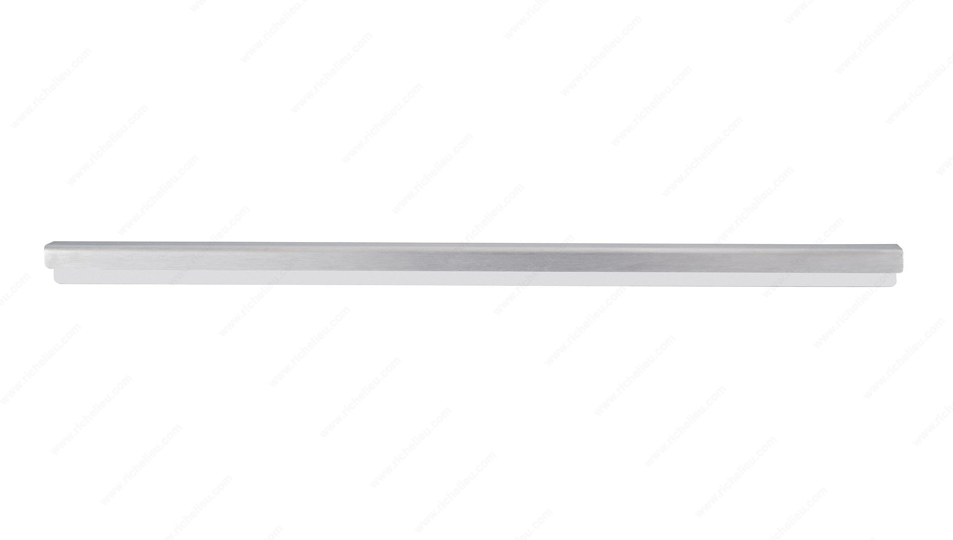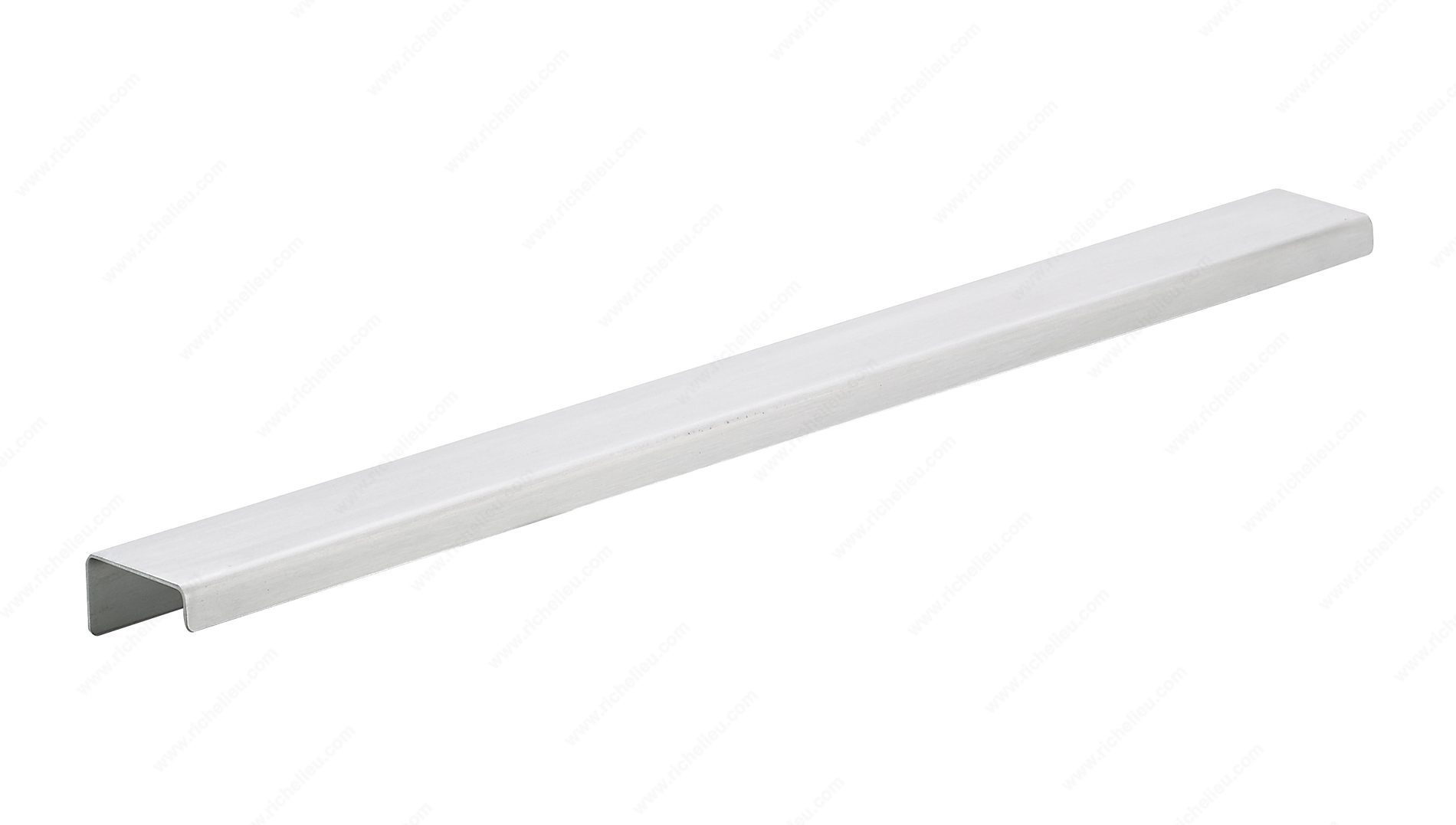 Richelieu BP57616170A Modern Aluminum Edge Pull - 576 offers a sleek and sophisticated solution for contemporary cabinetry. With its ultra-slim design, this edge pull enhances functionality without compromising on style. Measuring 16 inches in overall length, it features a center-to-center distance of 14 inches, making it suitable for various applications while ensuring easy installation with the included wood screws. The combination of gray and chrome tones, along with a stainless steel finish, gives this pull a modern aesthetic that seamlessly integrates into a wide array of décors. Crafted from durable aluminum, it balances strength and lightweight design, making it ideal for high-traffic areas. The pull has a projection of 1 15/32 inches, providing a comfortable grip while maintaining a minimalist profile. Measuring 7/8 inch in width and only 1/16 inch thick, the Richelieu BP57616170A stands out for its elegant simplicity and versatility. Perfect for kitchen cabinets, closets, or any furniture piece needing a touch of modern flair, this edge pull is a reliable choice for builders and discerning homeowners alike. Enhance your space with this stylish and functional hardware option that delivers both form and function.