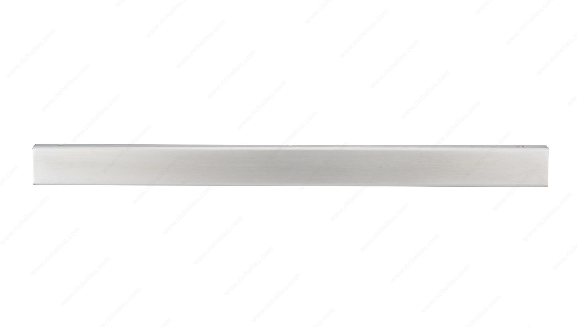 Richelieu BP57619170A Modern Aluminum Edge Pull - 576 offers an ultra-slim design that seamlessly integrates into various decor styles while providing a functional accent to your cabinetry. Designed for easy installation, this edge pull features a discreet shape that enhances the elegance of modern environments. Measuring 19 inches in length with a center-to-center spacing of 17 inches, it is crafted from durable aluminum, ensuring longevity and resilience in daily use. The stainless steel finish, available in a sophisticated gray and chrome combination, adds a touch of contemporary flair. With an overall projection of 1 15/32 inches and a width of 7/8 inch, this edge pull maintains a sleek profile that won’t overpower your cabinetry. The Richelieu BP57619170A is designed for convenience, as it comes with wood screws included for straightforward installation. At a thickness of just 1/16 inch, it embodies a minimalist aesthetic that appeals to design-conscious homeowners and professionals alike. Ideal for kitchen or bathroom applications, this edge pull is a perfect choice for those looking to elevate their space with high-quality, modern hardware. Choose Richelieu for your next project and experience the blend of style and functionality.