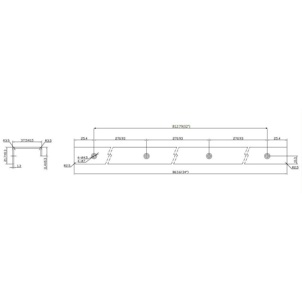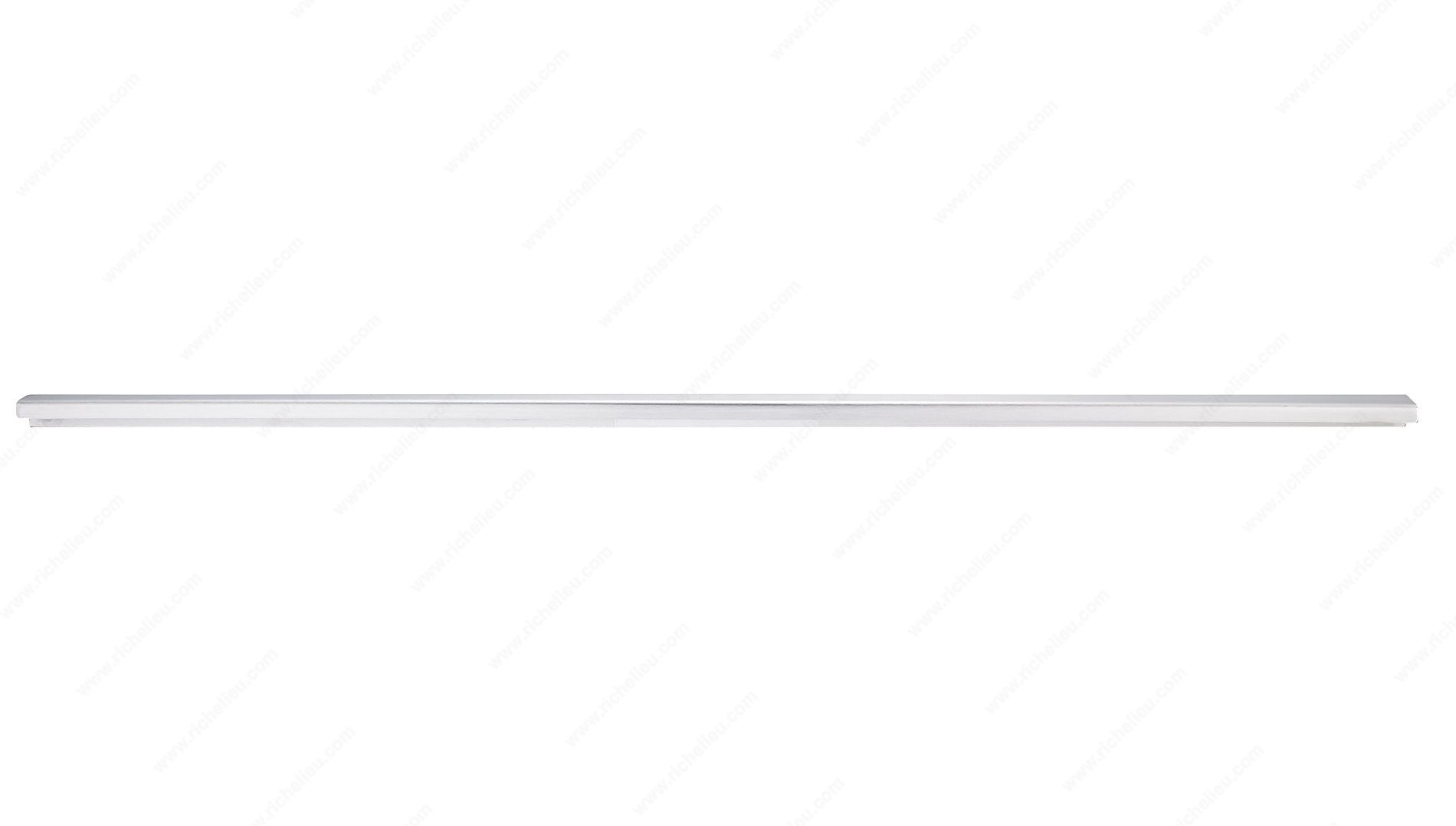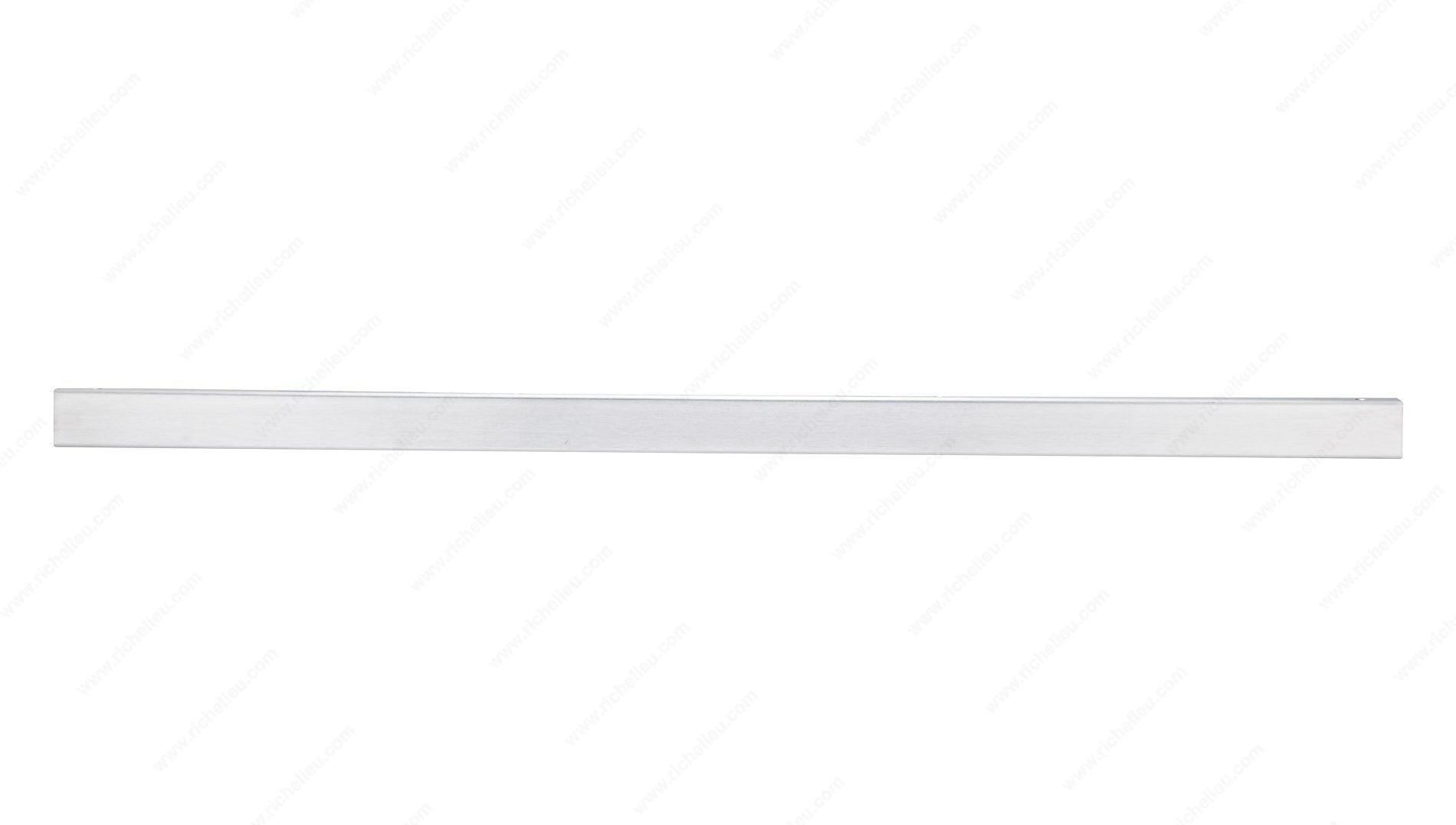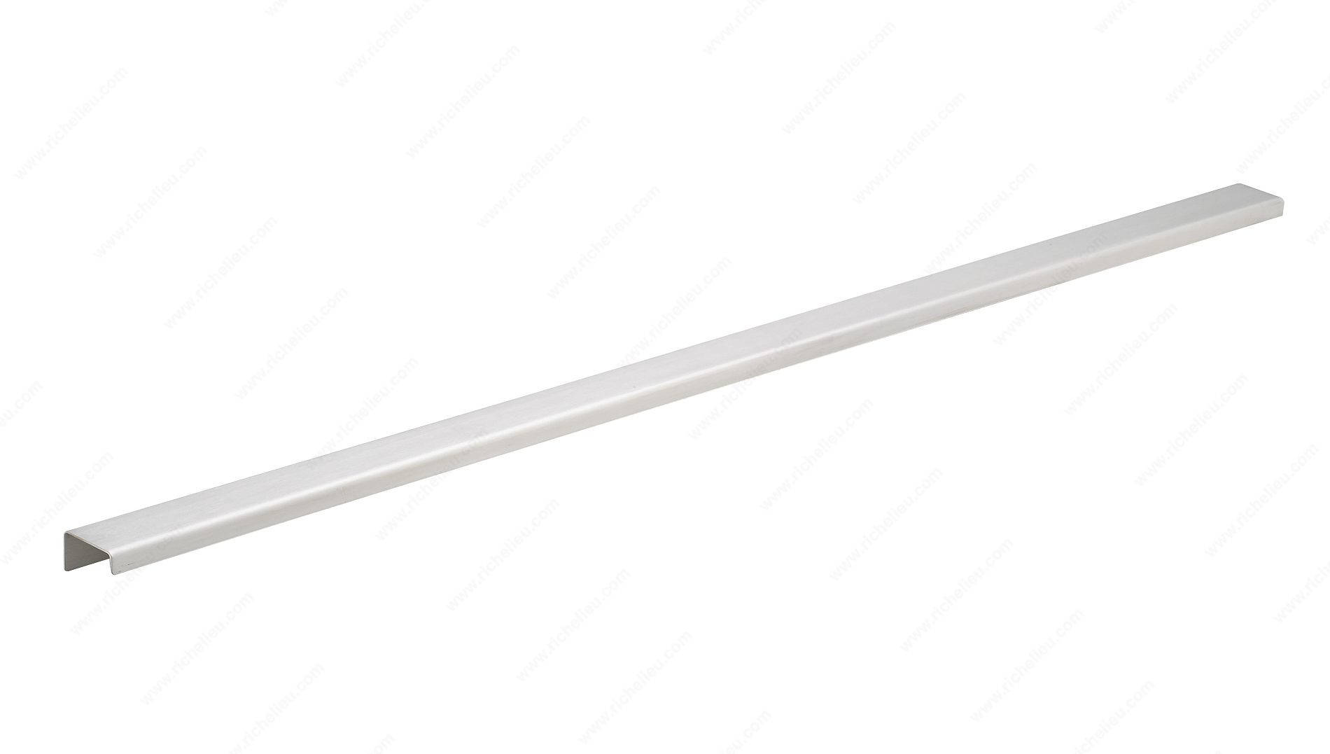 Richelieu BP57634170A Modern Aluminum Edge Pull - 576 combines sleek design with exceptional functionality. This ultra-slim edge pull is crafted from durable aluminum, ensuring longevity while maintaining a contemporary aesthetic. With an overall length of 34 inches and a width of 7/8 inch, it provides a substantial grip without overwhelming your cabinetry or furniture. The modern style is enhanced by its elegant finish in stainless steel, available in a sophisticated gray and chrome color scheme that complements a variety of decors. The discreet shape of this edge pull makes it an ideal choice for both residential and commercial applications, seamlessly integrating with modern design trends. Installation is straightforward, as the product includes wood screws for easy attachment. With a center-to-center measurement of 32 inches, it offers flexibility in placement, making it suitable for various cabinetry styles. The pull projects 1 15/32 inches from the surface, providing ample space for a comfortable grip. Whether you're upgrading your kitchen, bathroom, or office, the Richelieu BP57634170A adds an element of elegance and practicality. Experience the perfect blend of style and function with this extra long edge pull, designed to elevate any space.