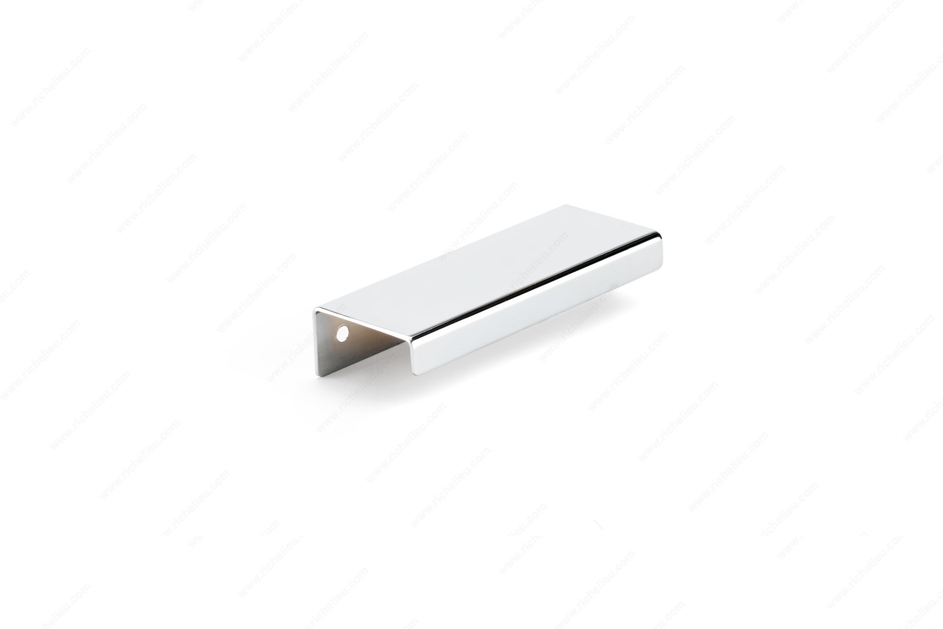 Richelieu BP57680140A Modern Aluminum Edge Pull - 576 offers an ultra-slim design that seamlessly integrates into a variety of decors while providing outstanding functionality. Crafted from durable aluminum, this edge pull is both lightweight and sturdy, ensuring a long-lasting addition to your cabinetry. Its overall dimensions measure 3 15/16 inches in length, 7/8 inches in width, and a projection of 1 15/32 inches, making it an ideal choice for contemporary spaces. The sleek chrome finish enhances the modern aesthetic, complemented by a striking gray color that adds a touch of sophistication. With a center-to-center distance of 3 5/32 inches, this edge pull is designed for easy installation using the included wood screws, making it a practical choice for both builders and DIY enthusiasts. Whether you're renovating a kitchen or upgrading furniture, the Richelieu BP57680140A is a perfect fit, providing a discreet yet stylish way to open drawers and cabinets. Its minimalist design and versatile color scheme allow it to blend effortlessly with various styles, ensuring your project achieves a polished and cohesive look. Choose this edge pull to elevate your space with a modern touch that does not compromise on quality or ease of use.