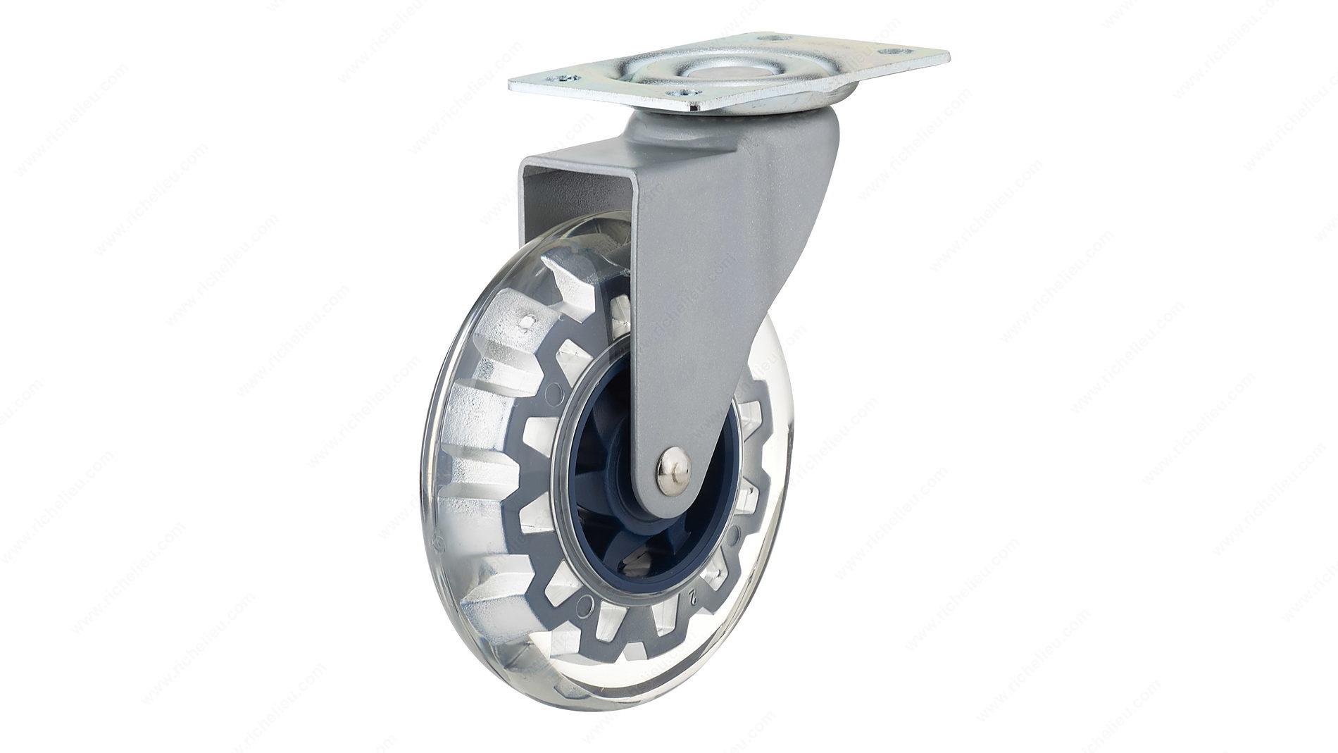 Richelieu 210003010607 Contemporary Clear Blue Furniture Caster combines modern design with functionality, making it an excellent choice for both residential and commercial applications. Inspired by rollerblade wheels, this caster features a striking royal blue and clear finish that adds a contemporary touch to your furniture while ensuring smooth mobility. Designed for versatility, it is available in options with or without a brake, catering to various needs. The caster has a robust load capacity of up to 132 lbs per unit, making it ideal for heavier items. The mounting plate, included with your purchase, measures 2 1/16 in x 3 5/32 in (52 mm x 80 mm), ensuring a secure fit on a variety of surfaces, including carpet, tile, linoleum, and hardwood. With a total height of 4 29/32 in and a tread width of 15/16 in, the caster features a wheel diameter of 3 15/16 in that allows for easy navigation across different flooring types. The durable rubber material ensures longevity and smooth operation, making the Richelieu Contemporary Clear Blue Furniture Caster a reliable choice for enhancing mobility in your space.
