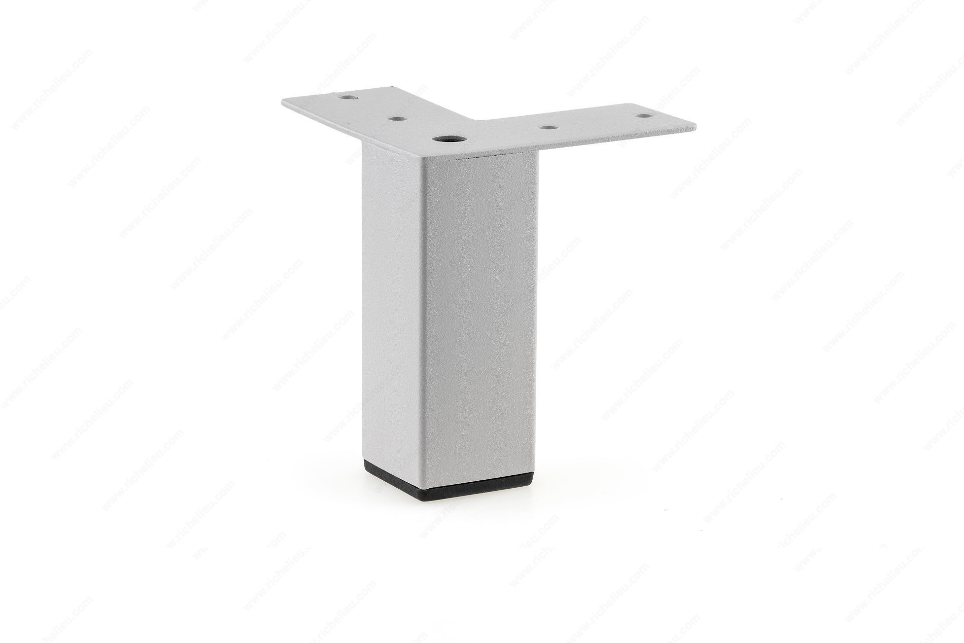 Richelieu 176138106 Contemporary Furniture Leg - 1761 combines style and functionality, making it an ideal choice for modern cabinetry, closets, and garage units. Crafted from durable iron, this square metal leg is designed to provide reliable support with a load capacity of up to 110 pounds per leg, ensuring stability for various applications. Measuring 3 15/16 inches in height and featuring a diameter of 1 1/2 inches, the leg is both robust and sleek, seamlessly integrating into contemporary designs. Its dimensions also include a length and width of 3 17/32 inches, complemented by a plate dimension of 90 mm x 90 mm for easy installation. An integrated pad at the base effectively protects floors from scratches, making it suitable for both residential and commercial settings. Available in three stylish finishes, including a sophisticated silver gray, the Richelieu 176138106 leg enhances the aesthetic appeal of furniture while maintaining its structural integrity. This product ships easily via UPS, ensuring prompt delivery for your project needs. Elevate your furniture's design and function with the contemporary elegance of Richelieu’s furniture leg, a perfect blend of practicality and modern style.
