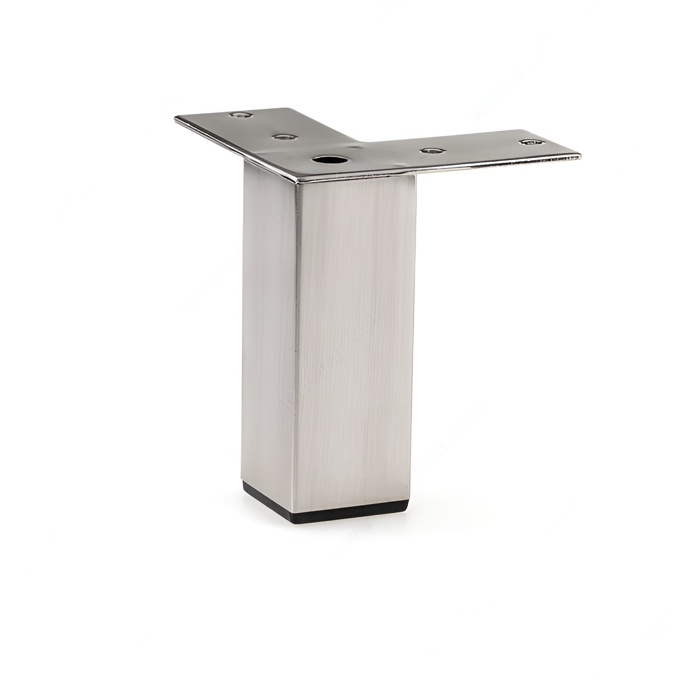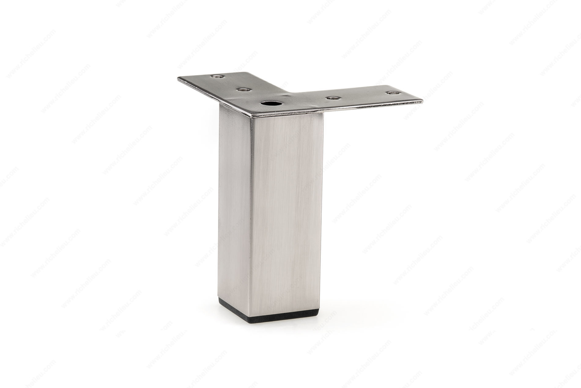 Richelieu 176138195 Contemporary Furniture Leg - 1761 is a sophisticated addition to your furniture design, offering both style and functionality. This square metal leg is expertly crafted from durable iron, ensuring a robust support system for your cabinets, closets, and garage units. With a height of 3 15/16 inches and a leg diameter of 1 1/2 inches, it provides a solid foundation while maintaining a contemporary aesthetic. One of the standout features of this leg is its integrated pad, designed to protect your floors from scratches and damage, making it ideal for various environments. The leg boasts a substantial load capacity of up to 110 pounds, providing peace of mind when supporting heavier items. Available in three stunning finishes, including brushed nickel, it can seamlessly integrate into any décor style, enhancing the overall look of your space. The plate dimension of 90 mm x 90 mm ensures easy installation, allowing you to quickly elevate your furniture projects. Whether you are a building professional or a knowledgeable homeowner, the Richelieu Contemporary Furniture Leg is an essential component that combines durability with modern elegance, making it a smart choice for your next project.