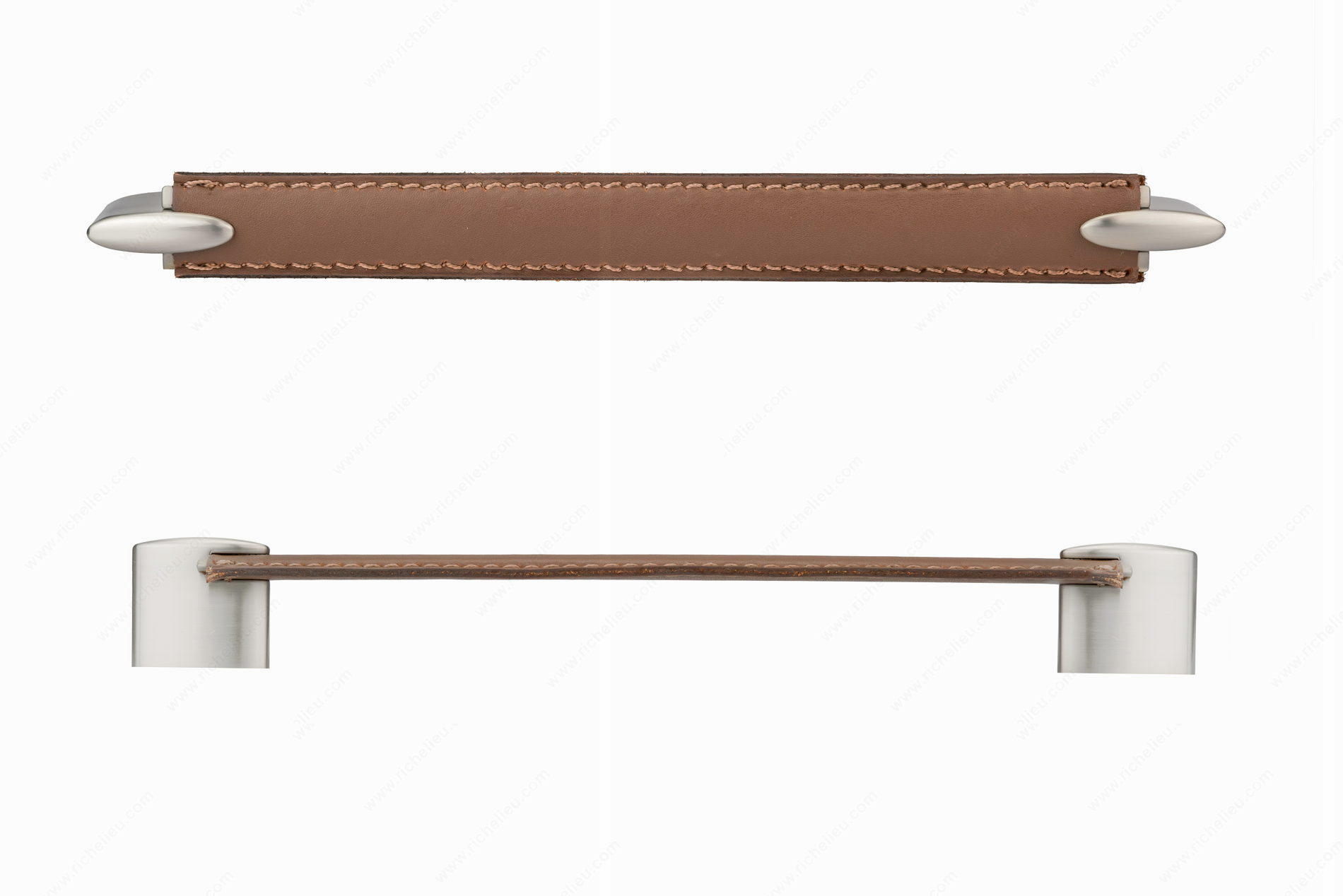 Richelieu 74520422419545 Modern Leather and Metal Pull offers a striking blend of elegance and functionality, perfect for contemporary spaces. The distinctive metal grip is elegantly wrapped in a luxurious leather sleeve, creating a sophisticated combination of textures that enhances any cabinetry or furniture piece. With an overall length of 10 1/2 inches and a center-to-center measurement of 8 13/16 inches, this pull is designed for easy installation and adaptability across various applications. Available in two refined color combinations-Gray and Chrome or Brown and Bronze-this pull can seamlessly integrate into different design aesthetics. Crafted from high-quality leather and Zamak, the pull not only provides durability but also a tactile experience that elevates everyday use. The brushed nickel finish adds a modern touch, ensuring a sleek appearance that complements the leather. At a projection of 1 3/8 inches and a width of 1 1/32 inches, this pull is both functional and stylish. Installation is straightforward with included M4 screws, making it an excellent choice for building professionals and discerning homeowners alike. The Richelieu 74520422419545 is a thoughtful addition to the complete 745 collection, designed to enhance spaces with both beauty and practicality.