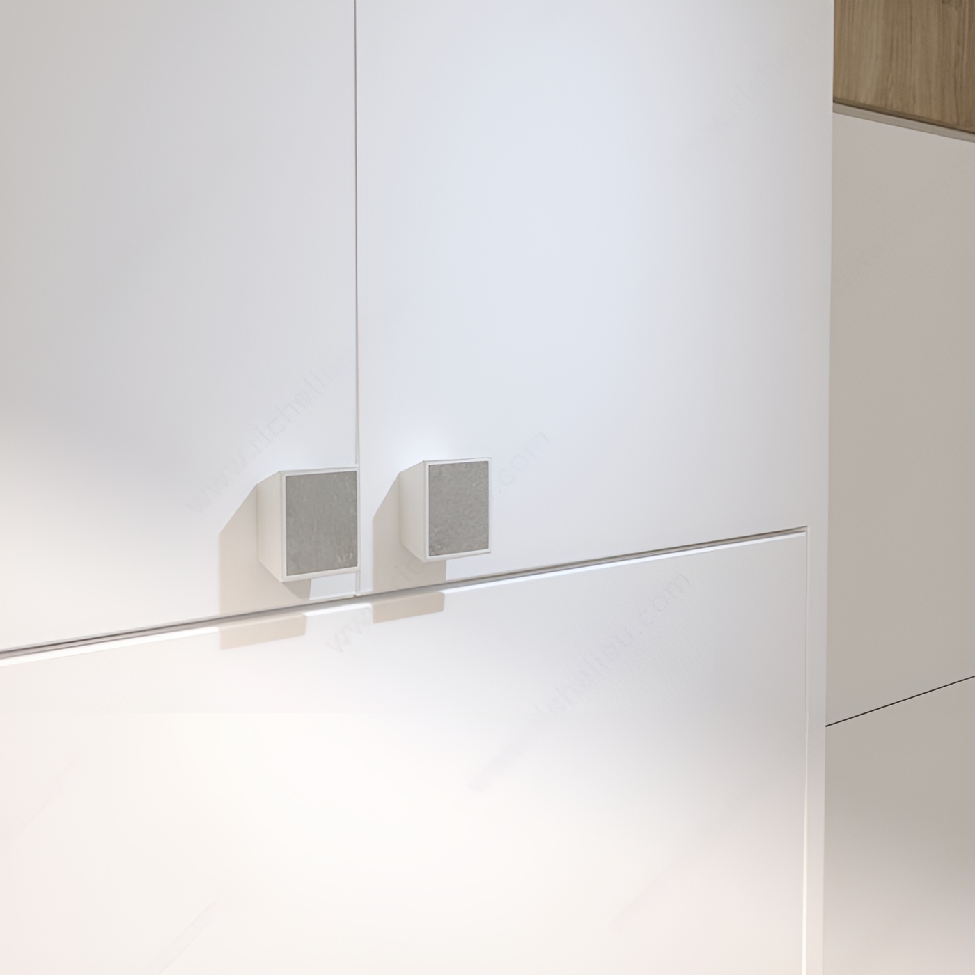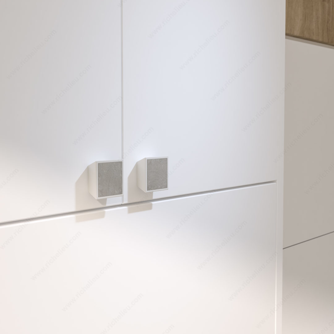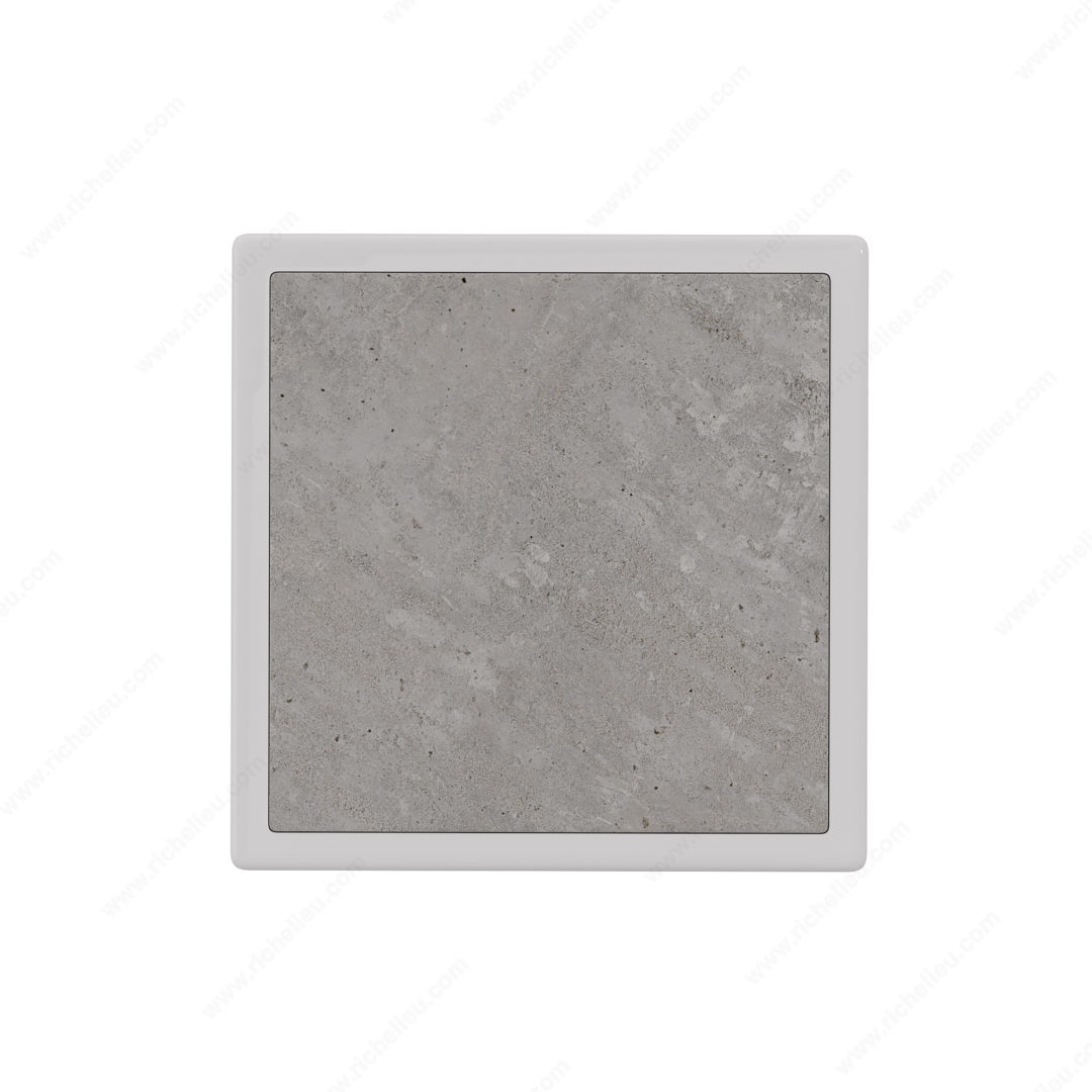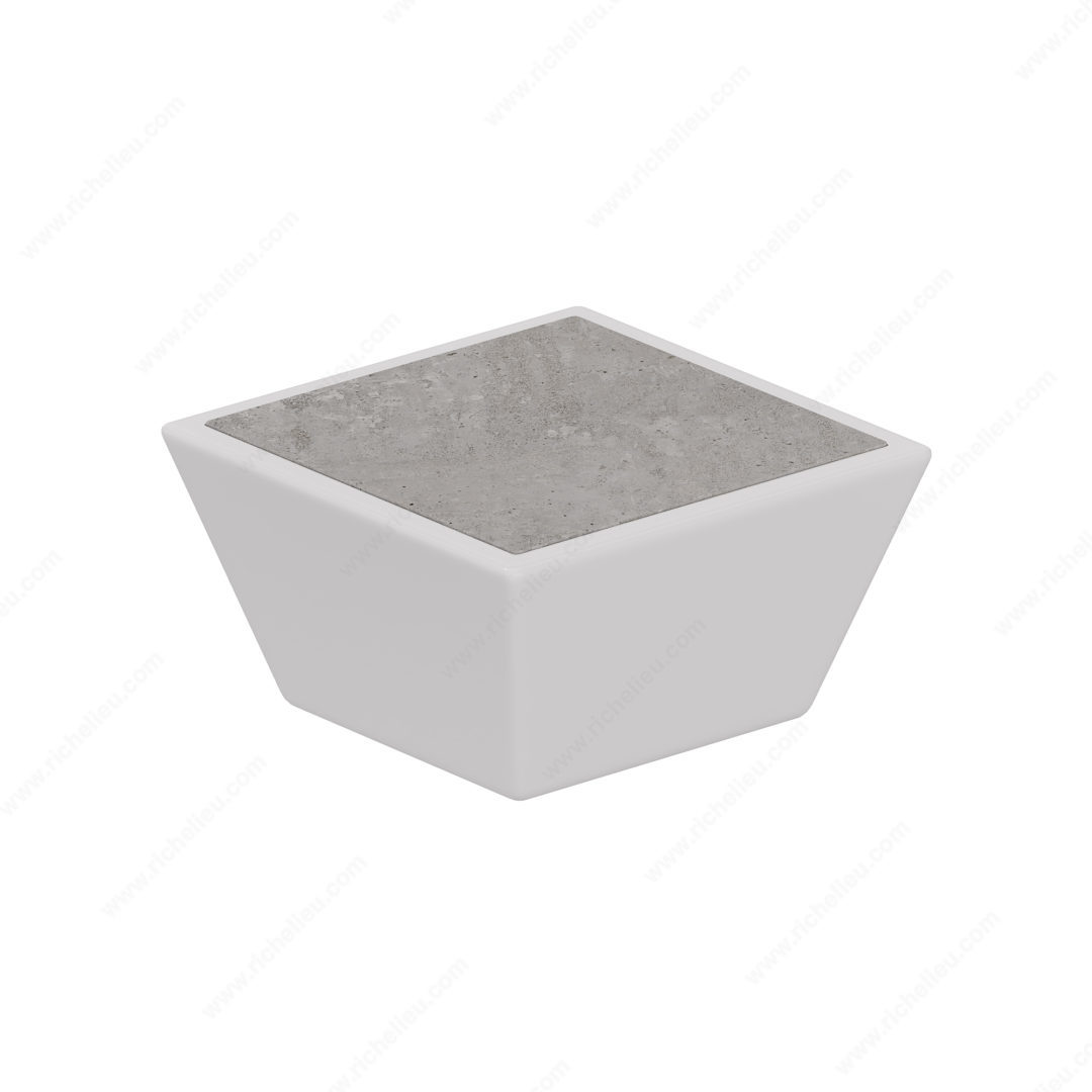 Richelieu 585816102300 Modern Metal and Concrete Knob - 5858 seamlessly blends industrial aesthetics with contemporary design. Crafted from a striking combination of metal and concrete, this square knob makes an eye-catching addition to any space, enhancing the overall look of your cabinetry or furniture. With an overall dimension of 1 3/8 inches in length and width, and a projection of 3/4 inch, this knob offers a comfortable grip while maintaining a sleek profile. The matte white and concrete finish provides a modern touch, available in gray and chrome options that suit various design preferences. The 5/8 inch center-to-center measurement ensures easy installation, with M4 screws included for your convenience. Part of Richelieu's New Collection, the 5858 model exemplifies a modern design that will appeal to both building professionals and discerning homeowners. This knob is not only functional but also a statement piece that can elevate the look of any room. Whether you are renovating a kitchen, bathroom, or living area, the Richelieu Modern Metal and Concrete Knob is a perfect choice for those seeking a unique blend of style and substance. Ship via UPS for quick and easy delivery to your project site.