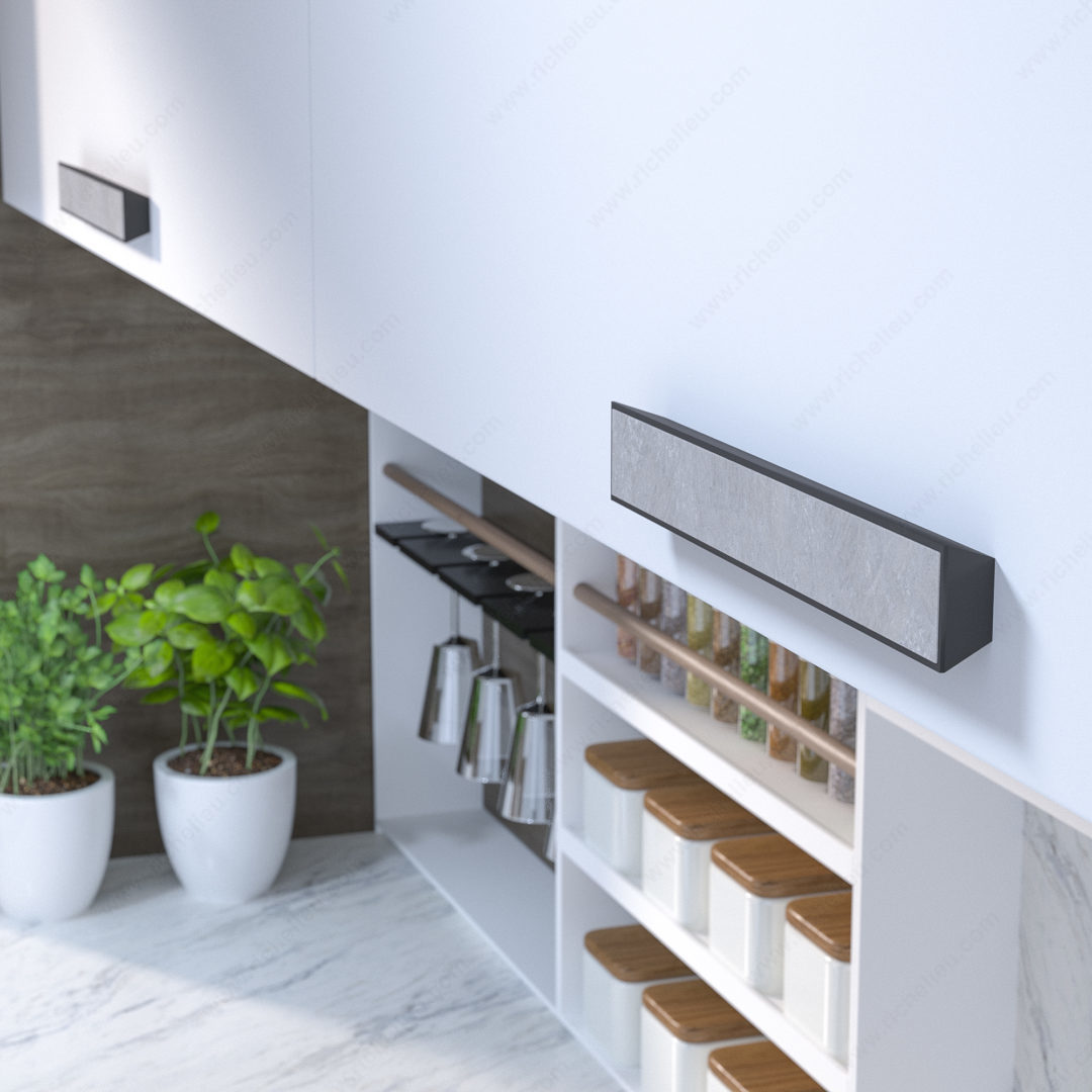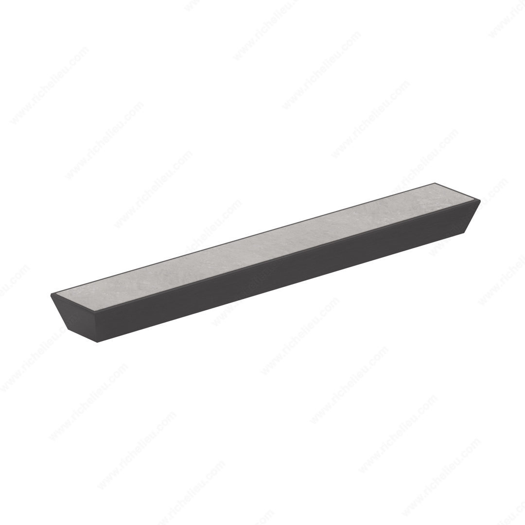 Richelieu 5858192102606 Modern Metal and Concrete Pull - 5858 seamlessly blends contemporary design with industrial elements. This striking rectangular pull features a unique combination of concrete and zamak, offering both durability and aesthetic appeal. With an overall length of 9 27/32 inches and a width of 1 3/8 inches, it provides a substantial grip while maintaining a sleek profile. Designed for a center-to-center measurement of 7 9/16 inches, this pull is a perfect fit for a variety of cabinetry and furniture pieces, enhancing modern interiors with its gray and chrome finish. The brushed anthracite surface adds an elegant touch, making it suitable for both residential and commercial applications. Installation is hassle-free with the included M4 screws, ensuring a secure fit. The 3/4 inch projection allows for easy handling while maintaining a streamlined appearance. Part of Richelieu's new collection, this pull not only embodies modernity but also stands as a statement piece in any room. Ideal for those seeking to elevate their design scheme, the Richelieu 5858192102606 Modern Metal and Concrete Pull is a stylish and functional choice that will enhance the look and feel of your space.
